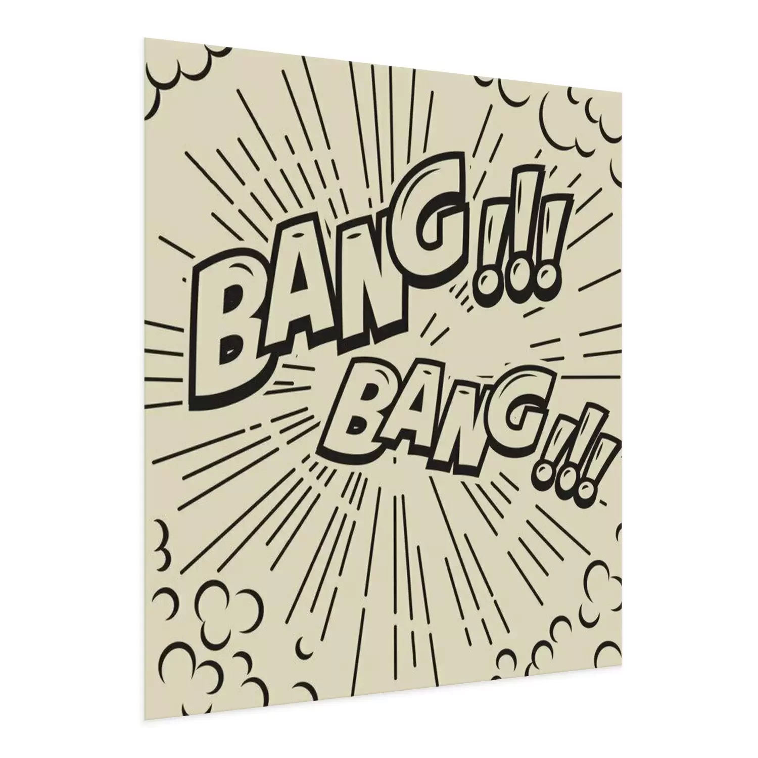 Poster Bang. Grappige stijluitdrukking op achtergrond met snelheidslijnen. Ontwerpelement voor poster, kaart, flyer, banner.