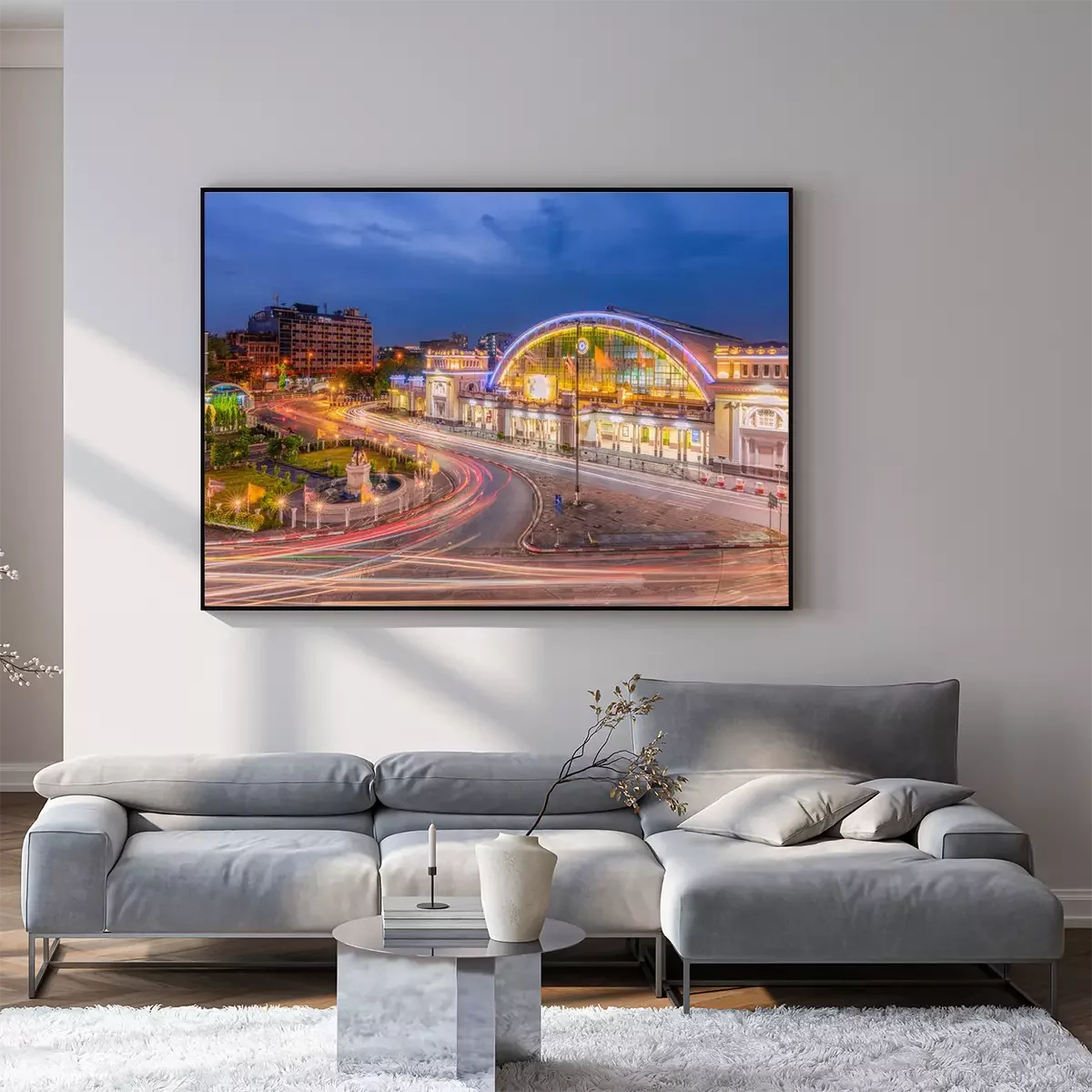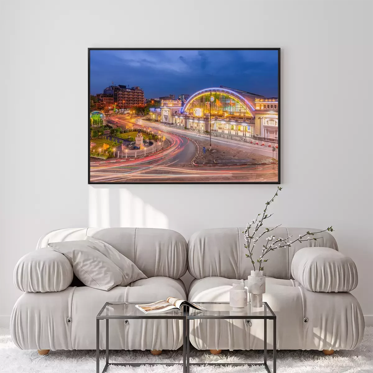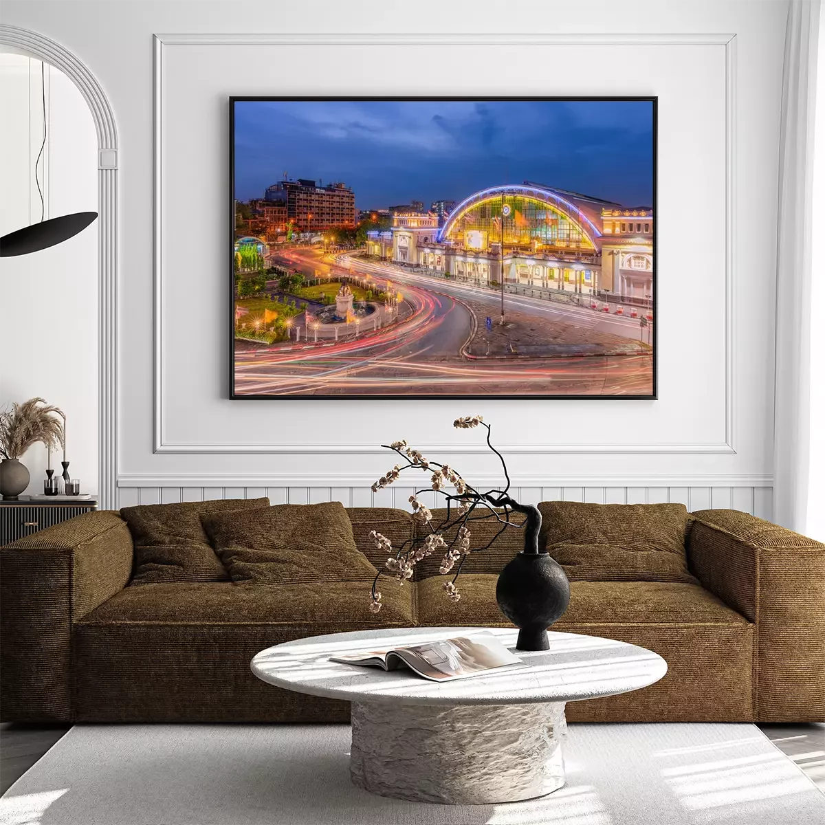 Poster: Bangkok Railway Station (Hua Lamphong Railway Station,MRT) and traffic at night in Bangkok, Thailand.