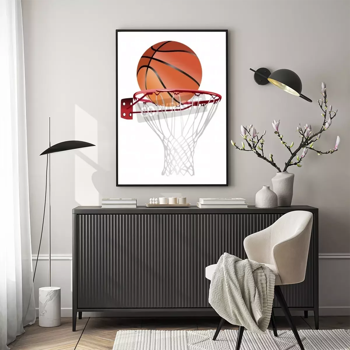 Poster basketbal hoepel en bal (basketbalring met basketbal, basketbal en hoepel)