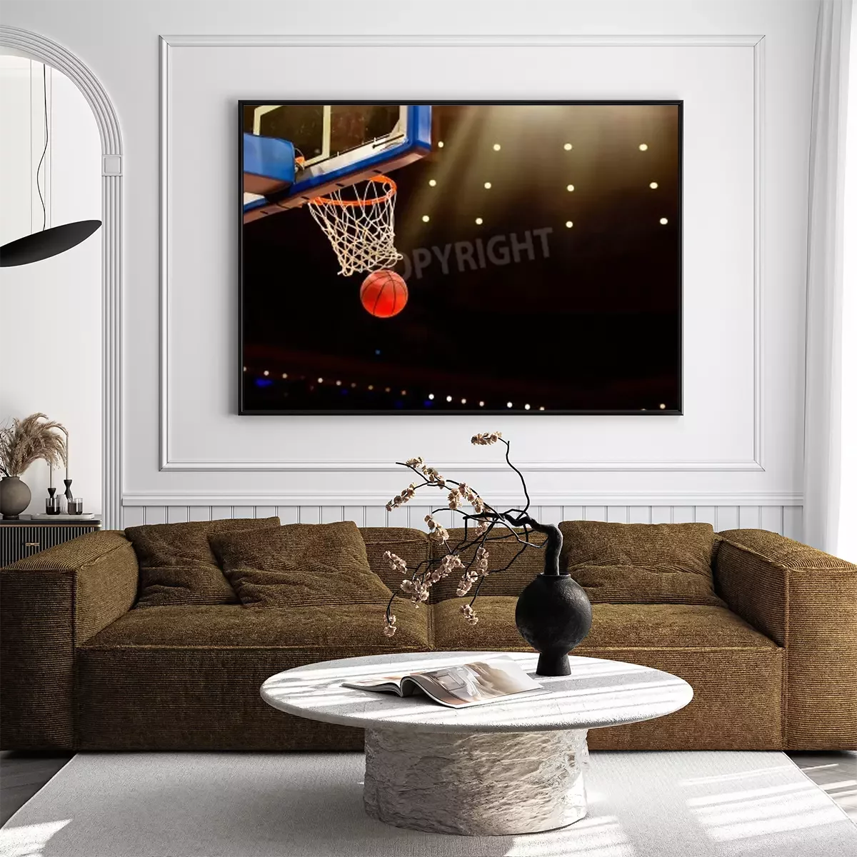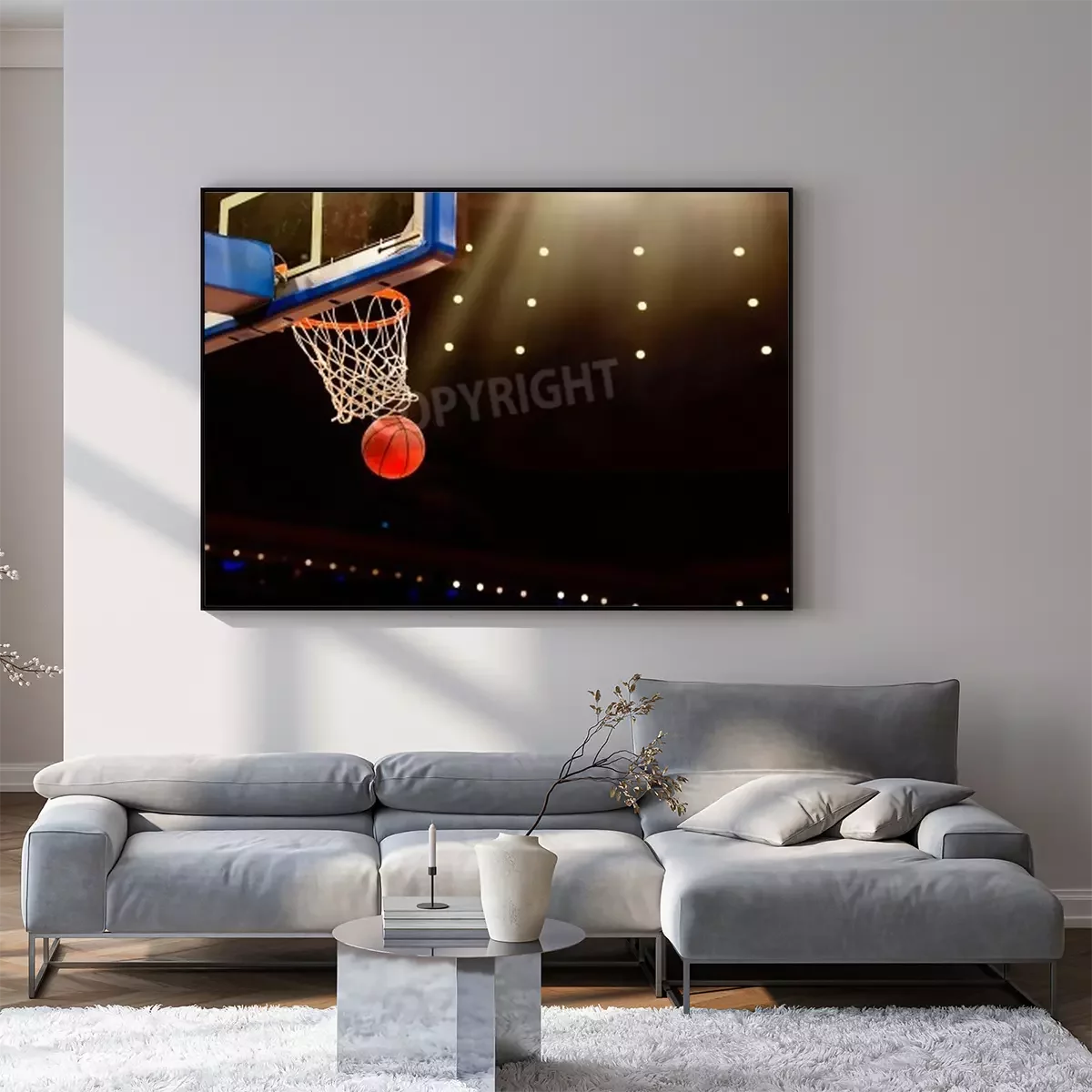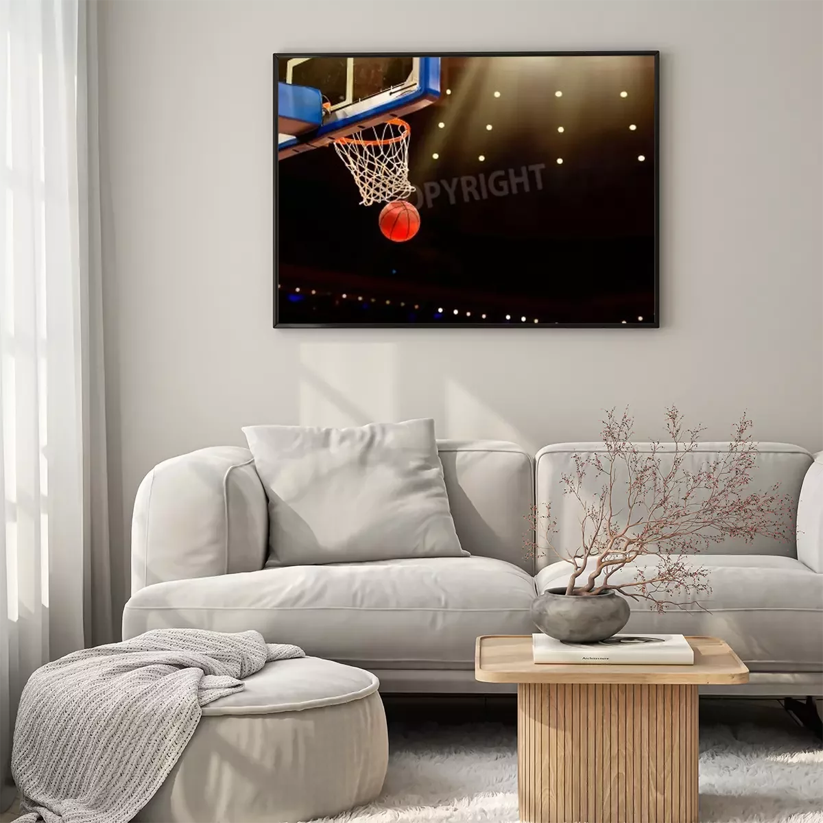 Poster: Basketbal mand met al gaan door net