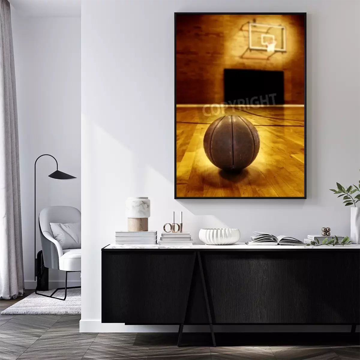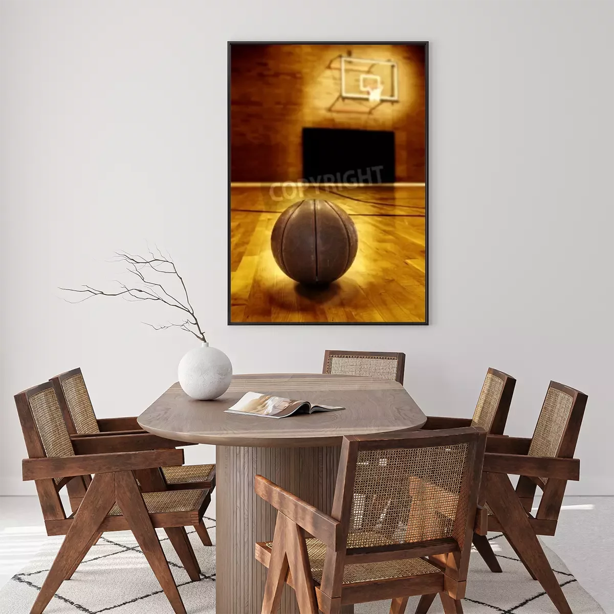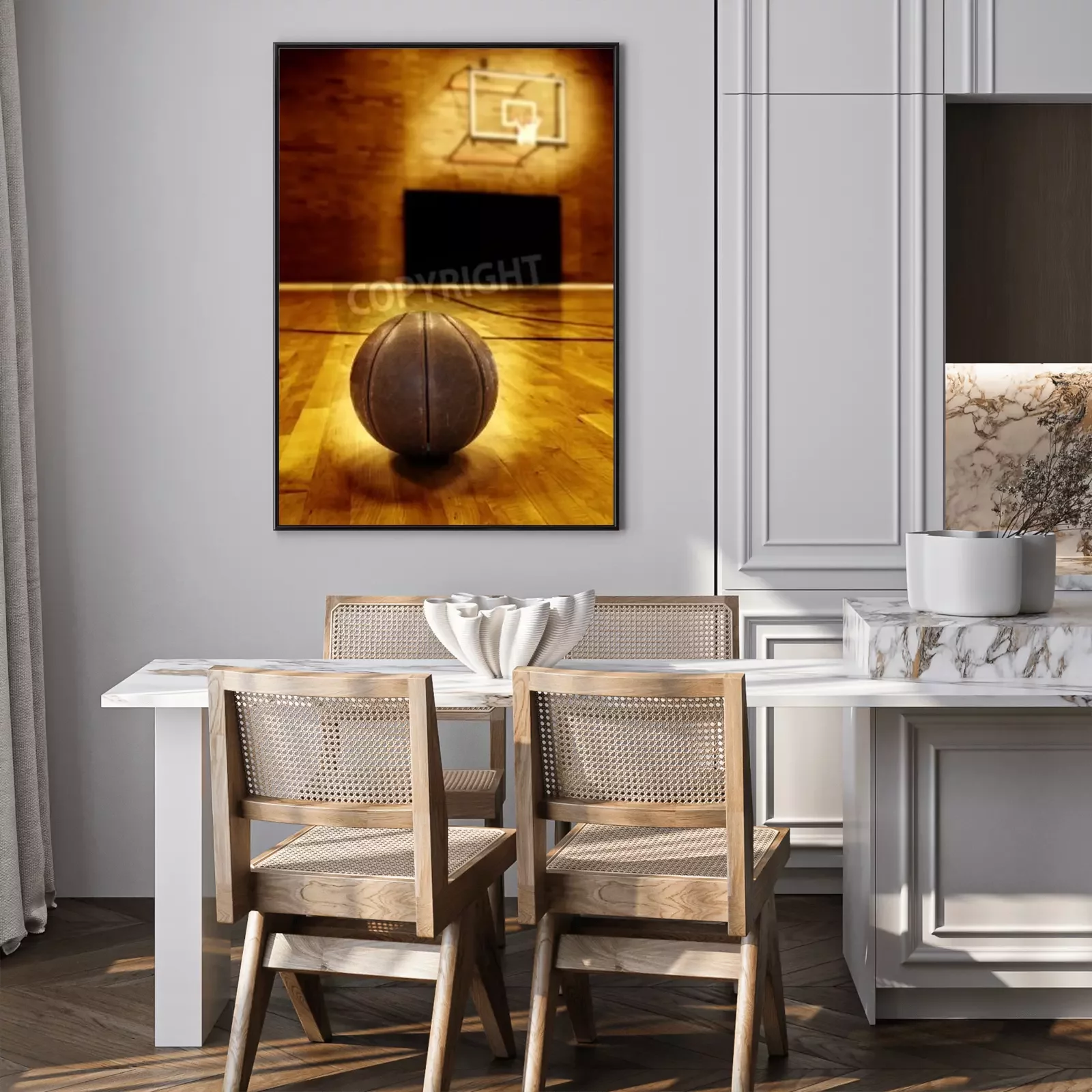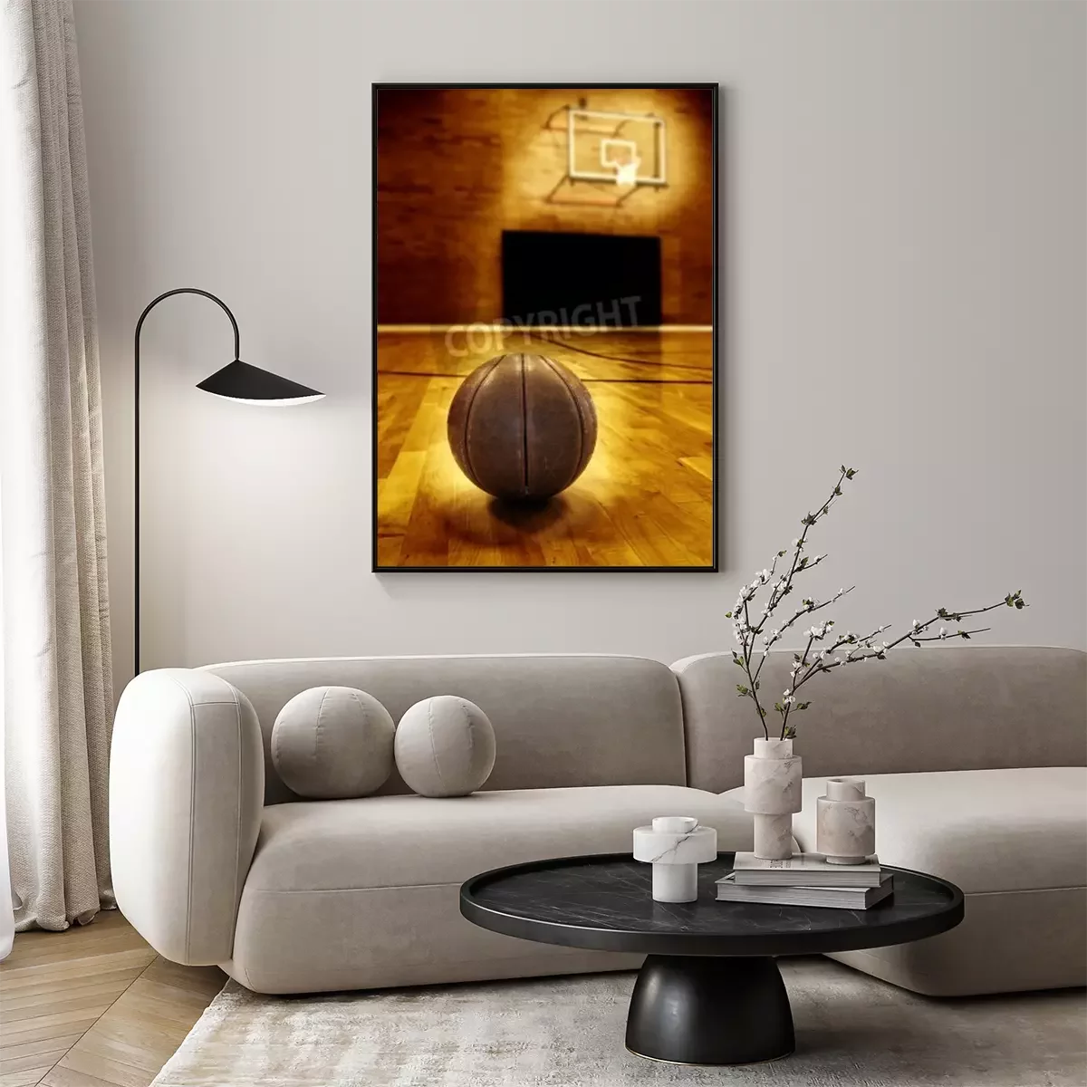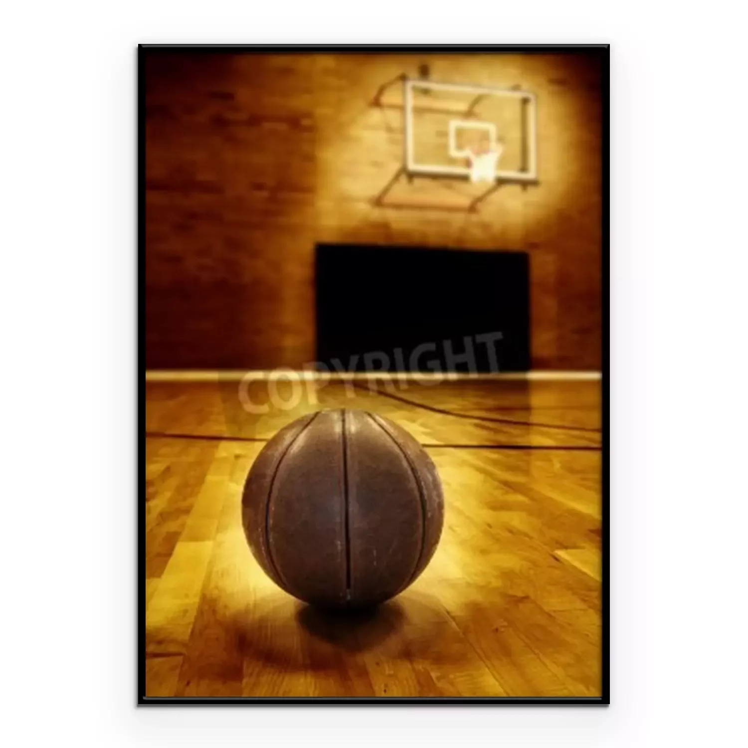 Poster: Basketbal op de houten vloer van de oude basketbalveld