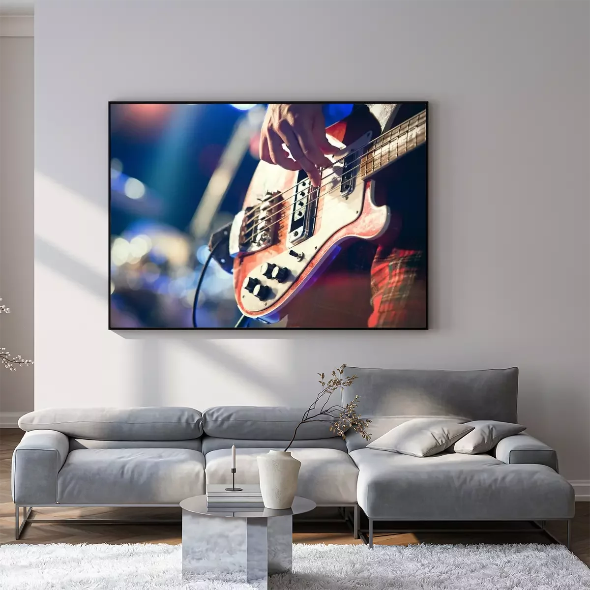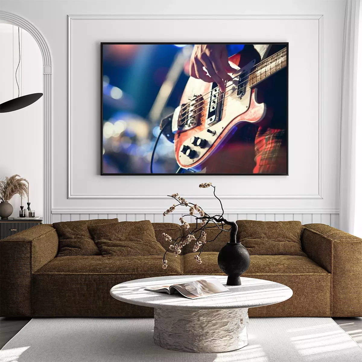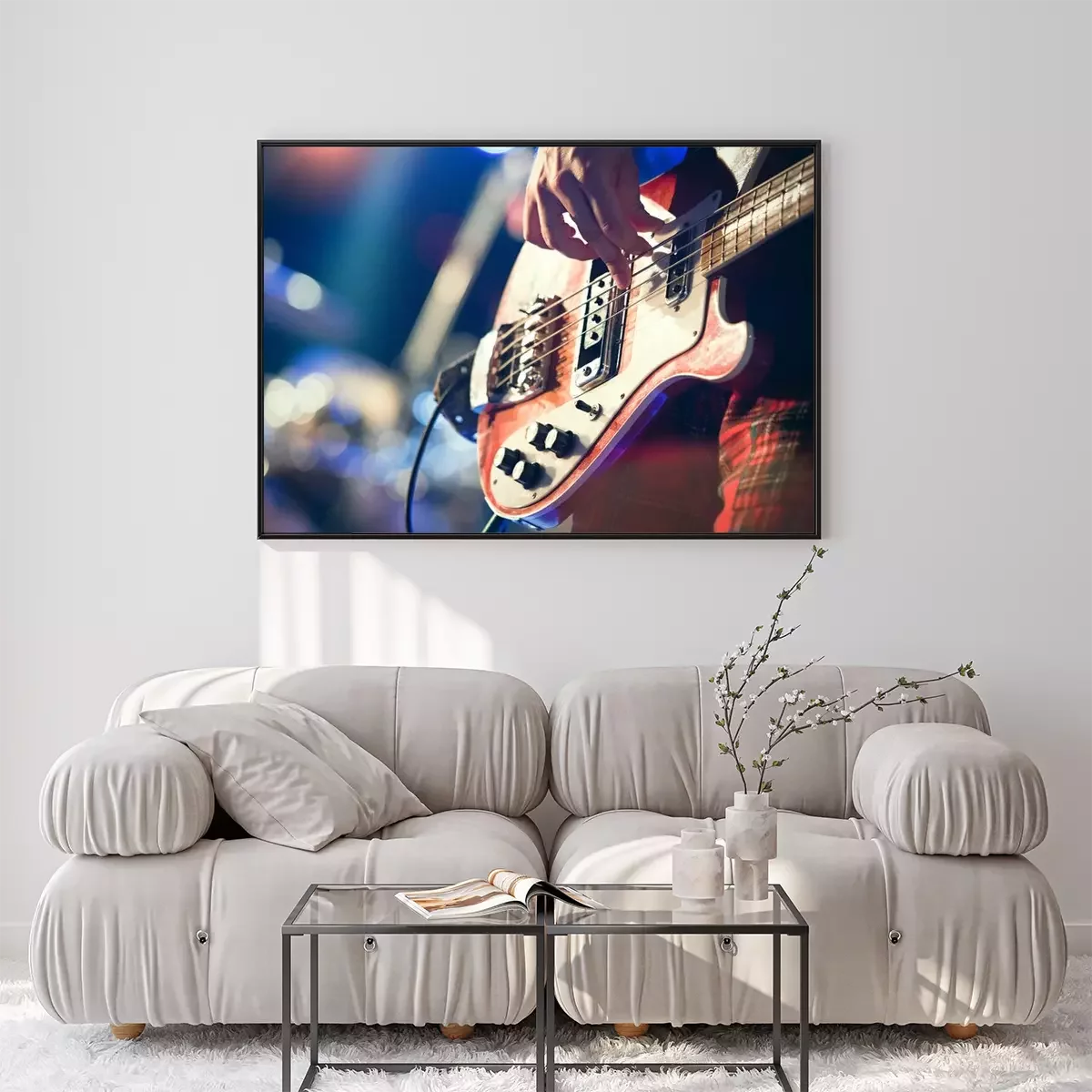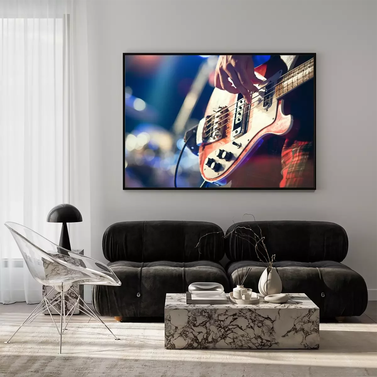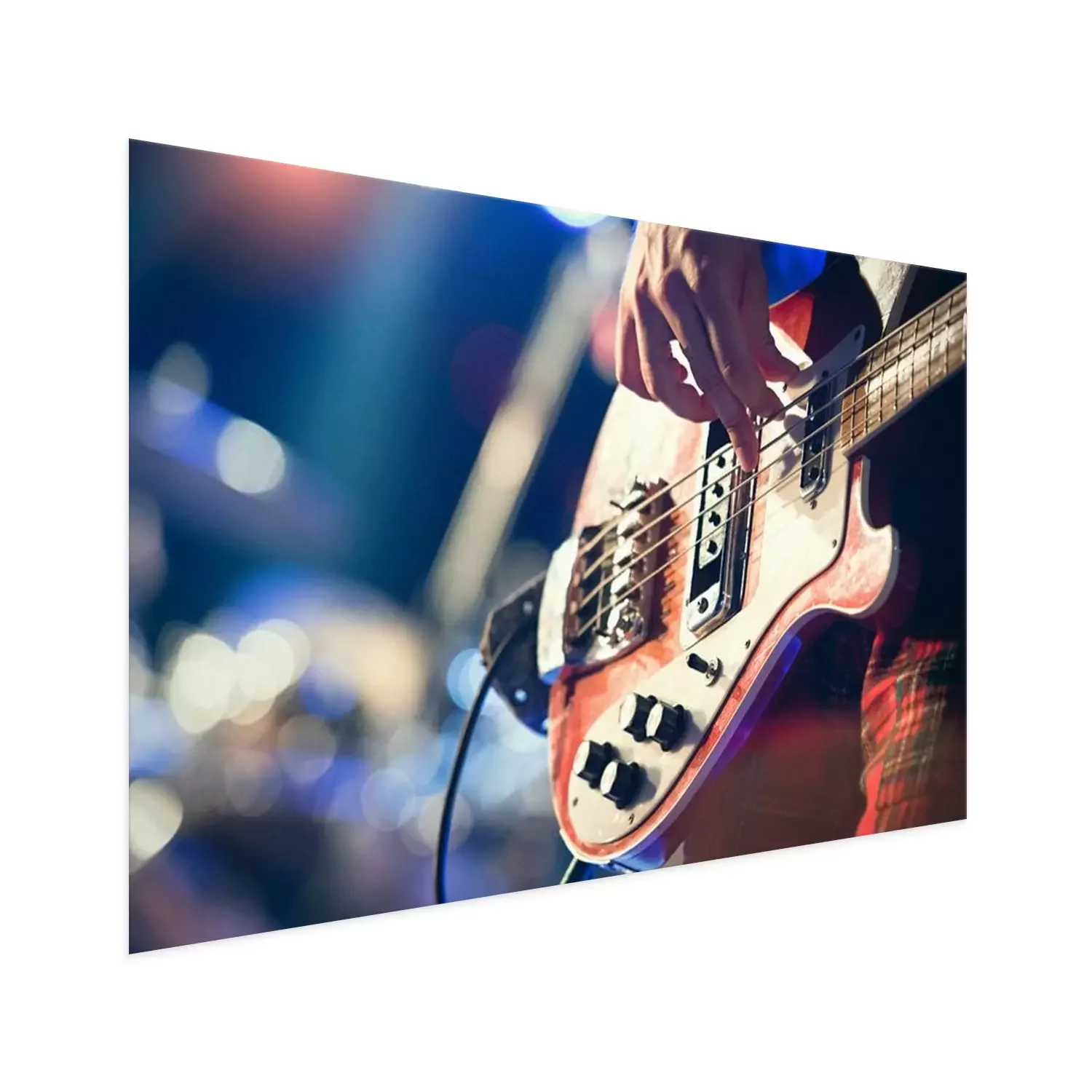 Gitarist en bassist popmuzikanten tijdens een groepsprestatie.