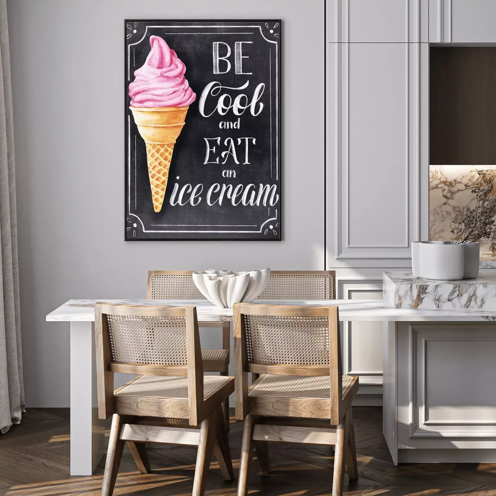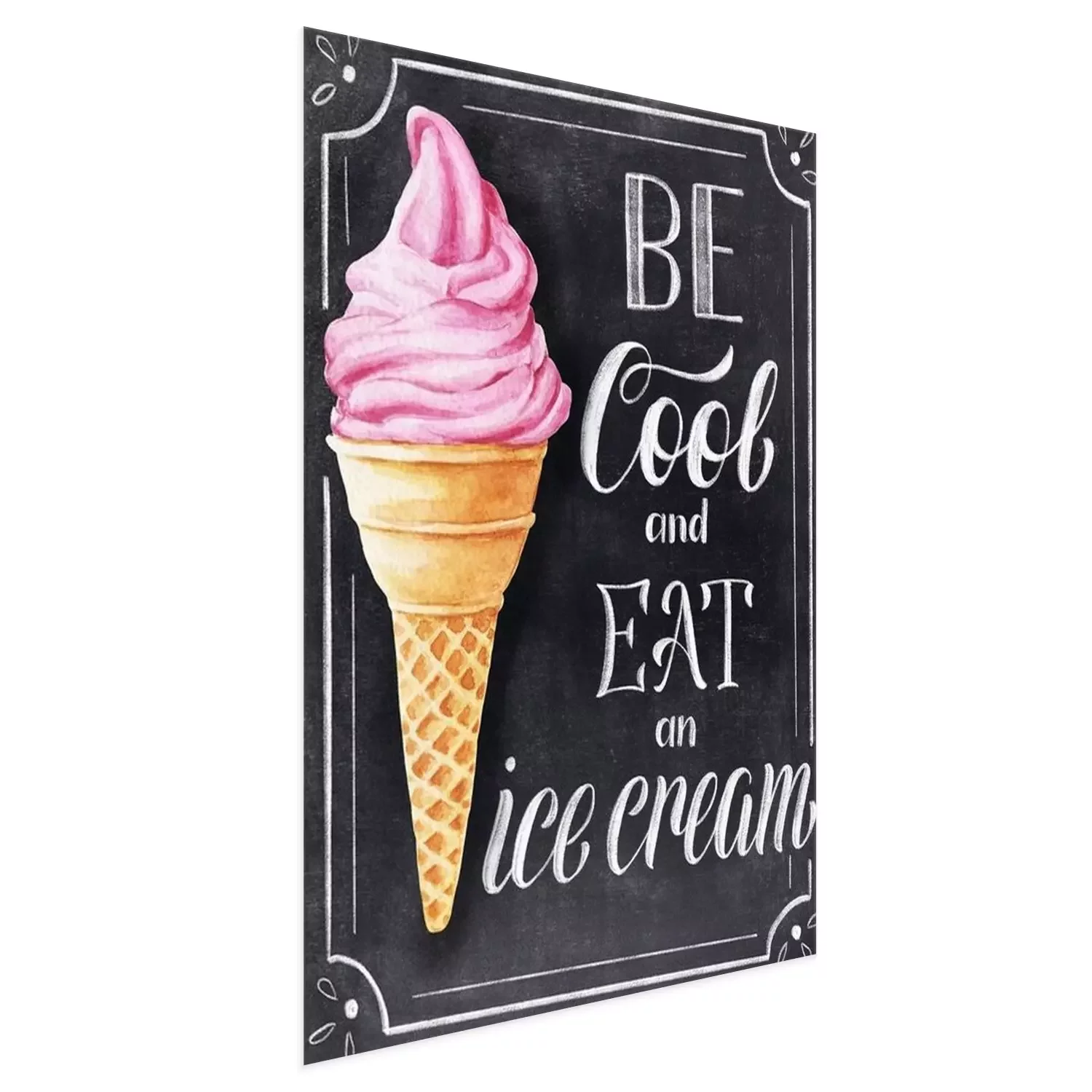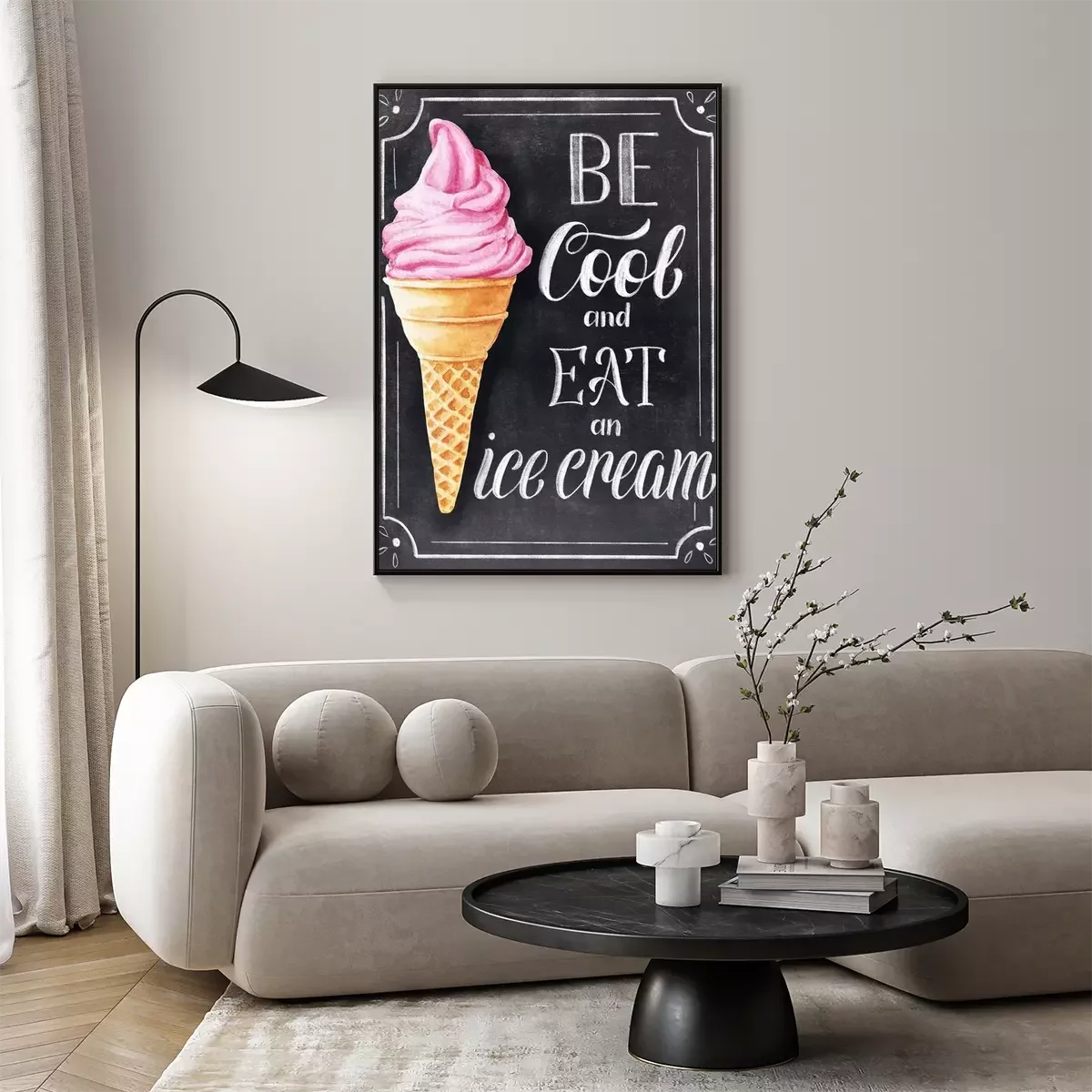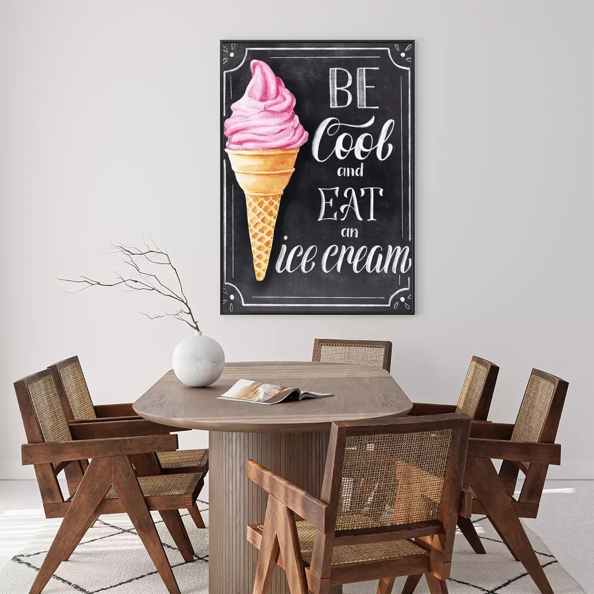 Poster Be cool and eat an ice cream chalk hand lettering with illustration on chalkboard background. Vintage type illustration.