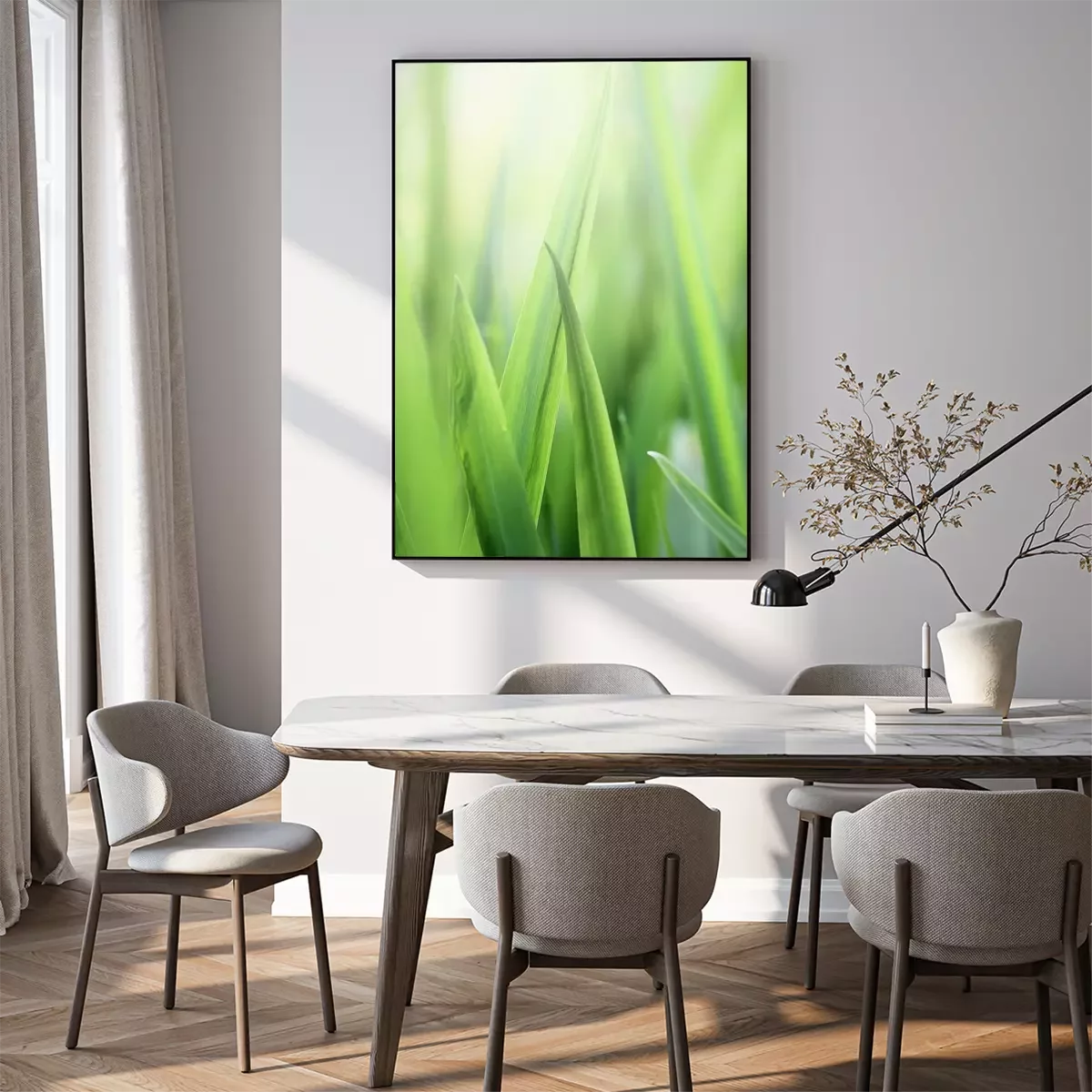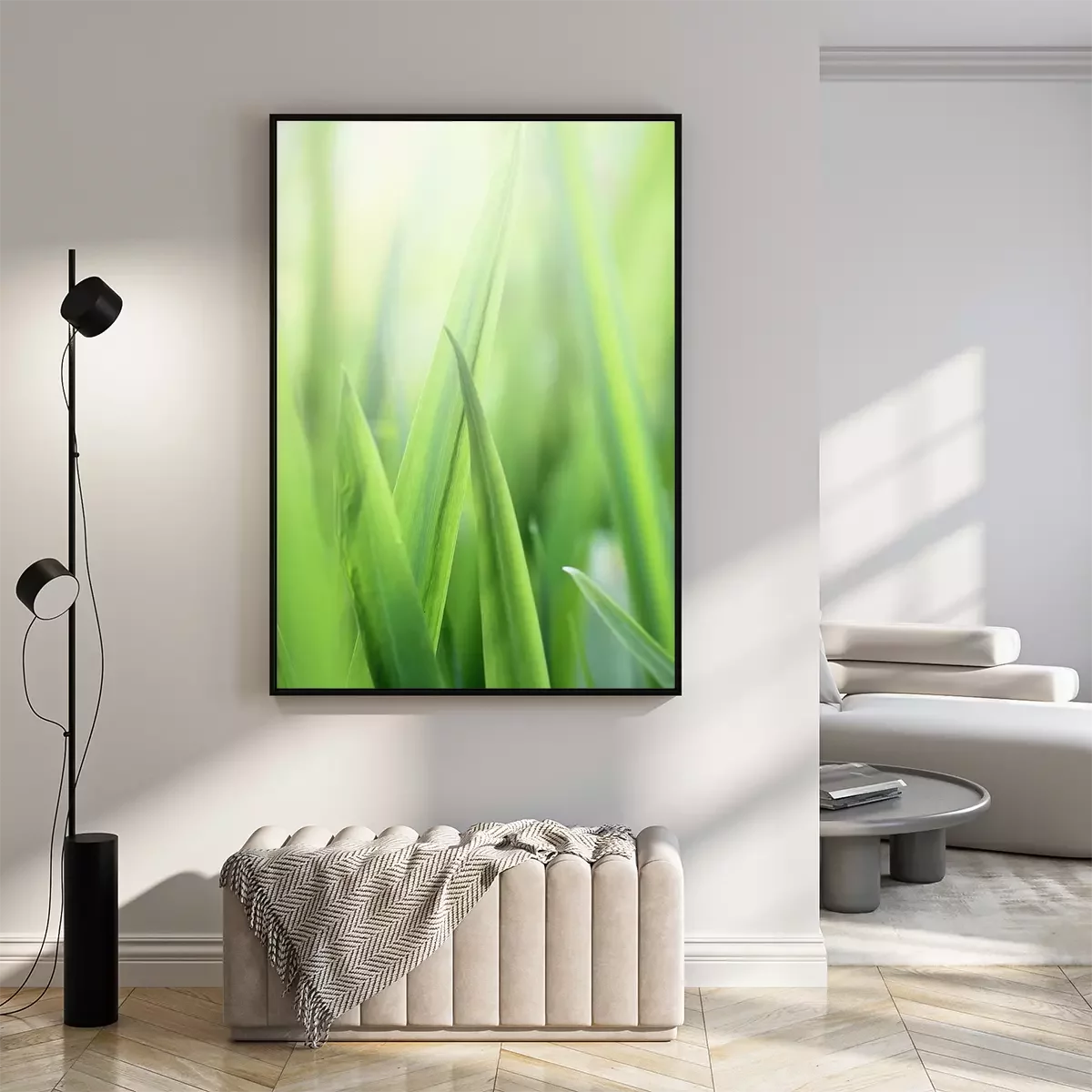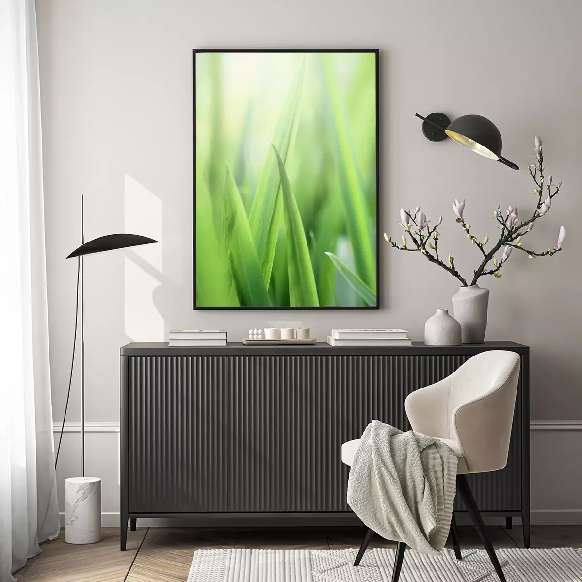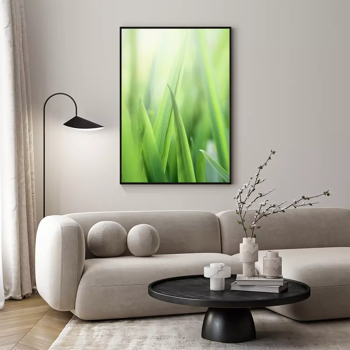 Poster: Beautiful nature background with close up green grass in summer or spring.