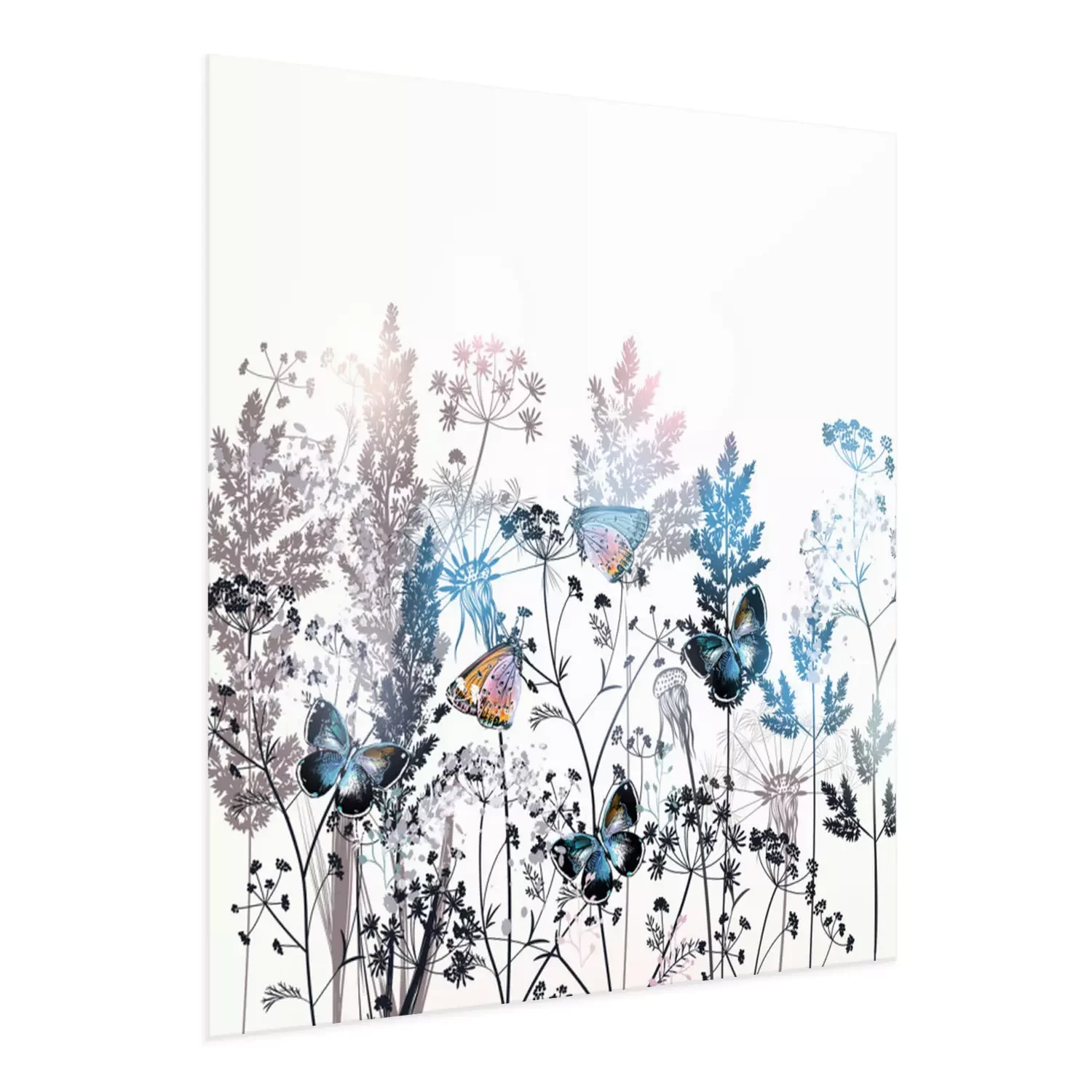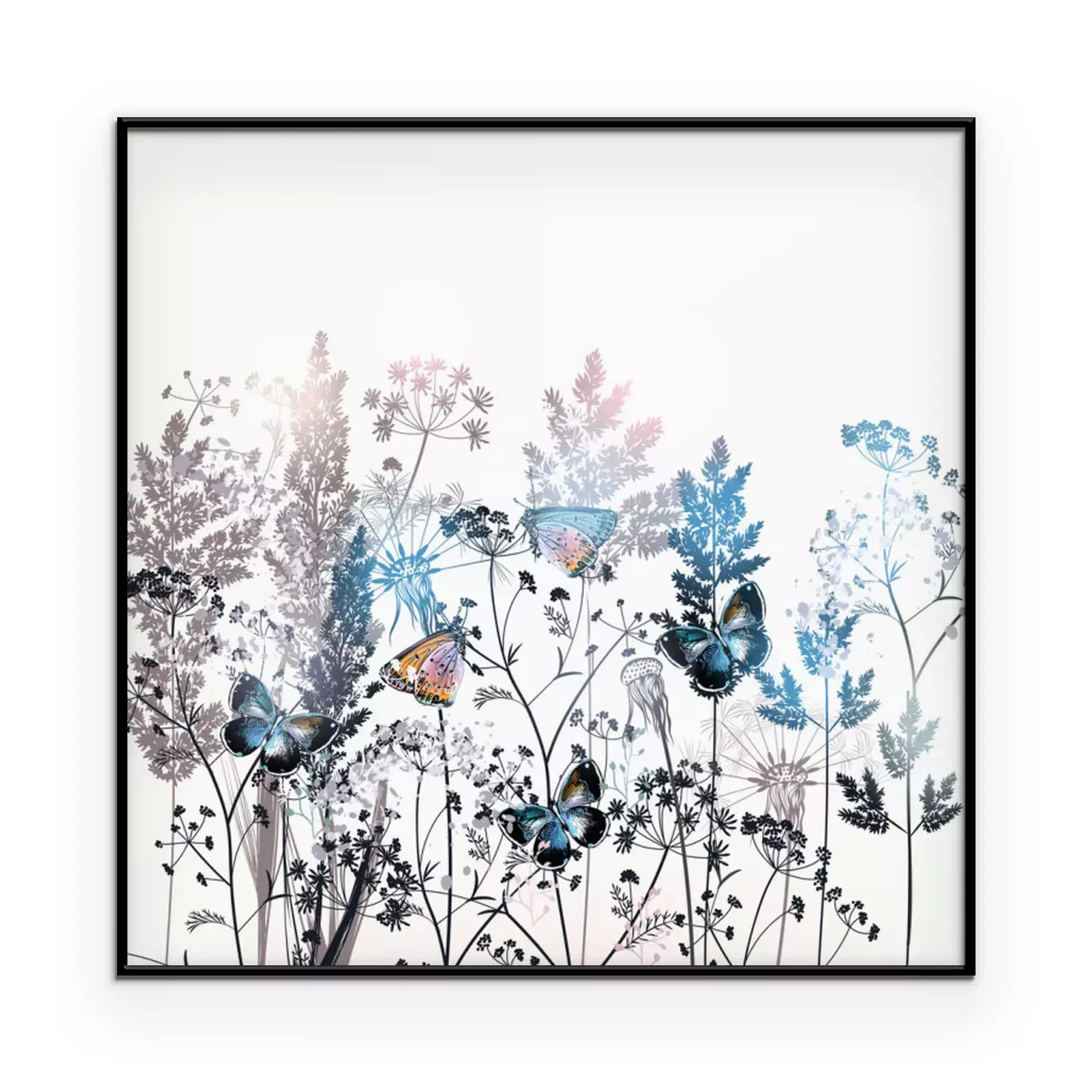 Poster: Beautiful vector field flowers illustration with plants, florals and butterflies