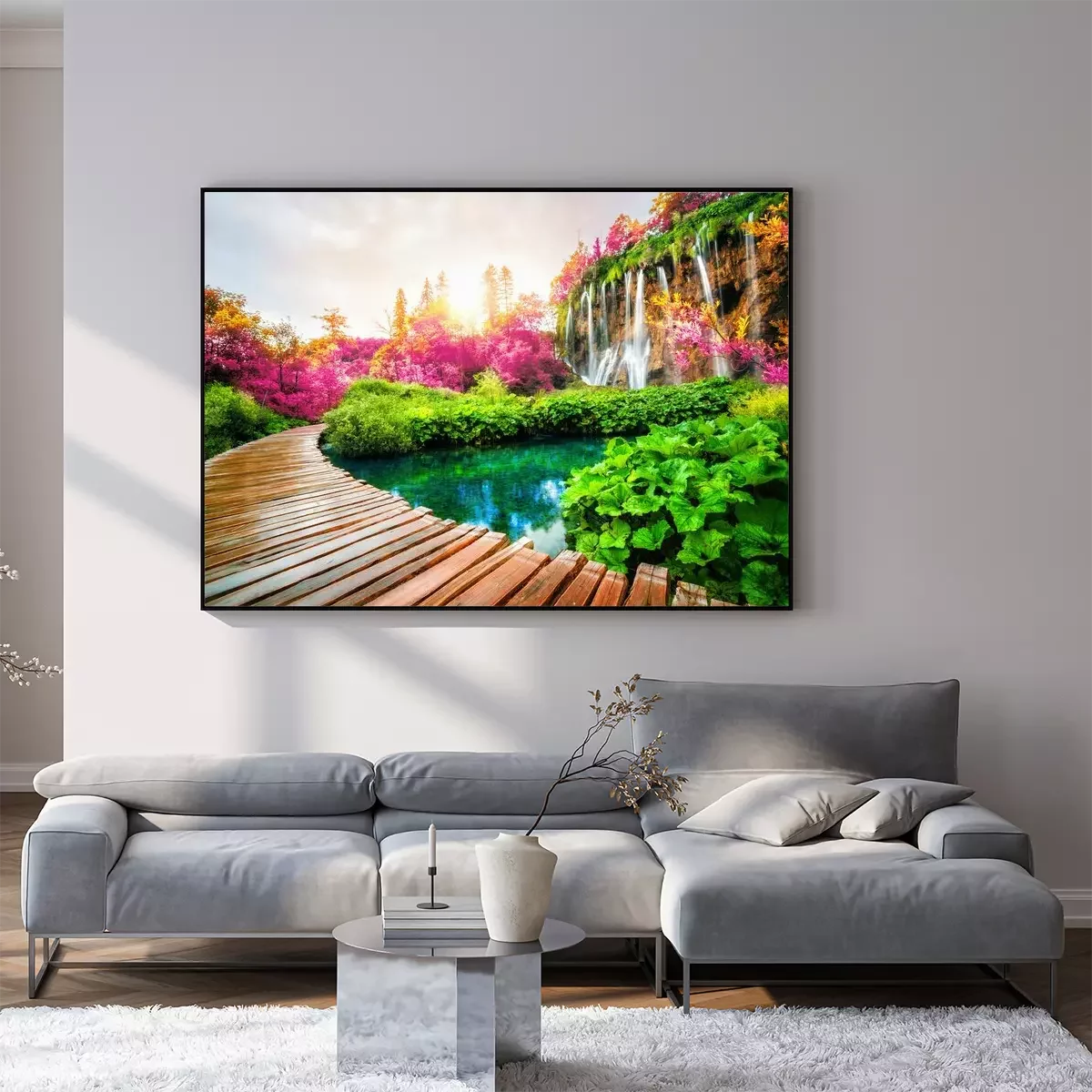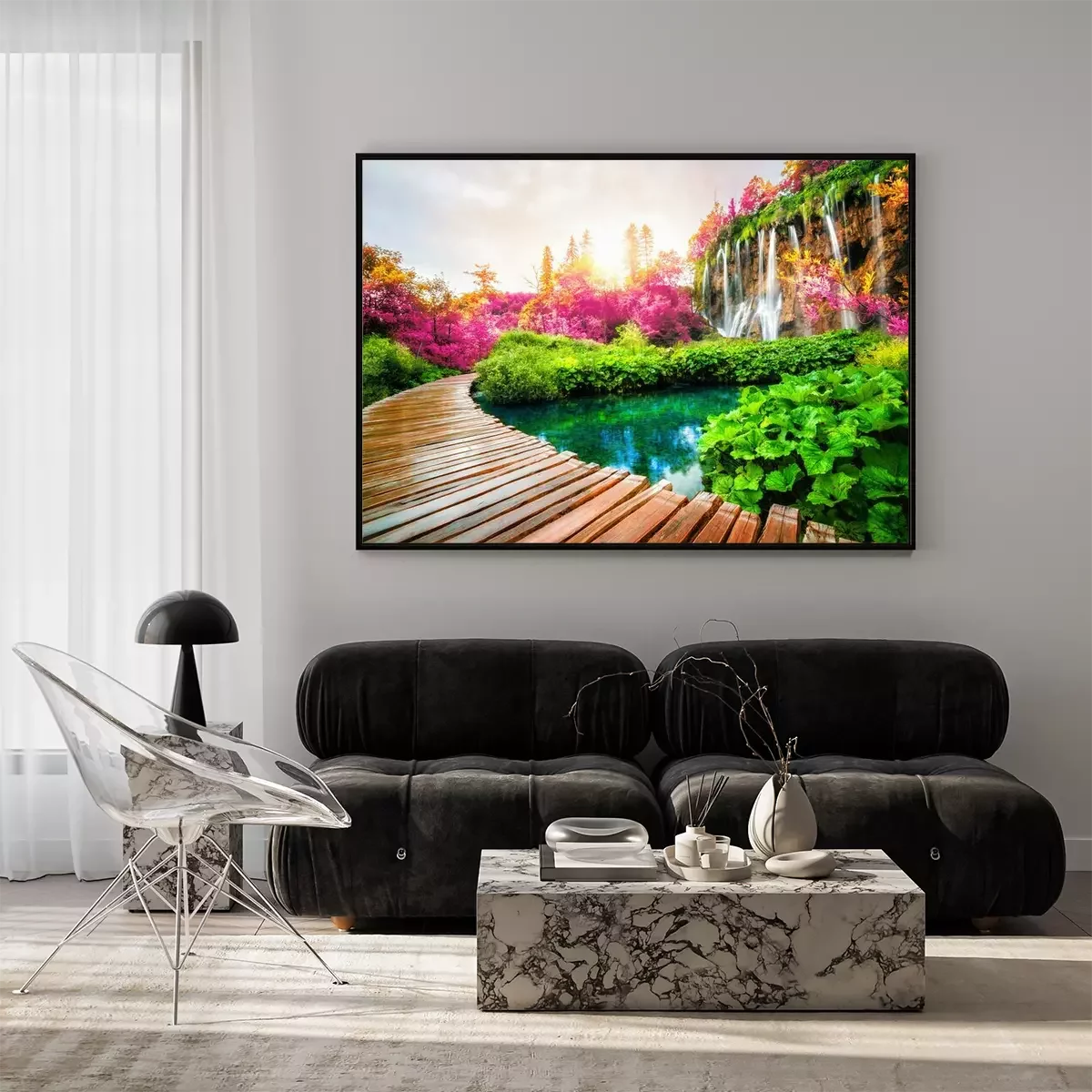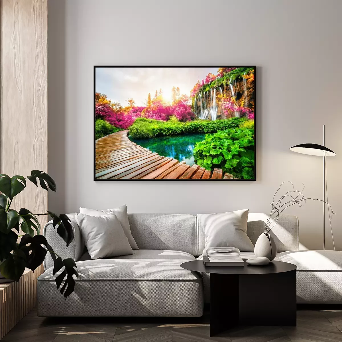 Poster Beautiful wooden path in Plitvice Lake, Croatia.