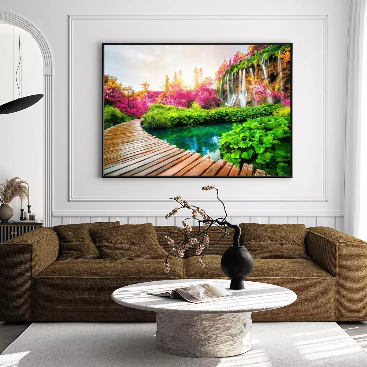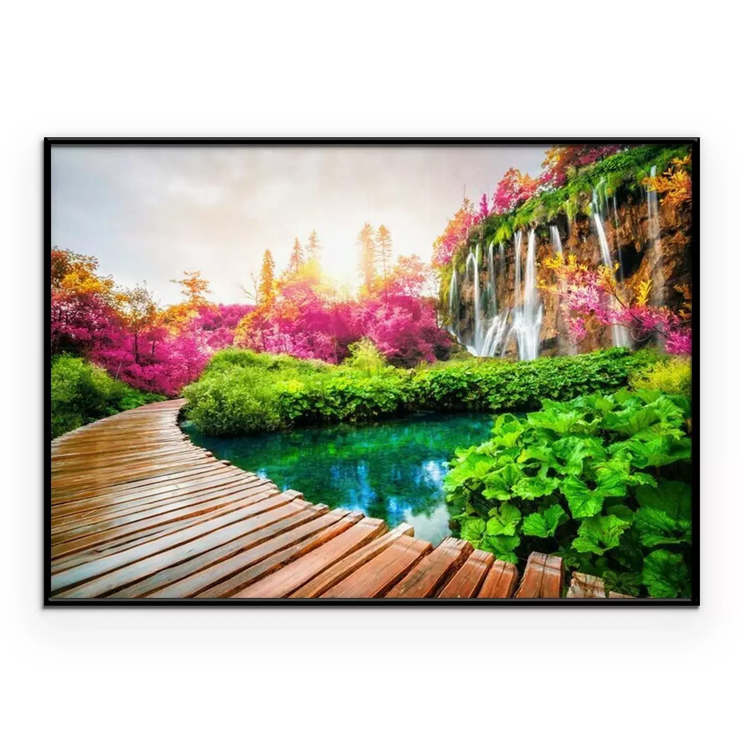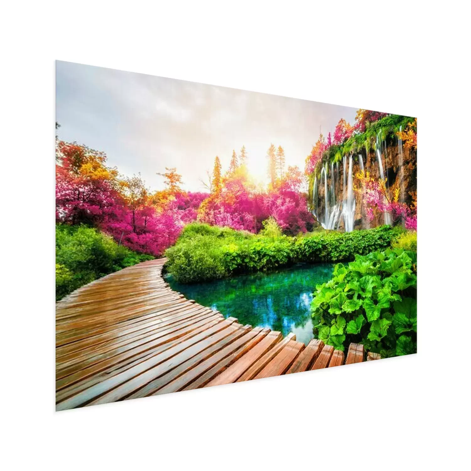 Poster: Beautiful wooden path in Plitvice Lake, Croatia.