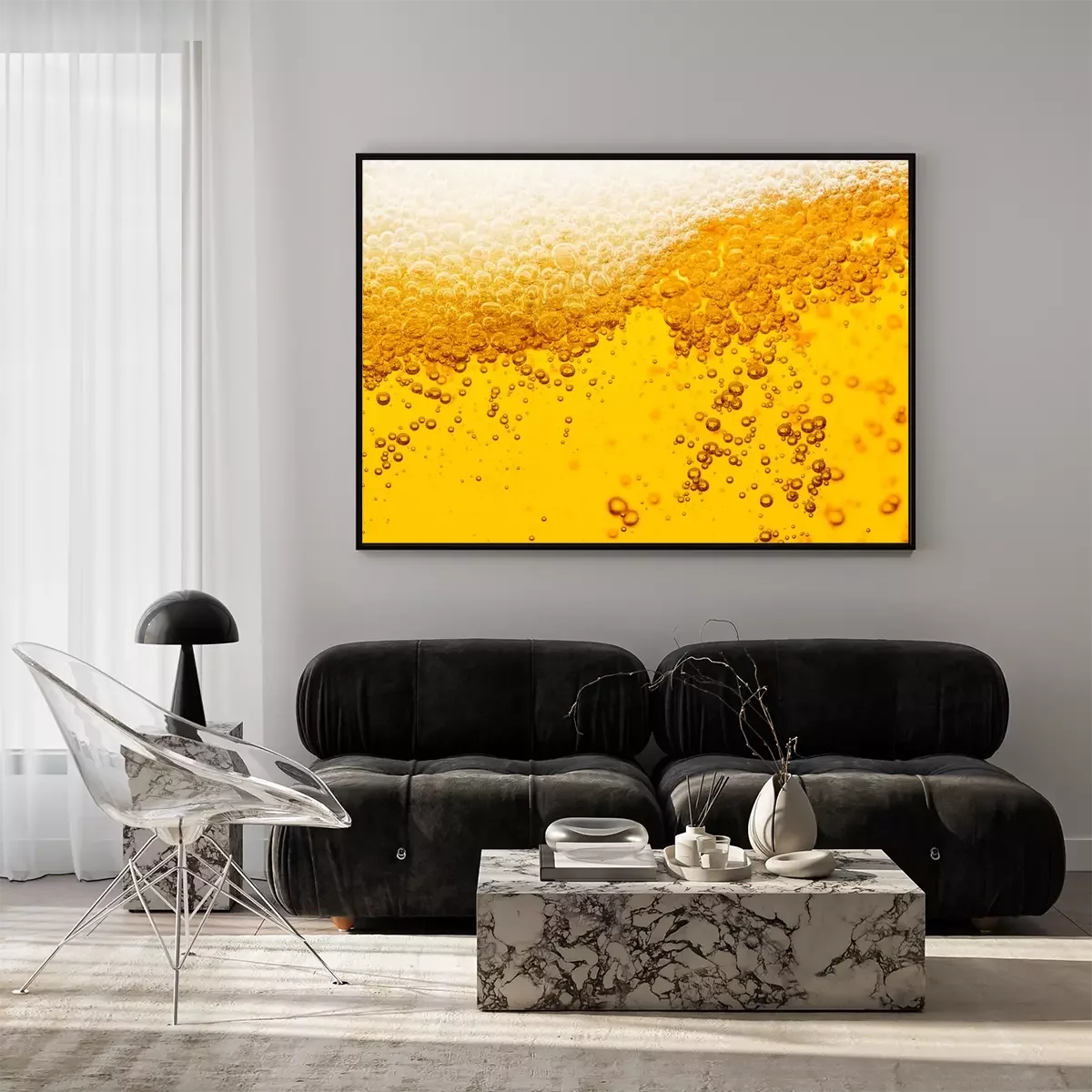 Poster Beer background with bubble froth texture foam pouring alcohol soda in glass happy celebration party holiday new year concept object design