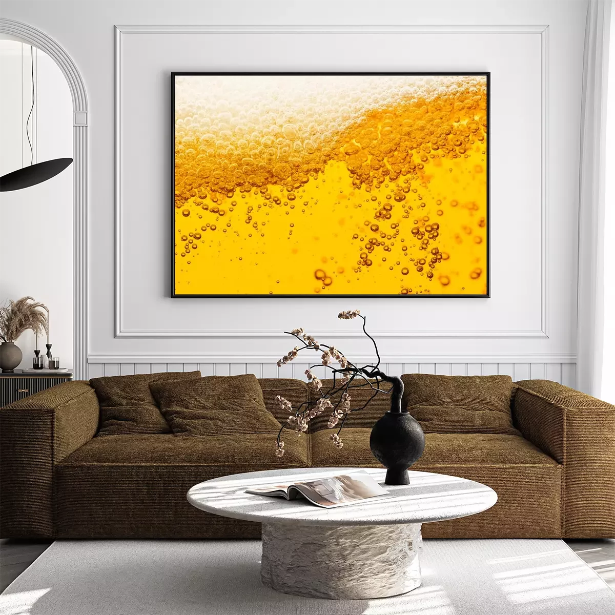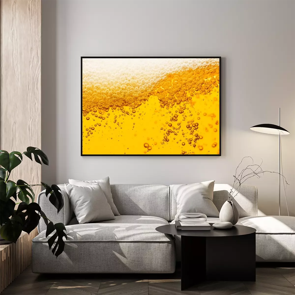 Poster: Beer background with bubble froth texture foam pouring alcohol soda in glass happy celebration party holiday new year concept object design