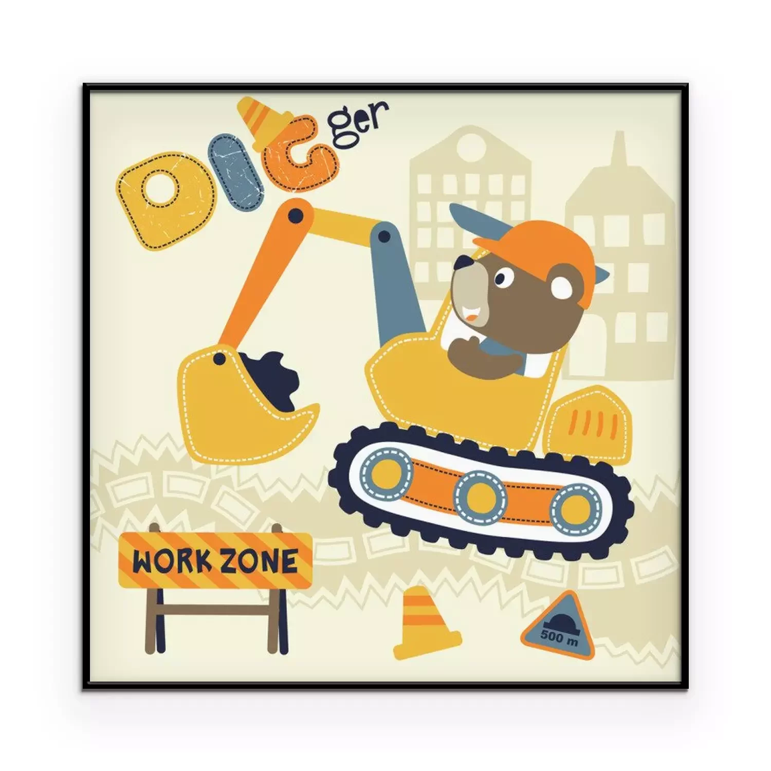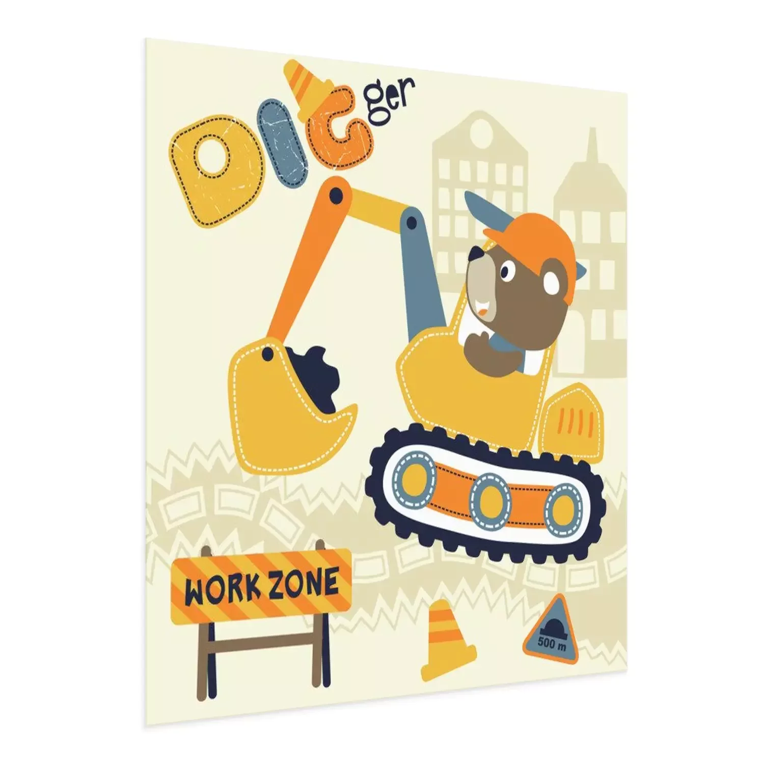 Poster Beer in de graafmachine aan het werk