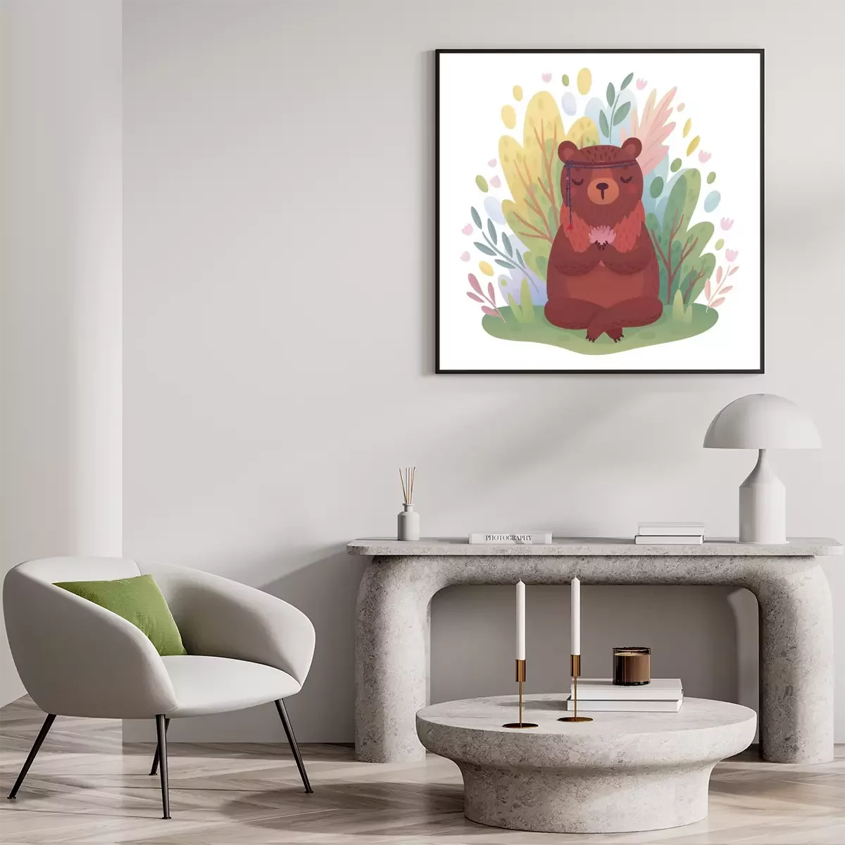 Poster: Beer met een bloem in zijn pootjes en een verband om zijn kop