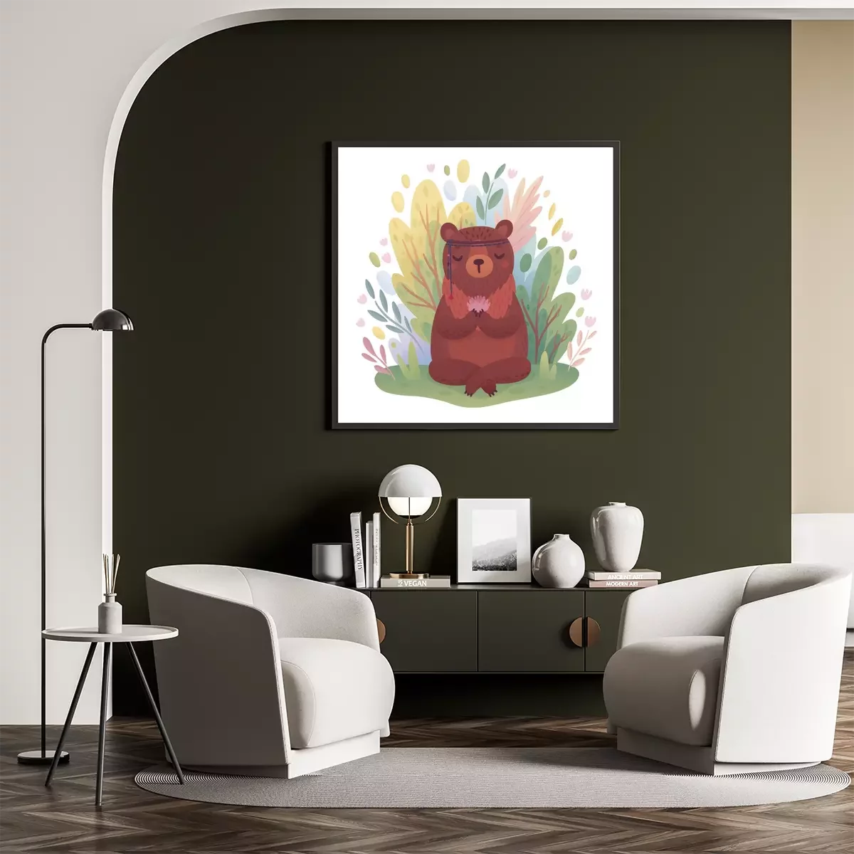Poster Beer met een bloem in zijn pootjes en een verband om zijn kop