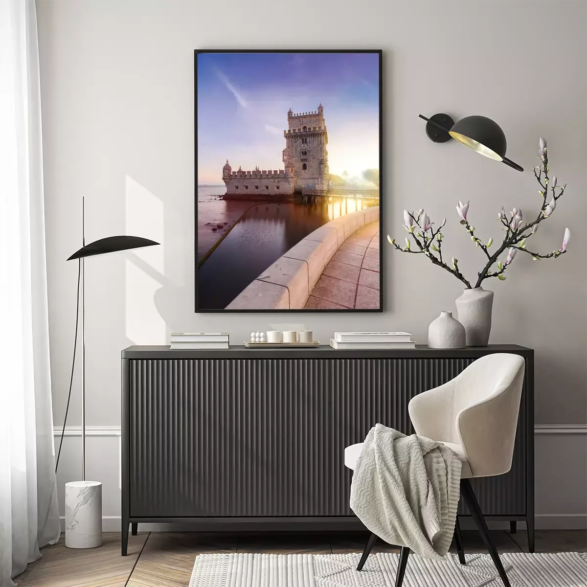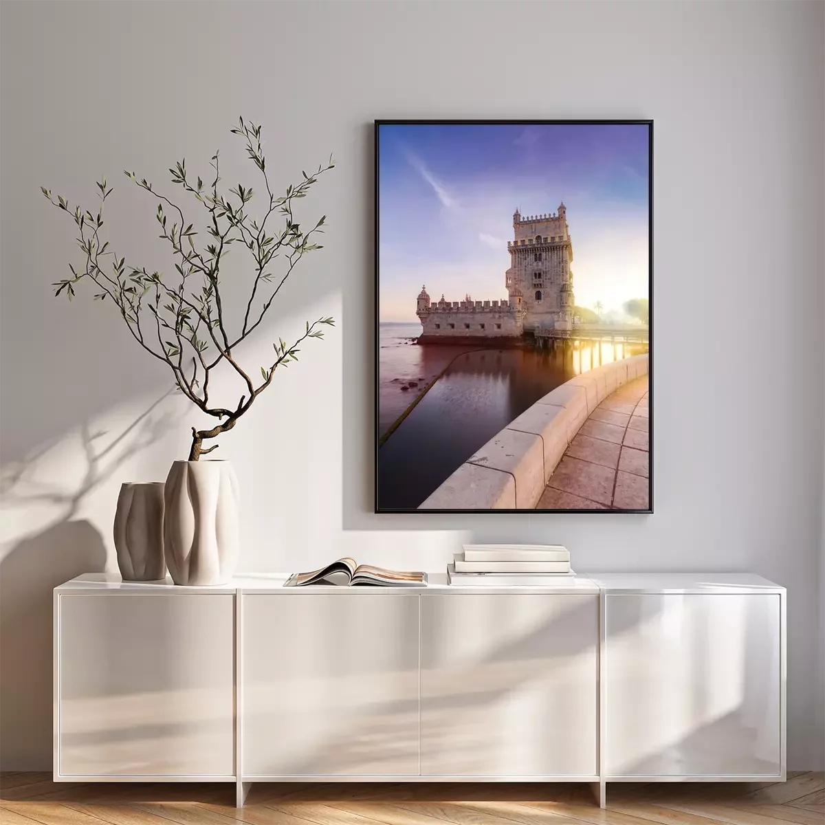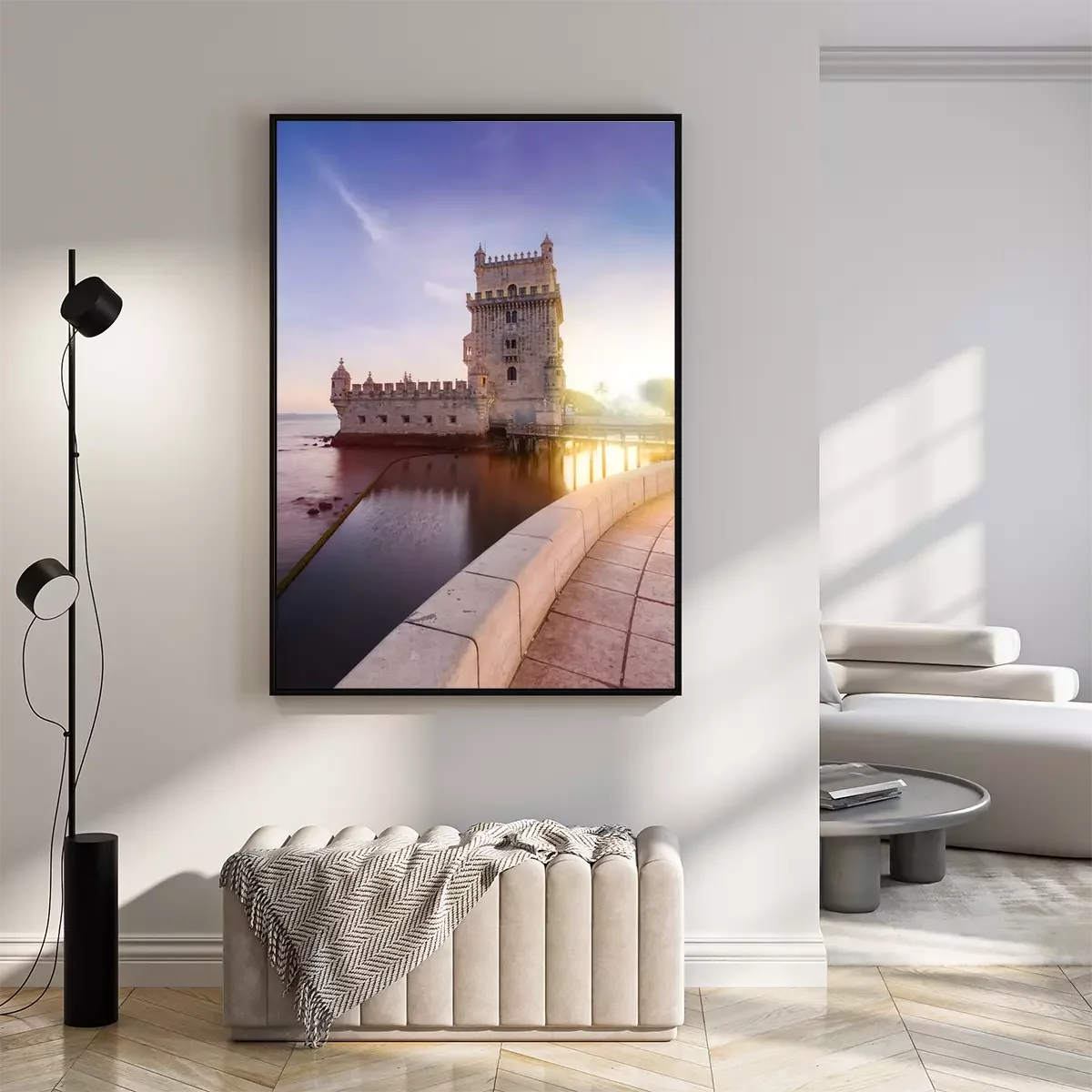 Poster: Belem Tower op de rivier de Taag in zonsondergang