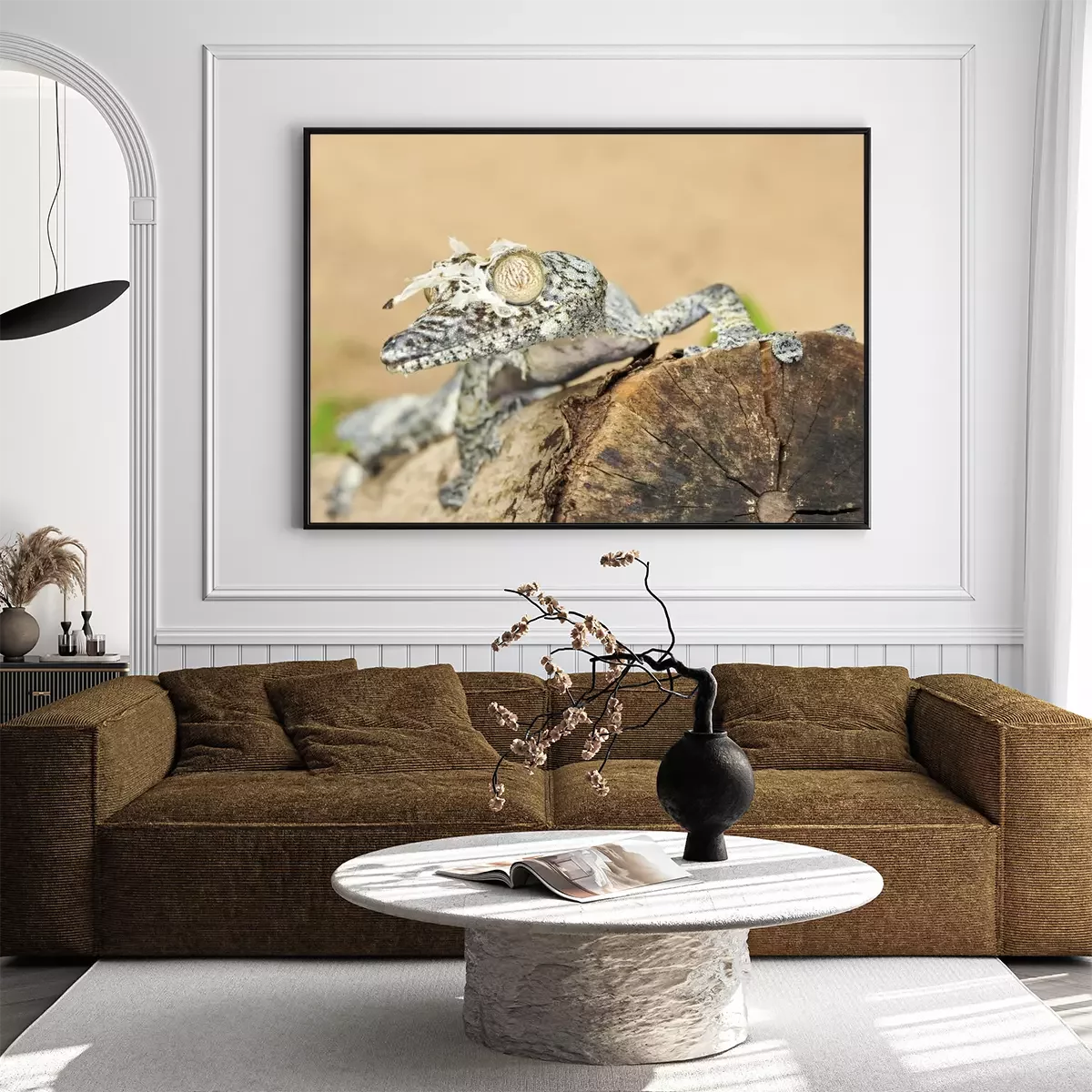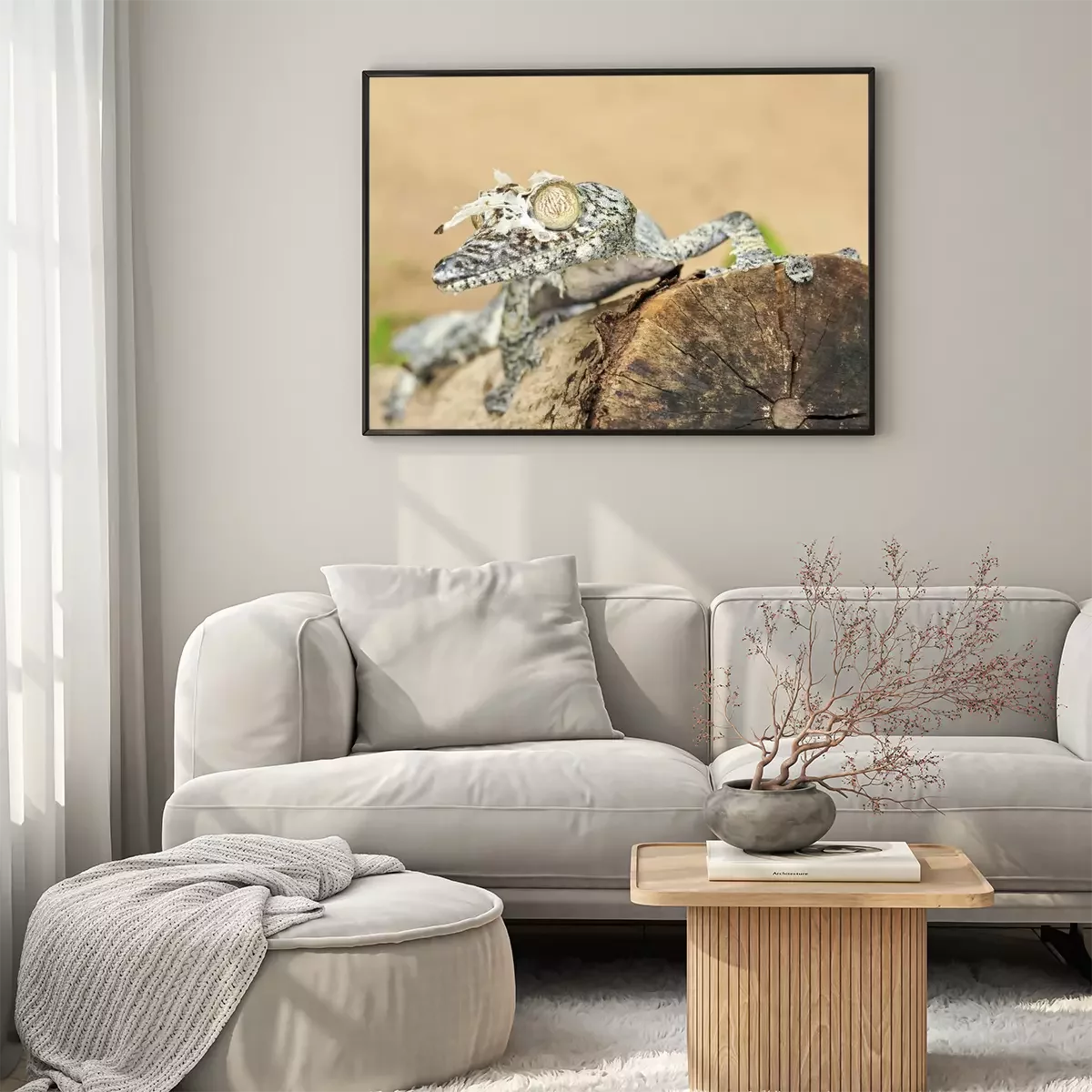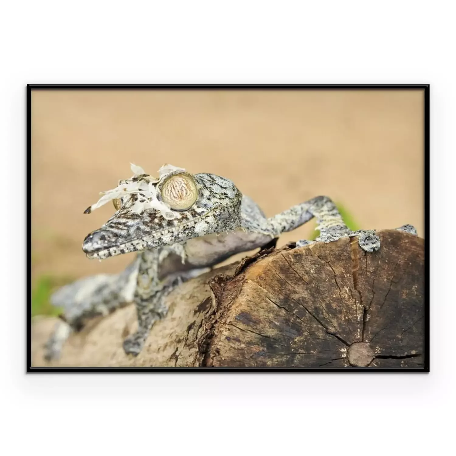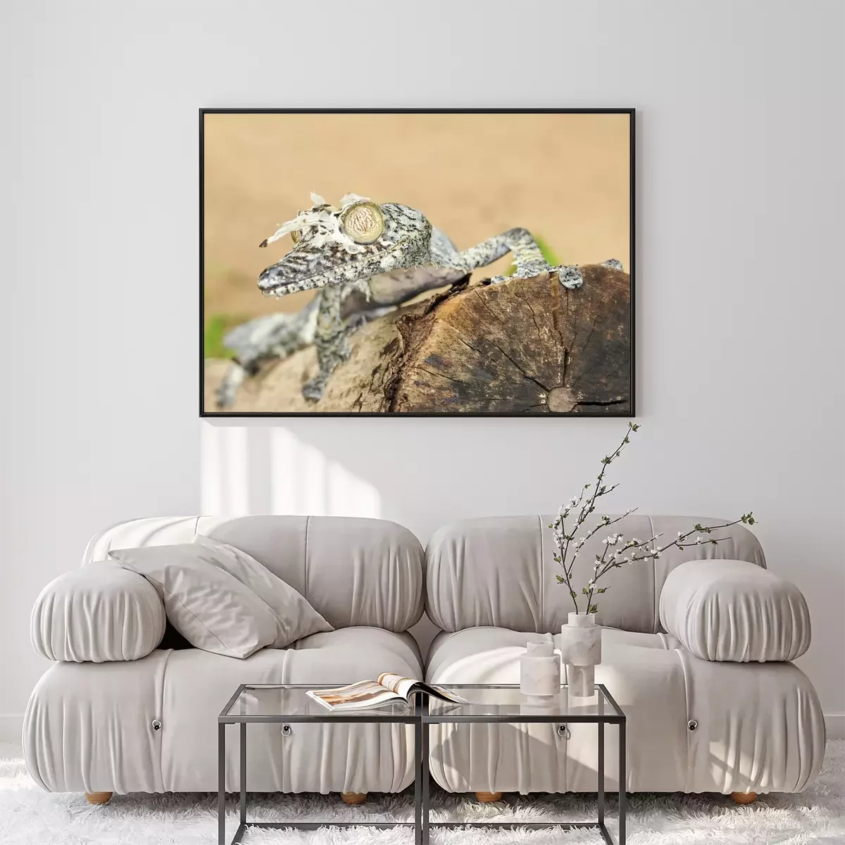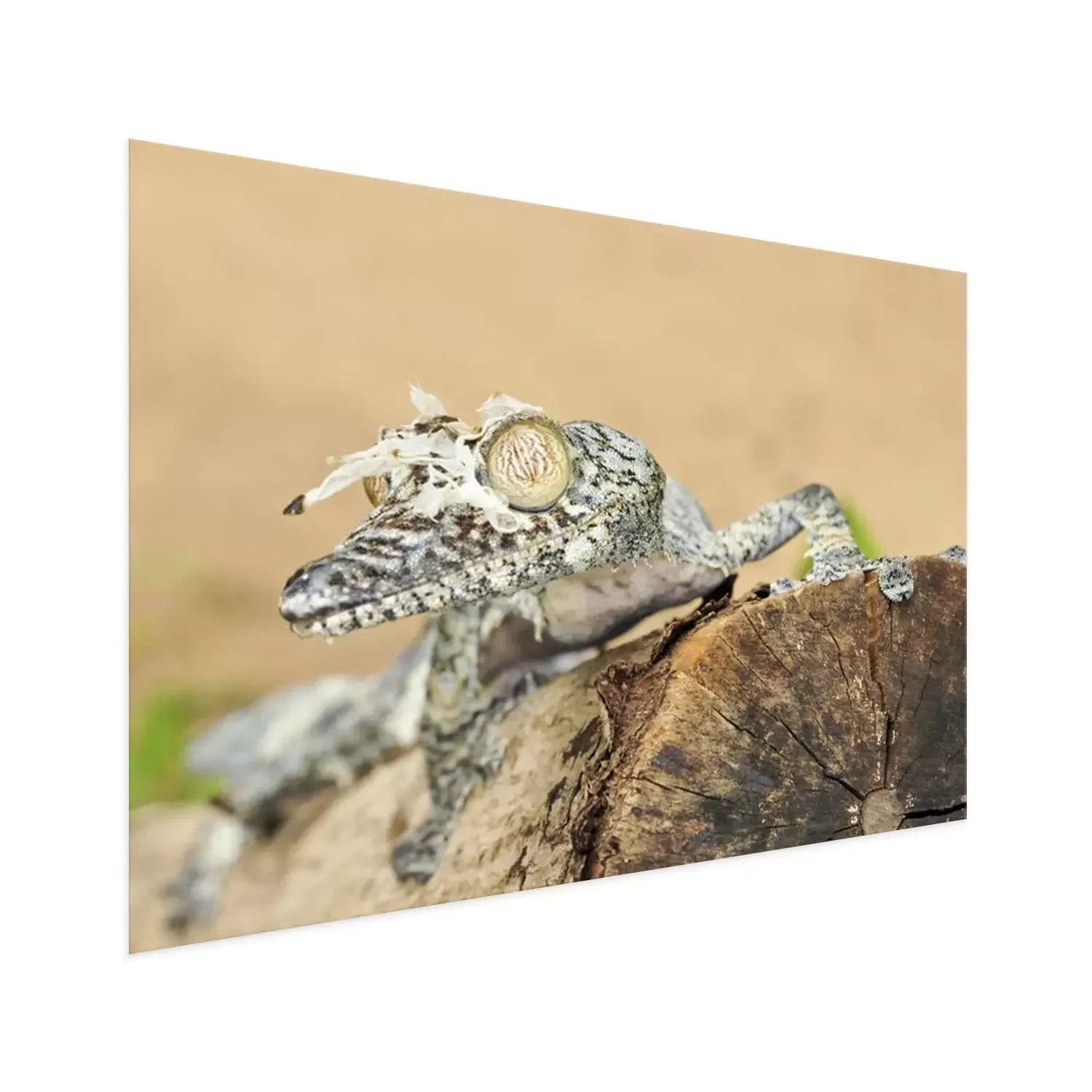 Poster: Bemoste blad-tailed gekko (Uroplatus sikorae) gecamoufleerd op een tre