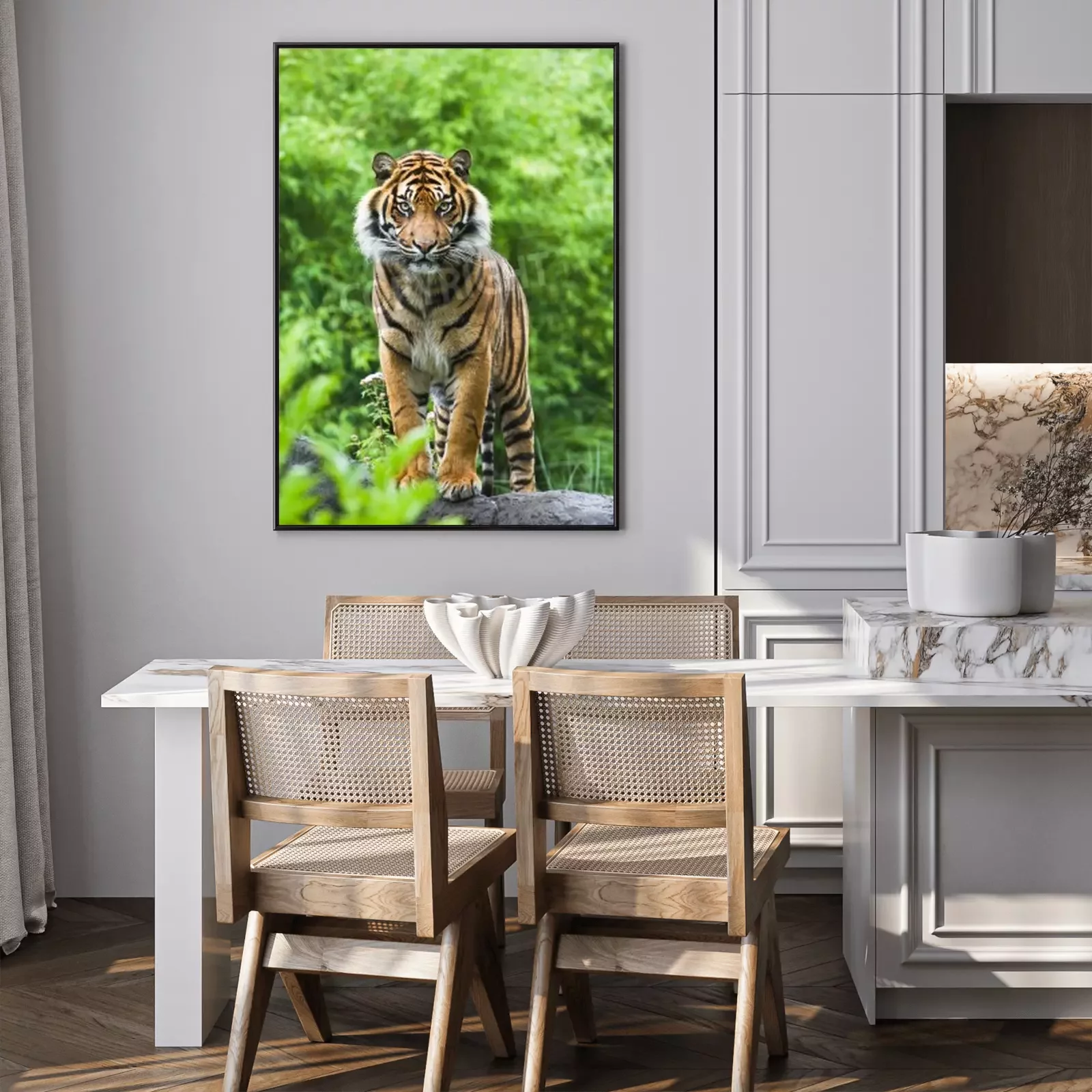 Poster Bengaalse tijger op groene achtergrond