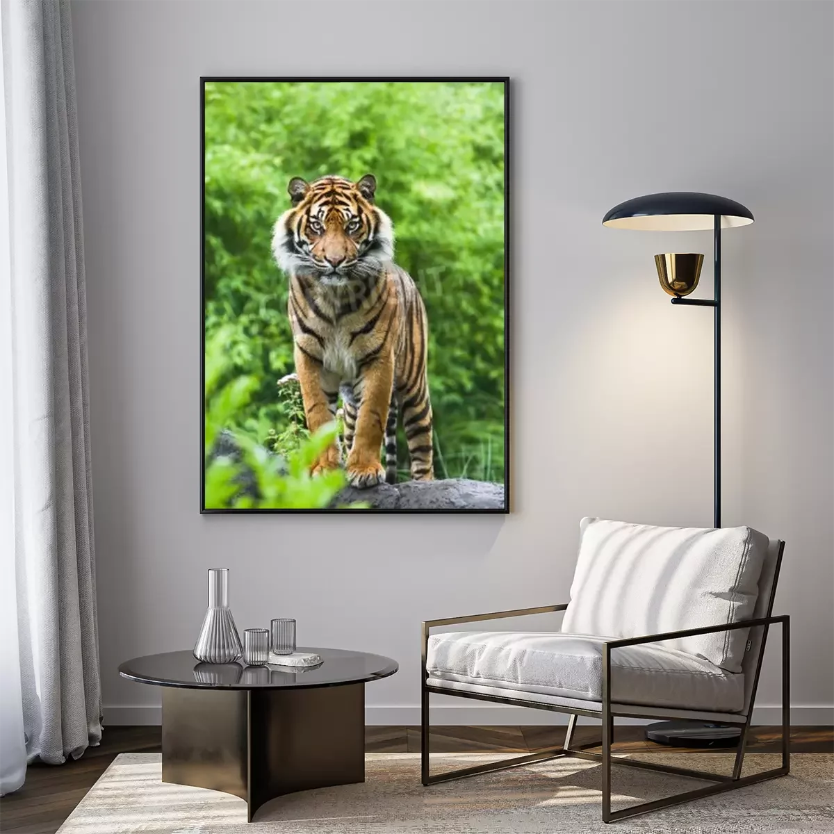 Poster: Bengaalse tijger op groene achtergrond