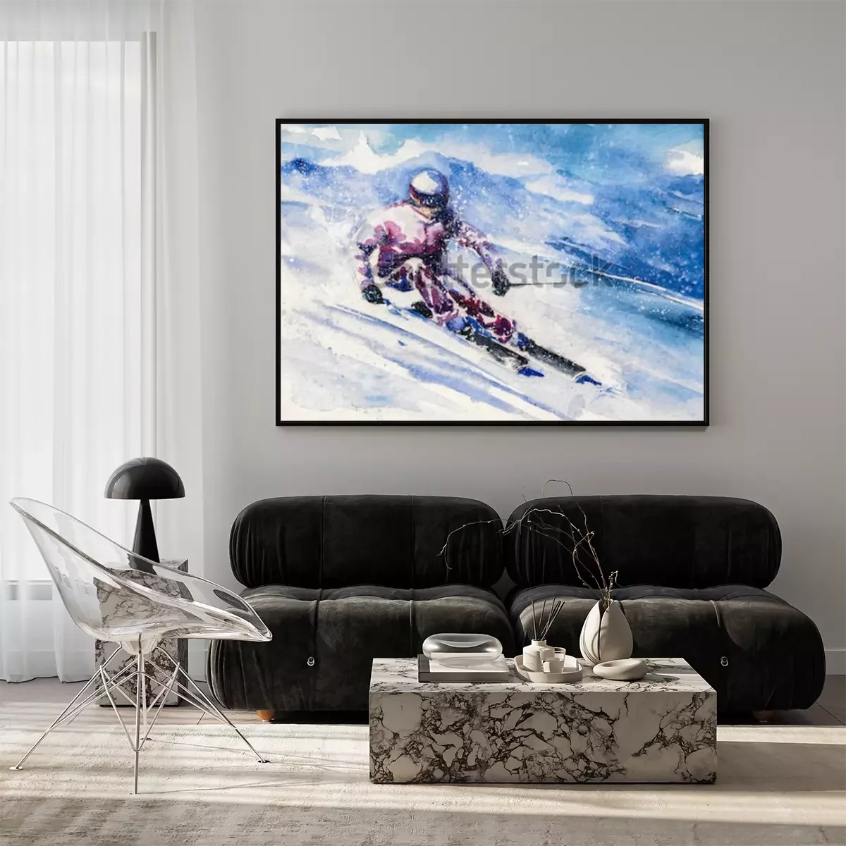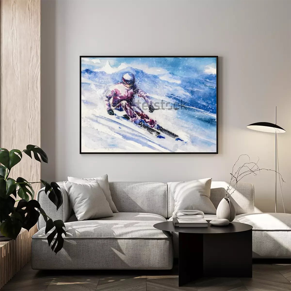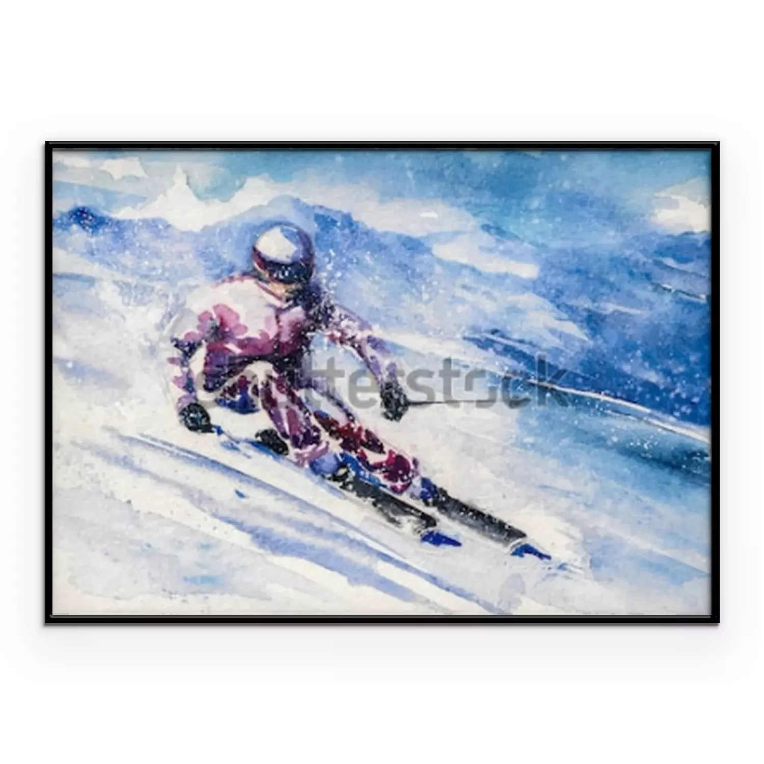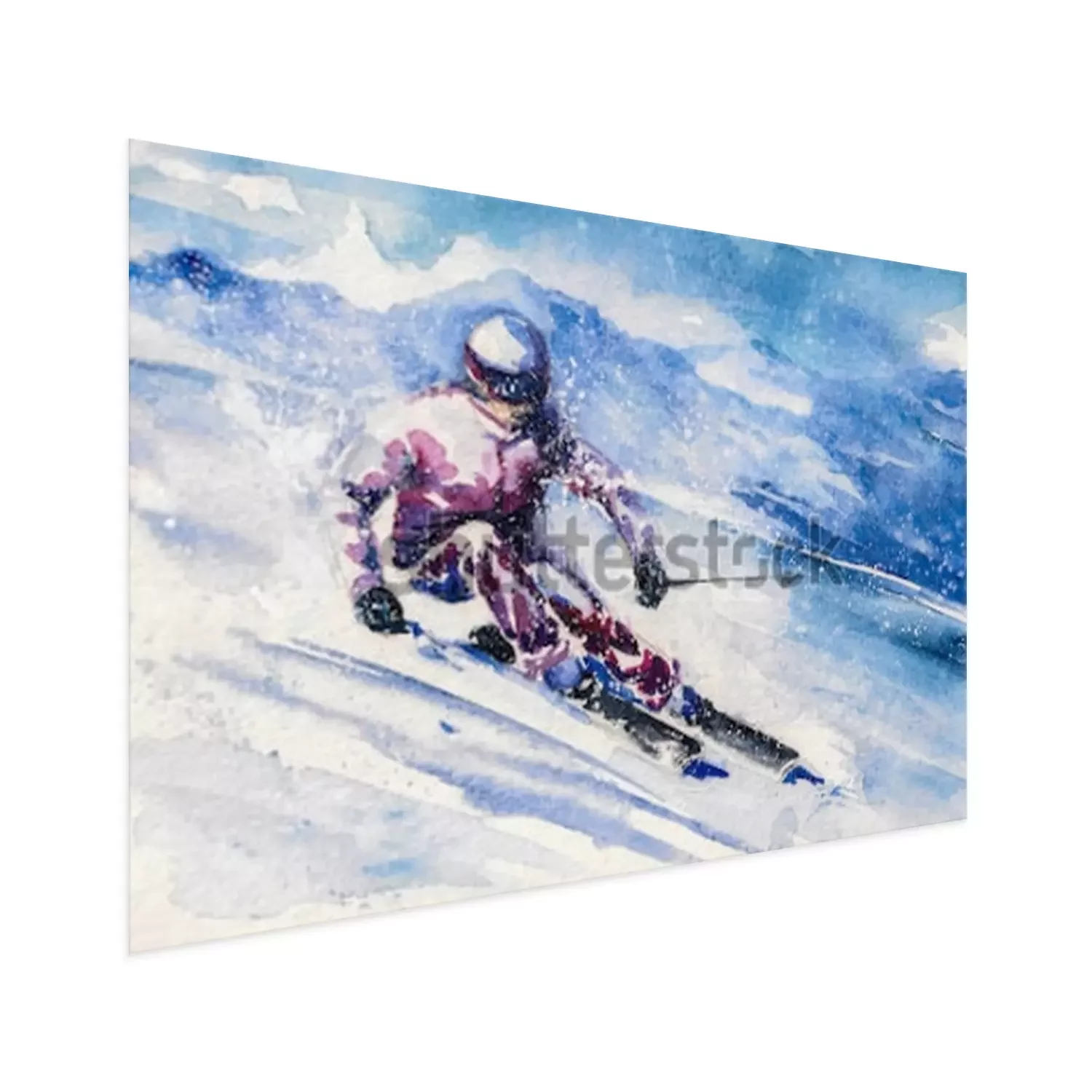 Poster: Bergskiër glijdt van de berg.
