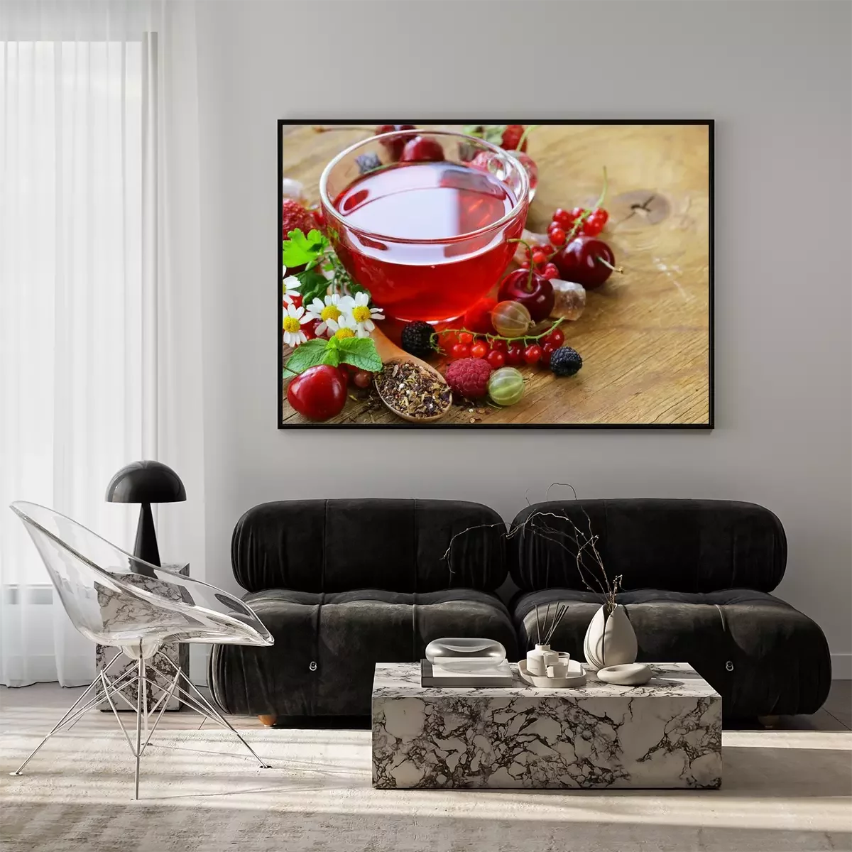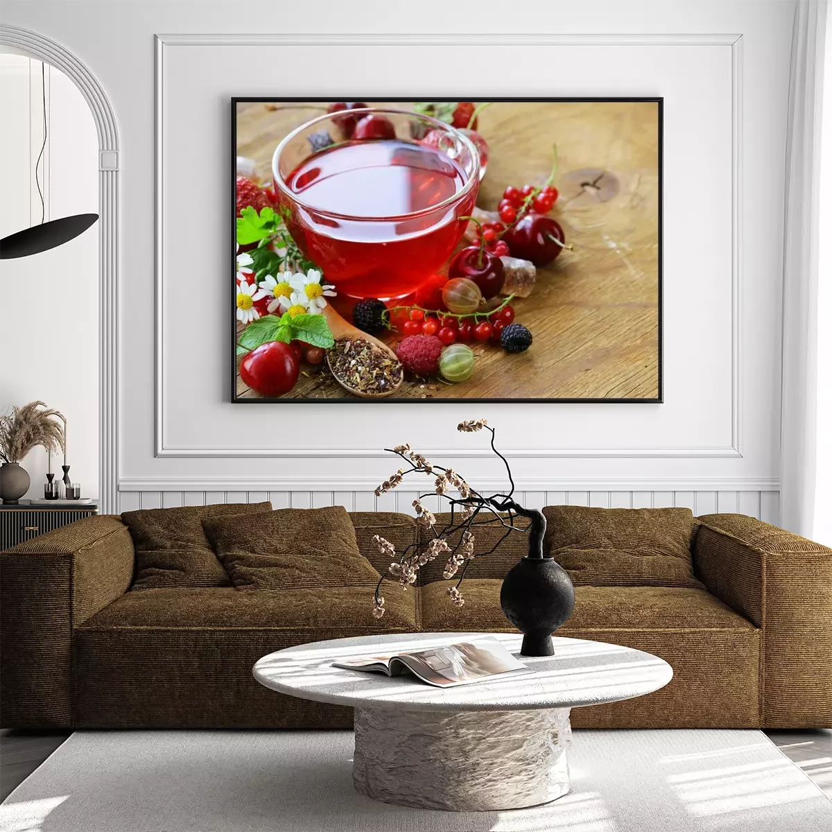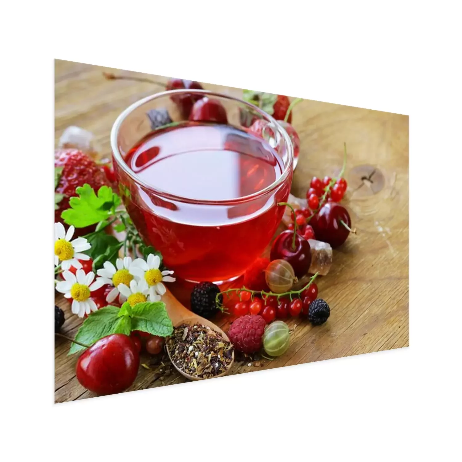 Poster berry thee met verse bessen, frambozen en aardbeien