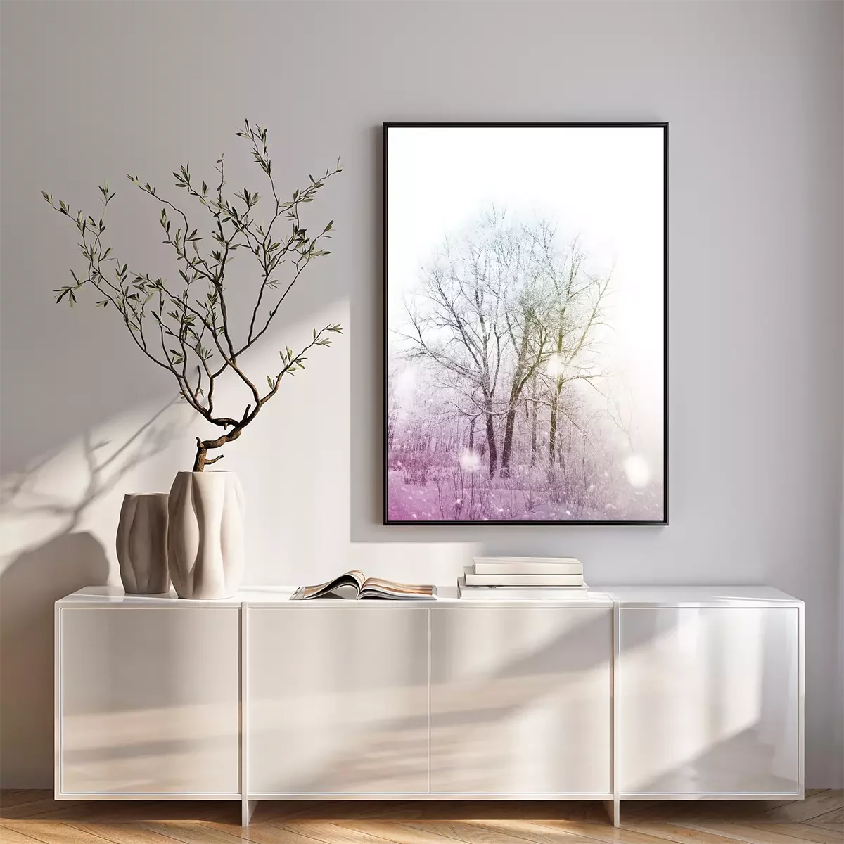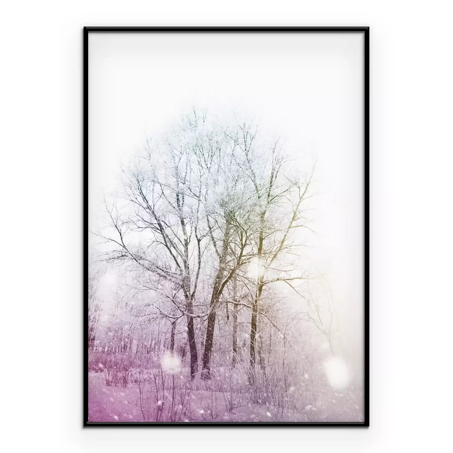 Poster: Besneeuwde bomen in kleurrijke esthetiek