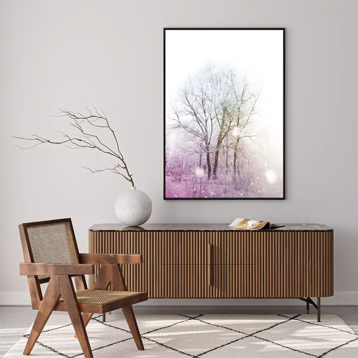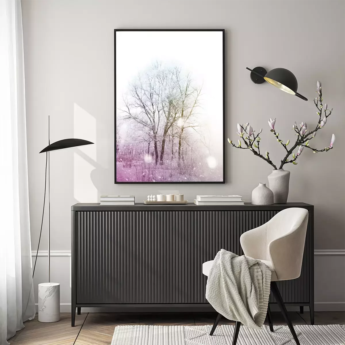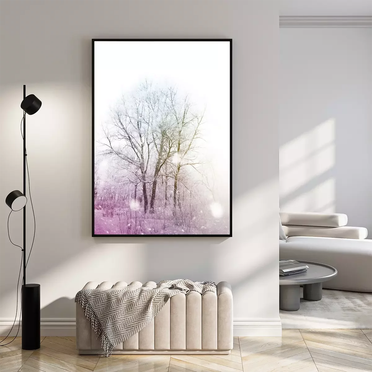 Poster Besneeuwde bomen in kleurrijke esthetiek