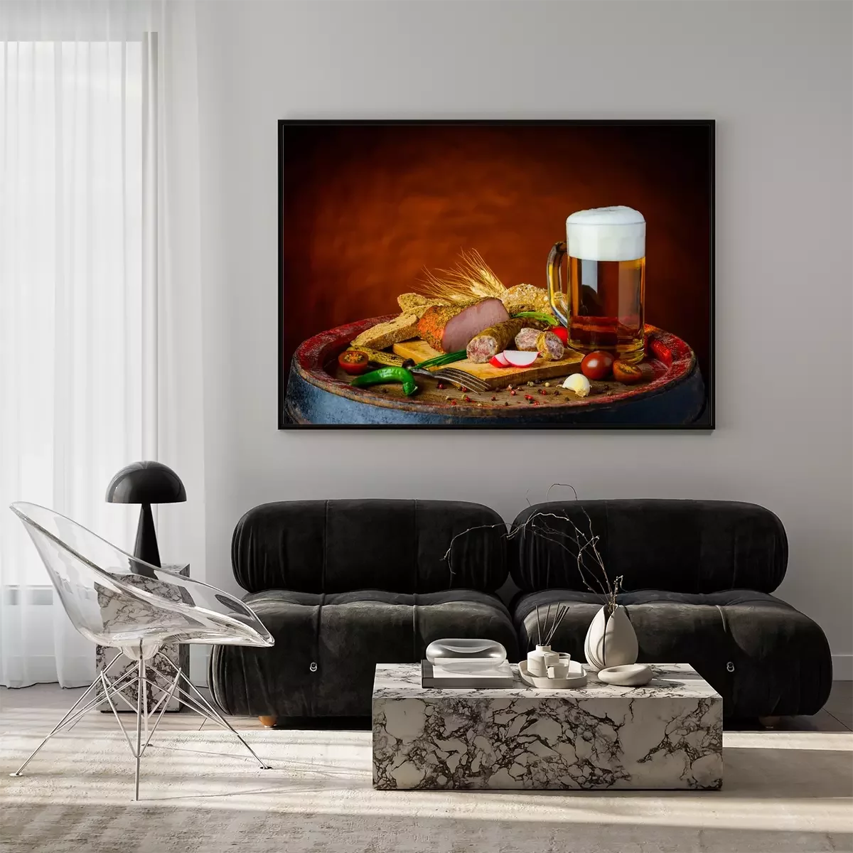 Poster Bier en rustieke eten