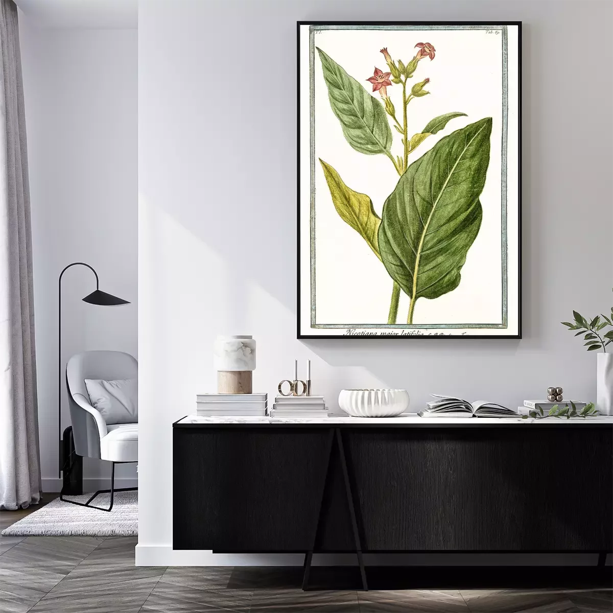 Poster: Bladeren en bloemen van tabak op een illustratie