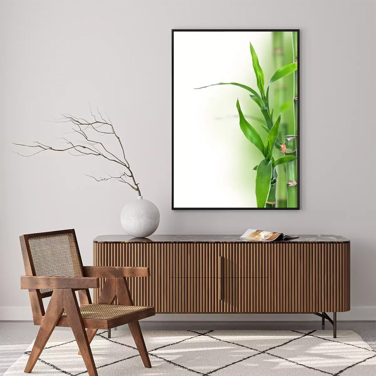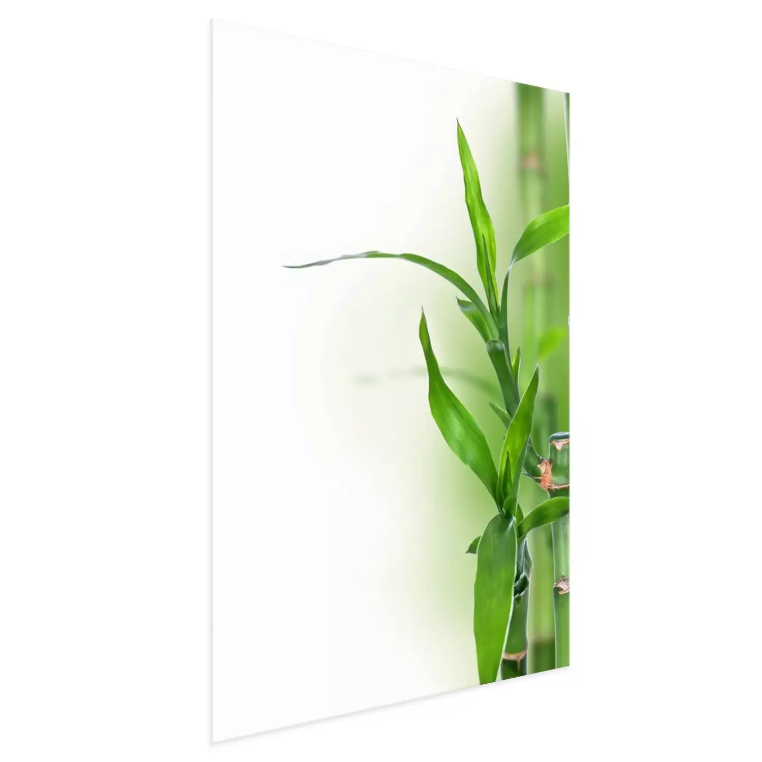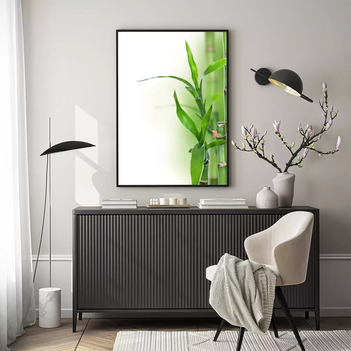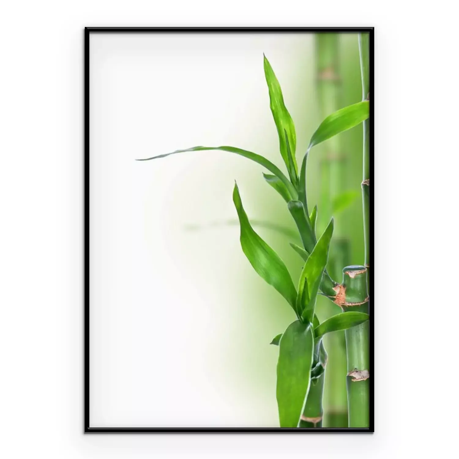 Poster: Bladeren van bamboe op achtergrond van onscherpe steng