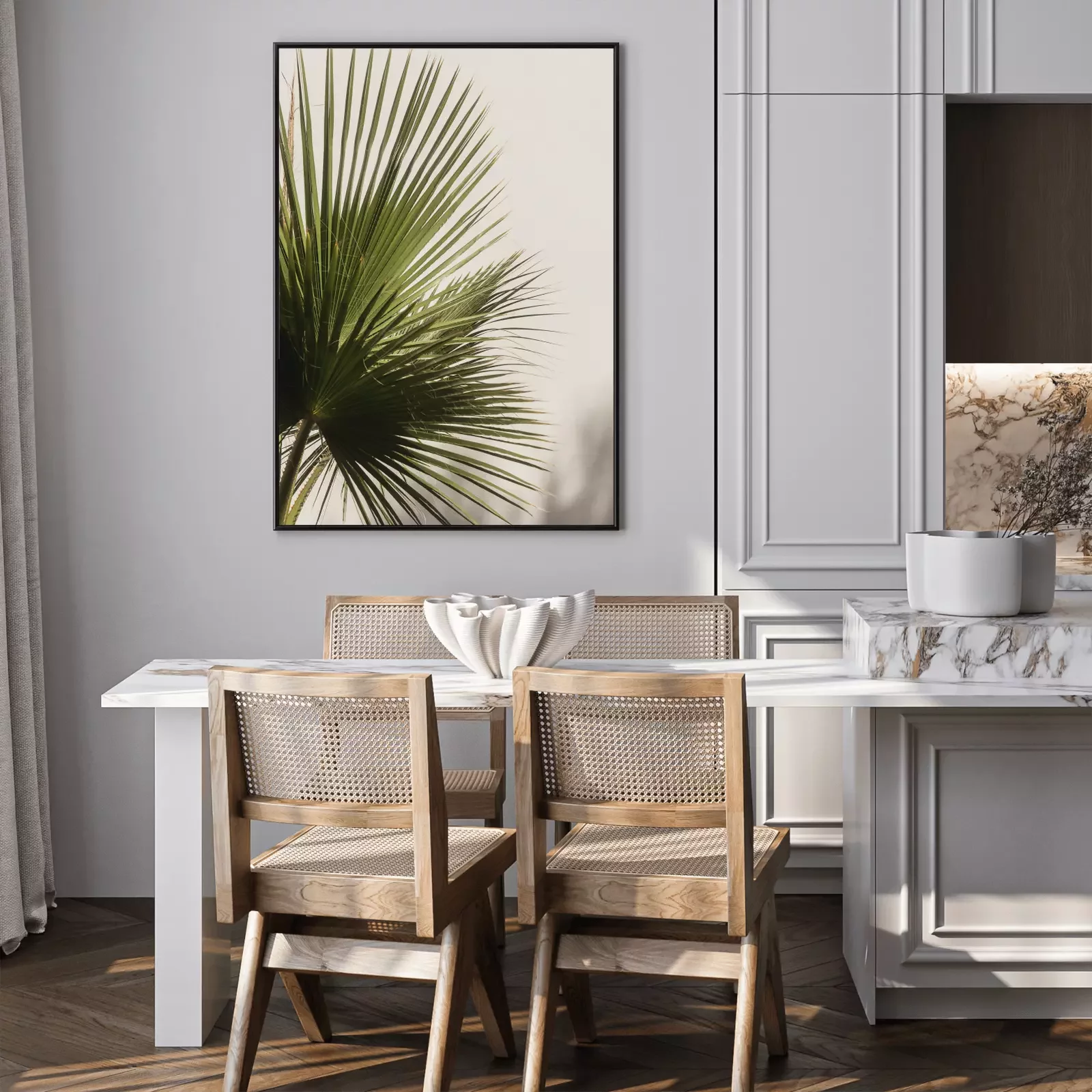 Poster: Bladeren verspreiden in een vaas