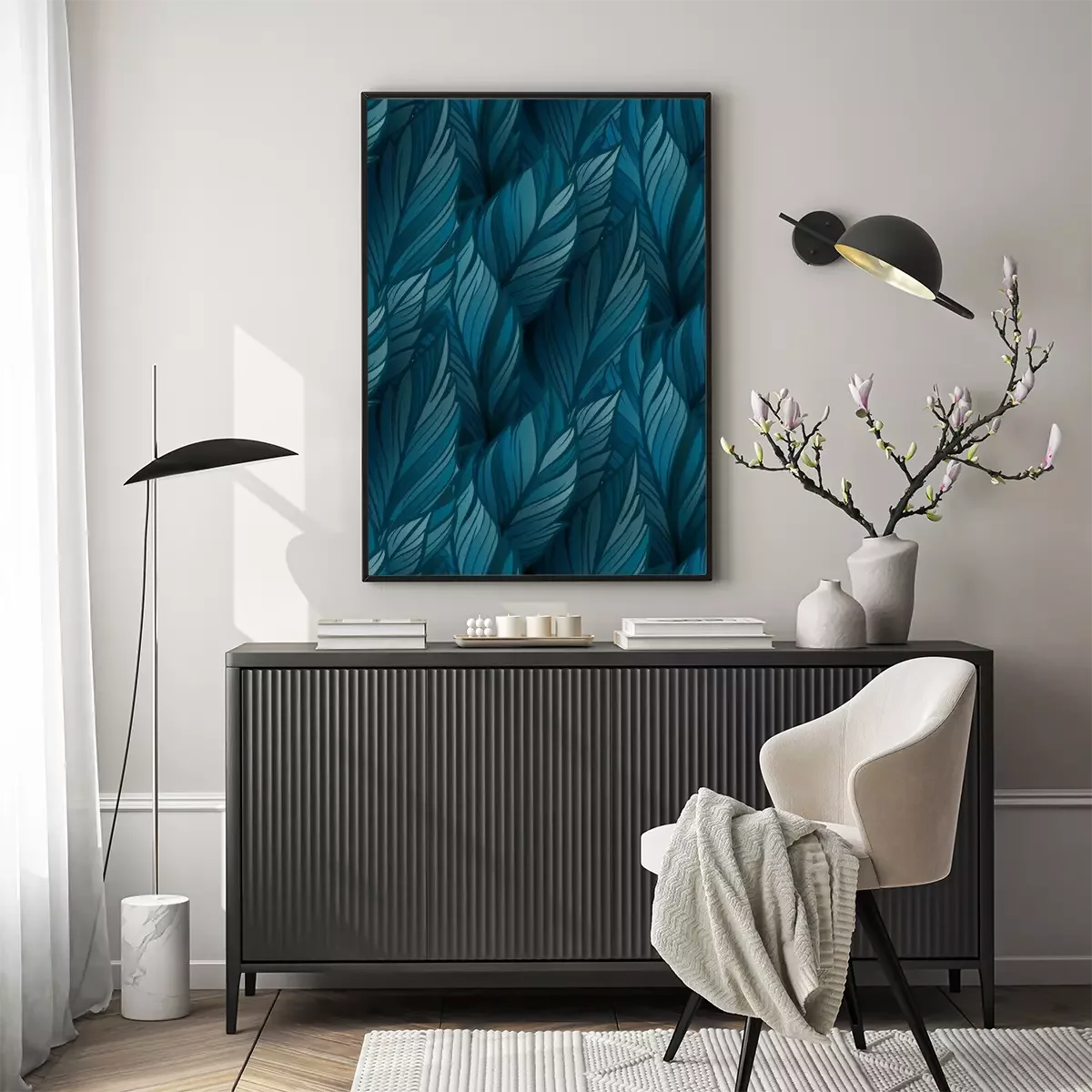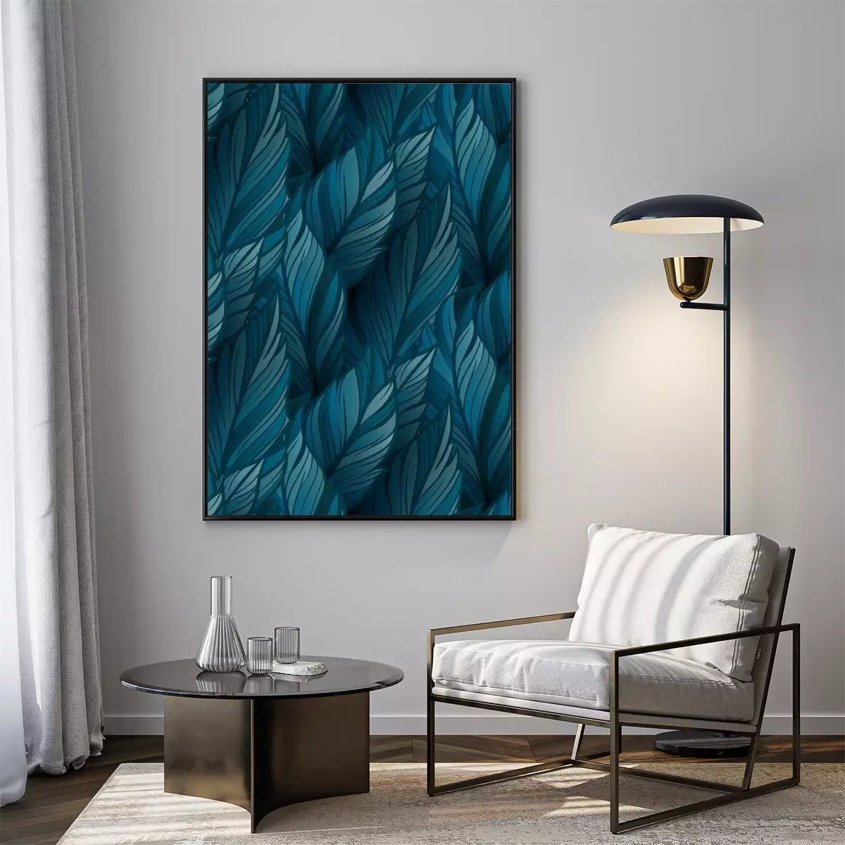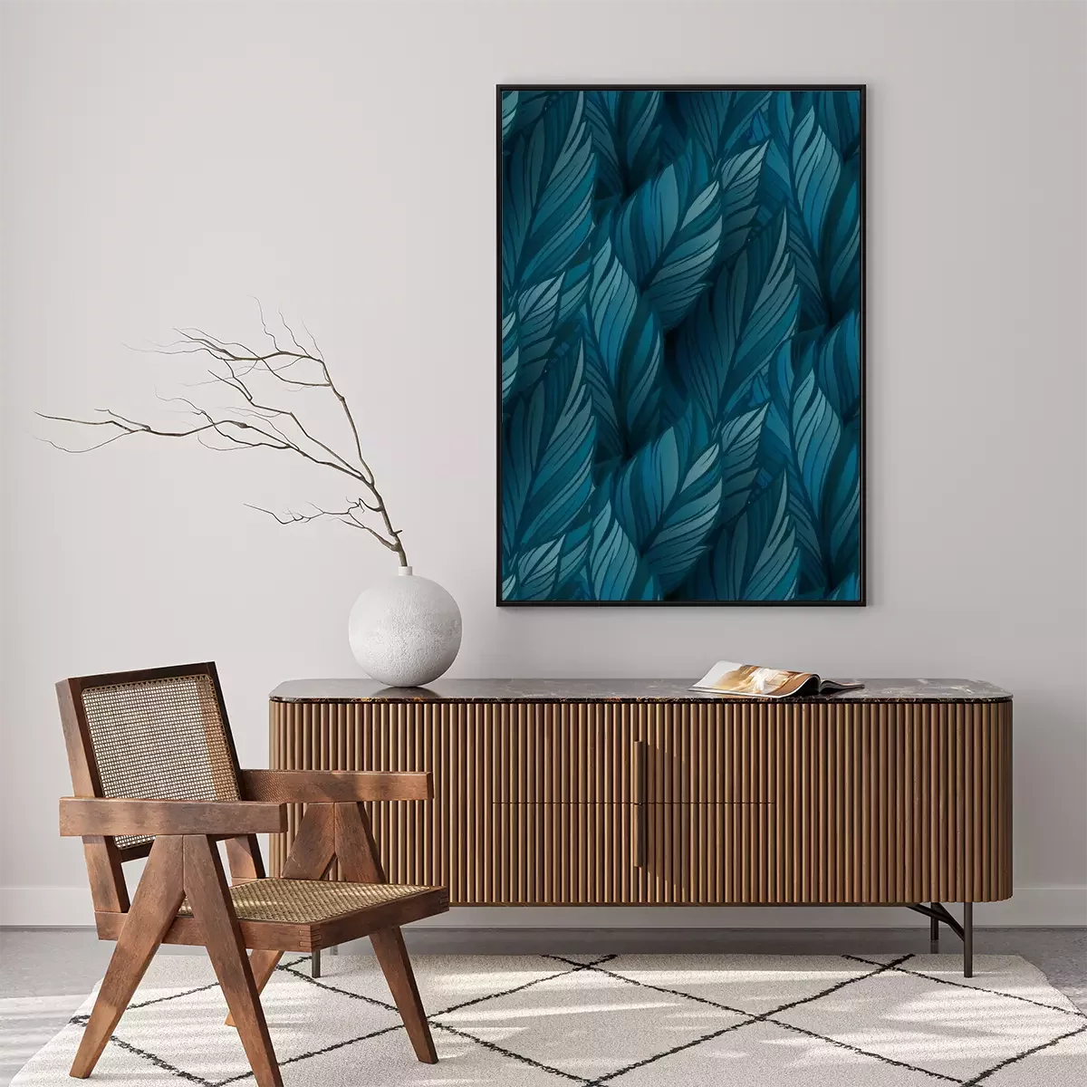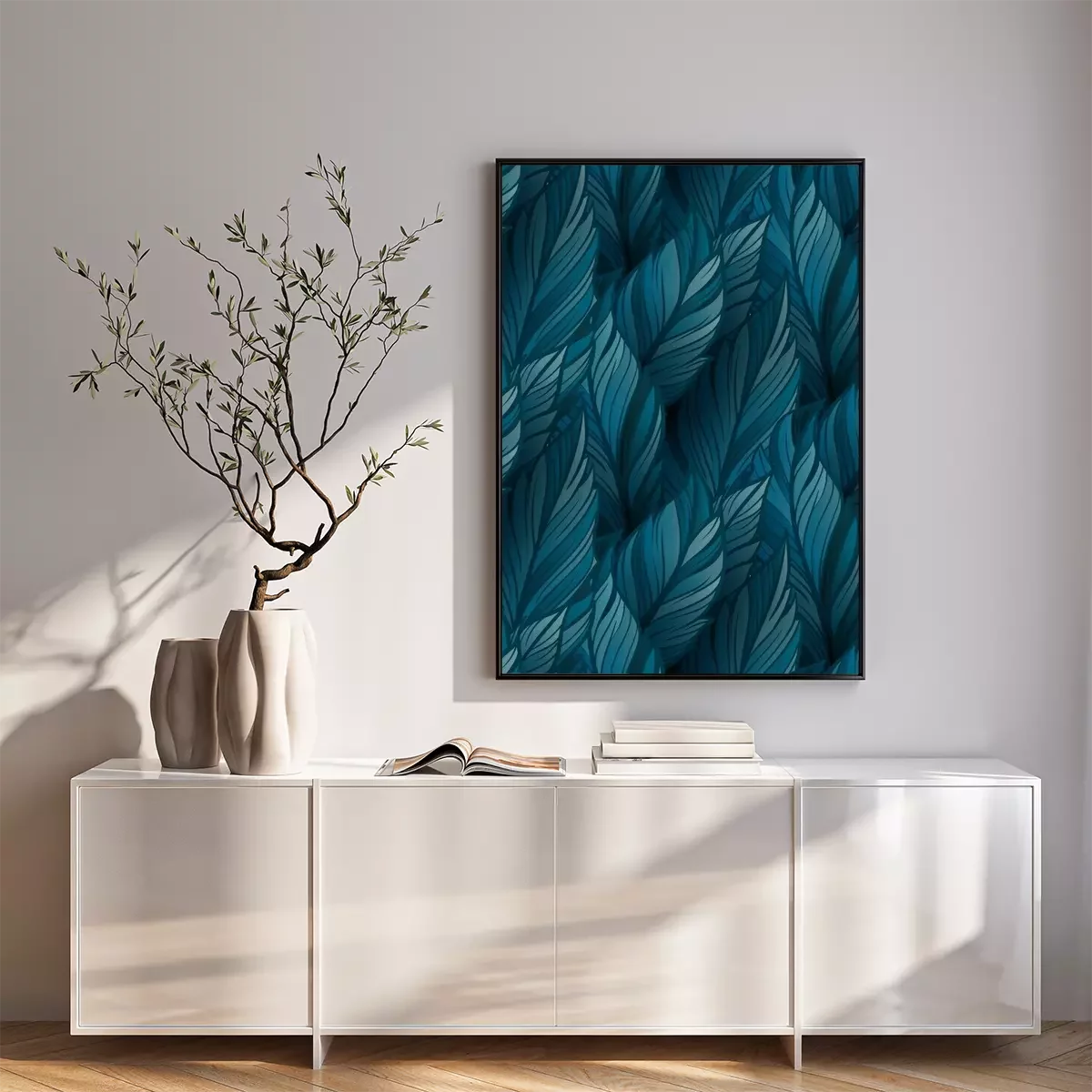 Poster: Blauwe bladeren die een uniforme achtergrond vormen
