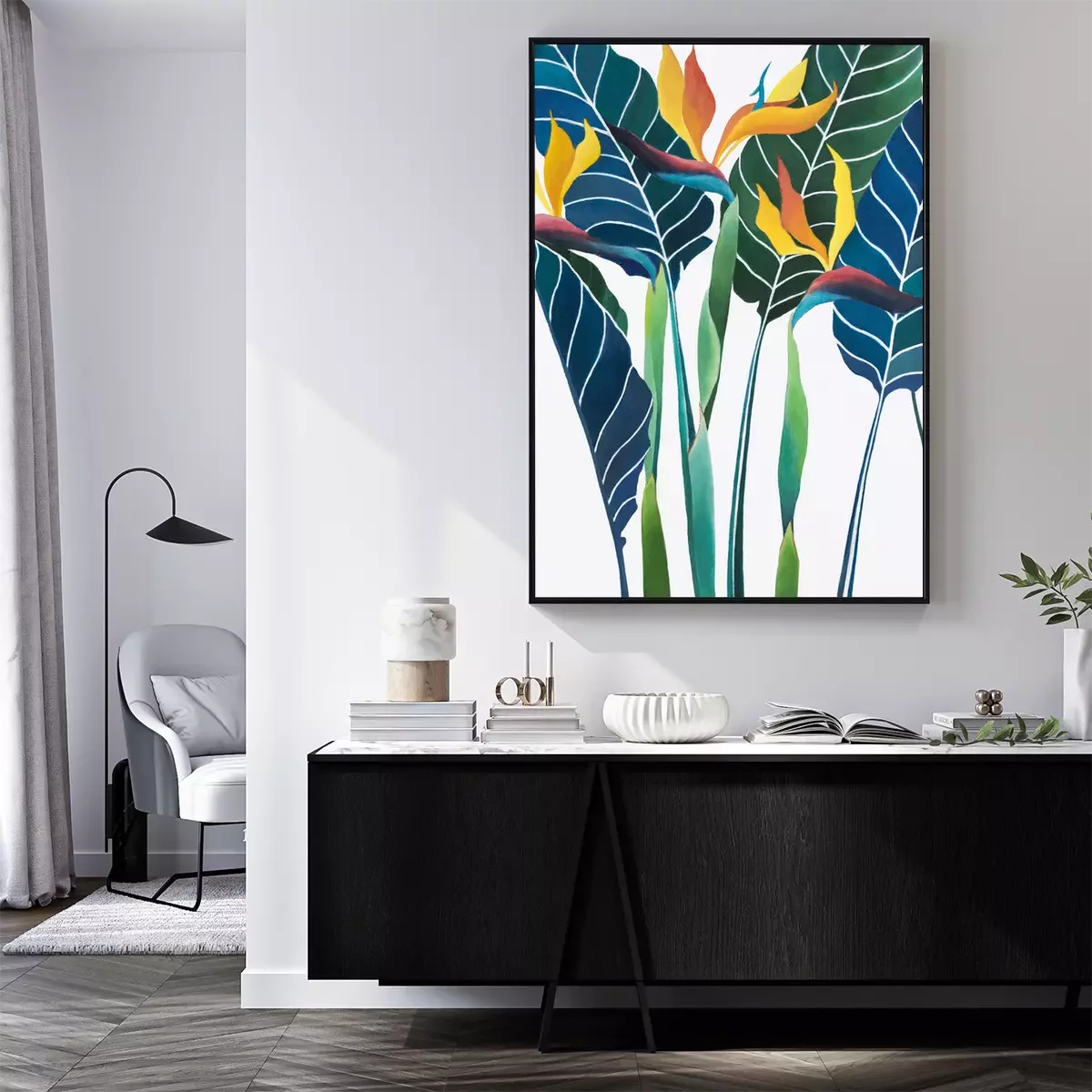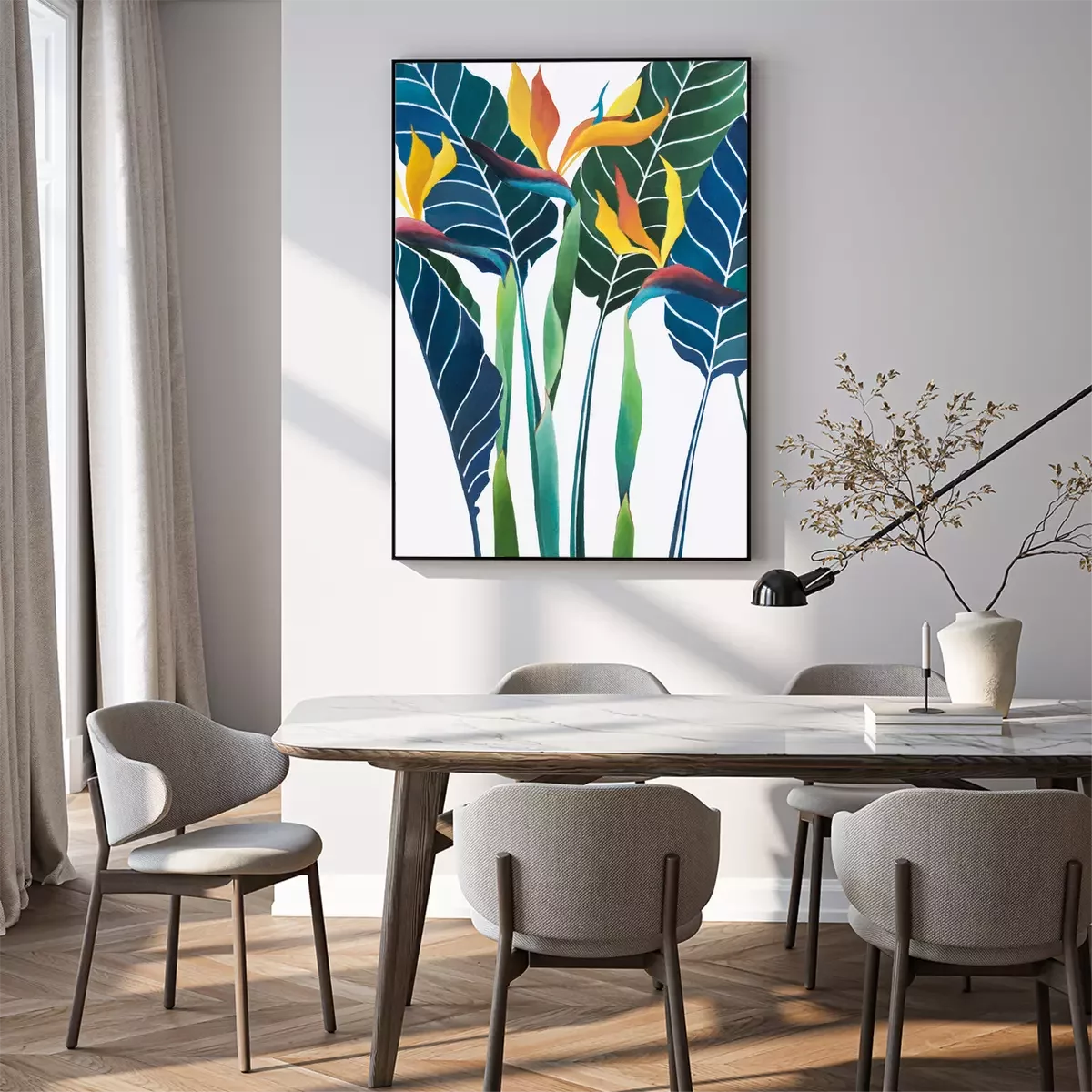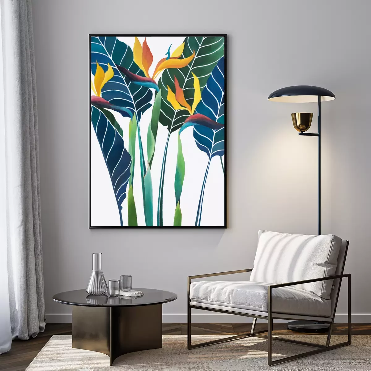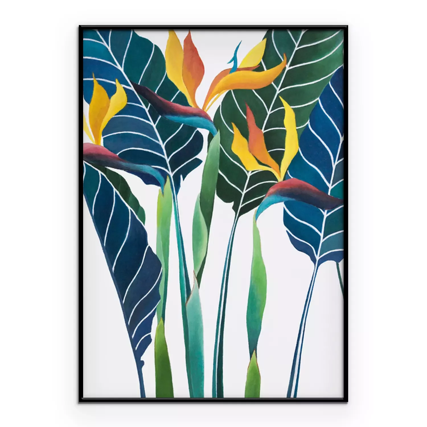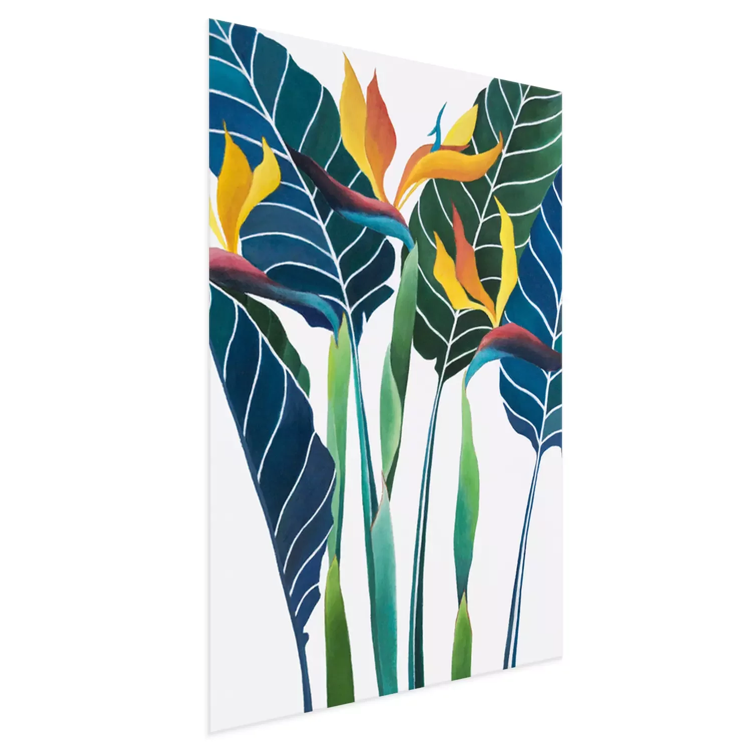 Poster: Blauwe bladeren en paradijsvogels