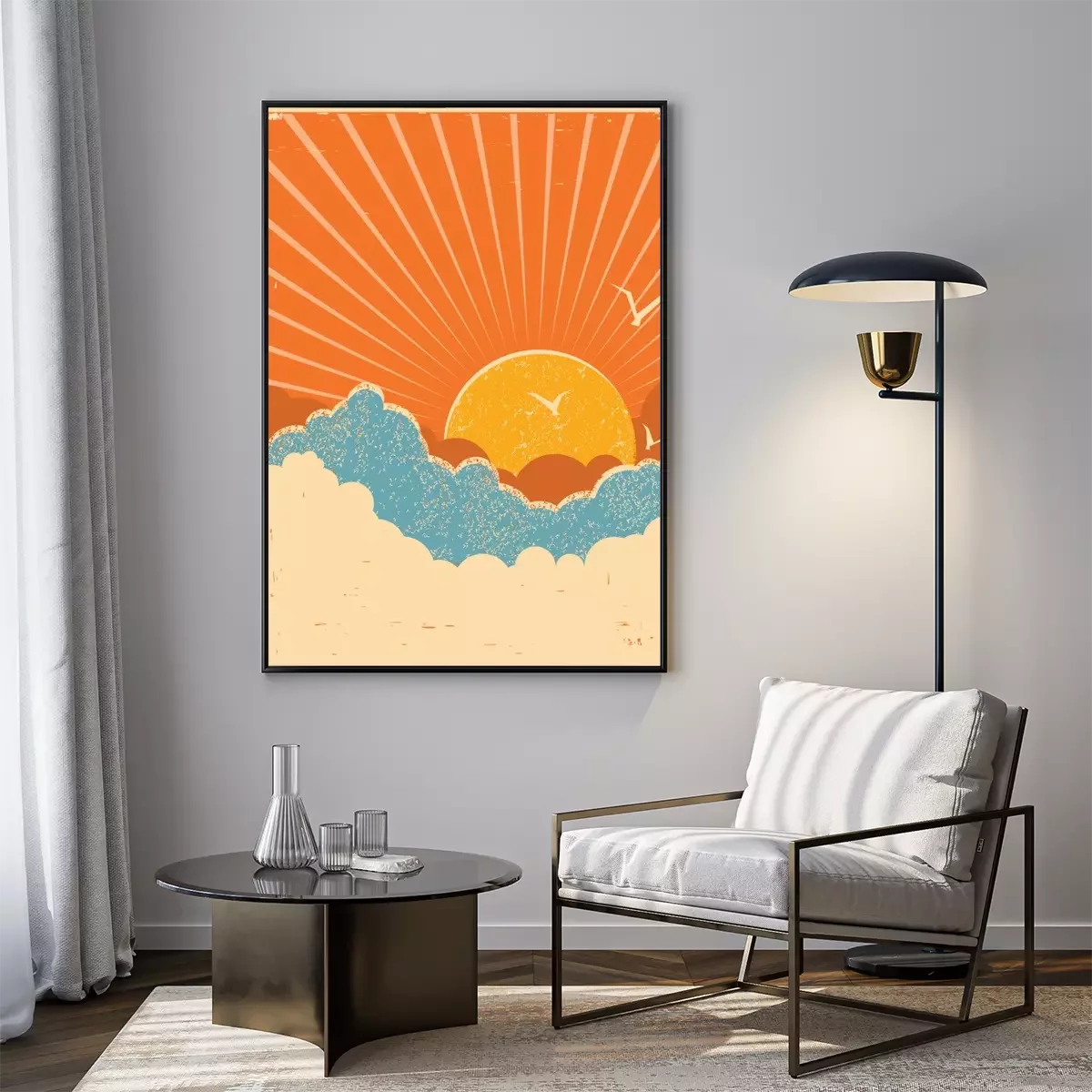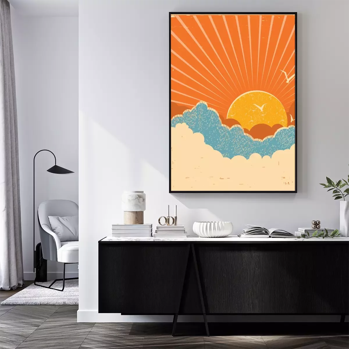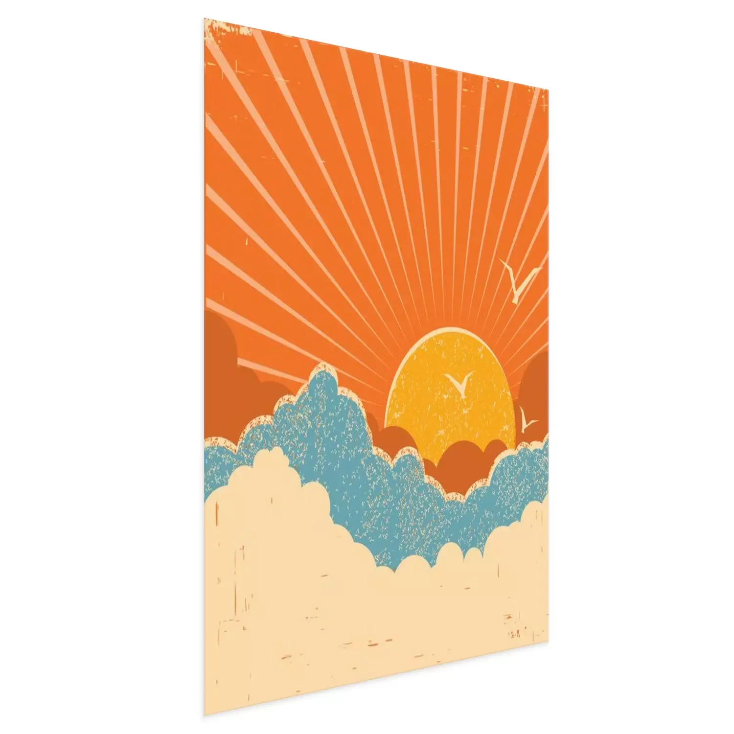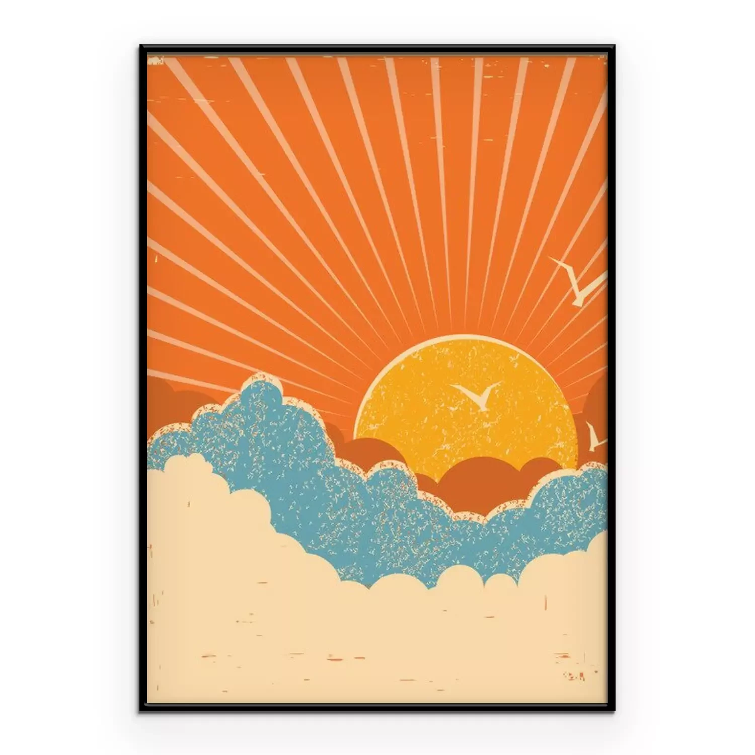 Poster Blauwe hemel met prachtige clouds.Vector retro poster