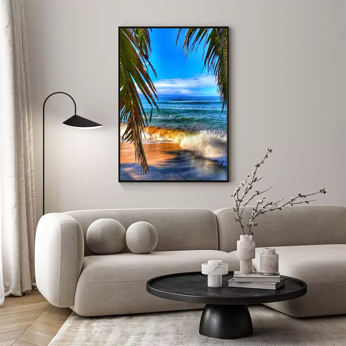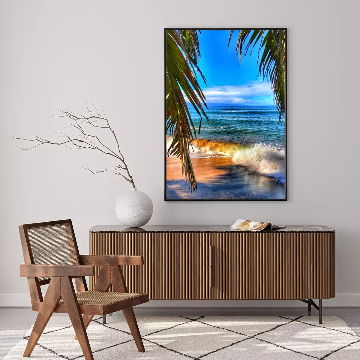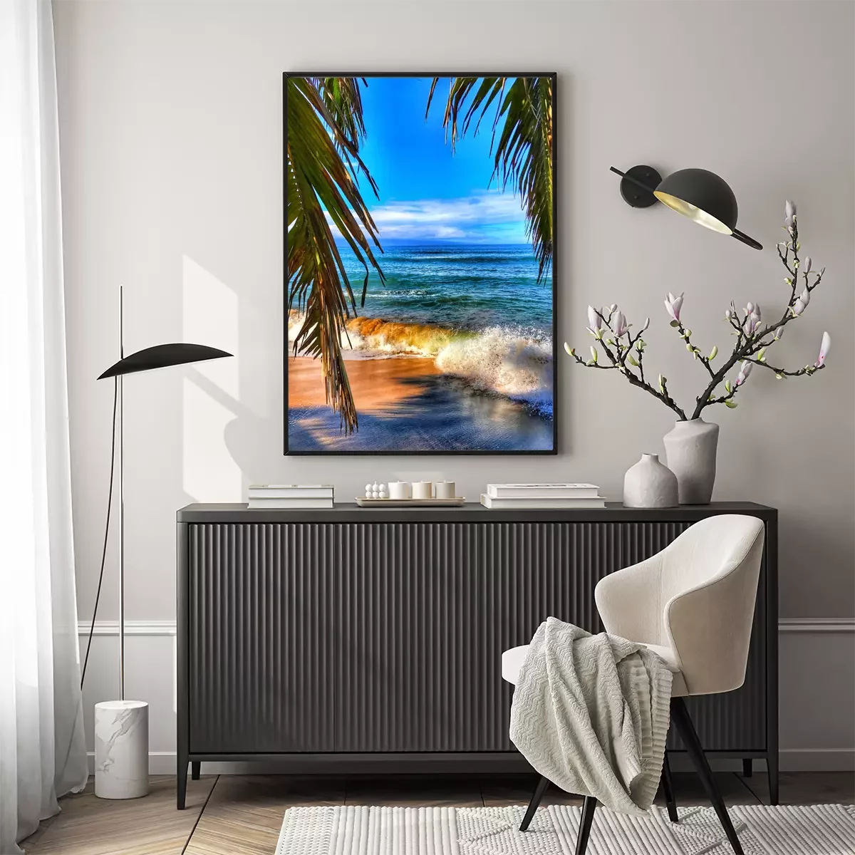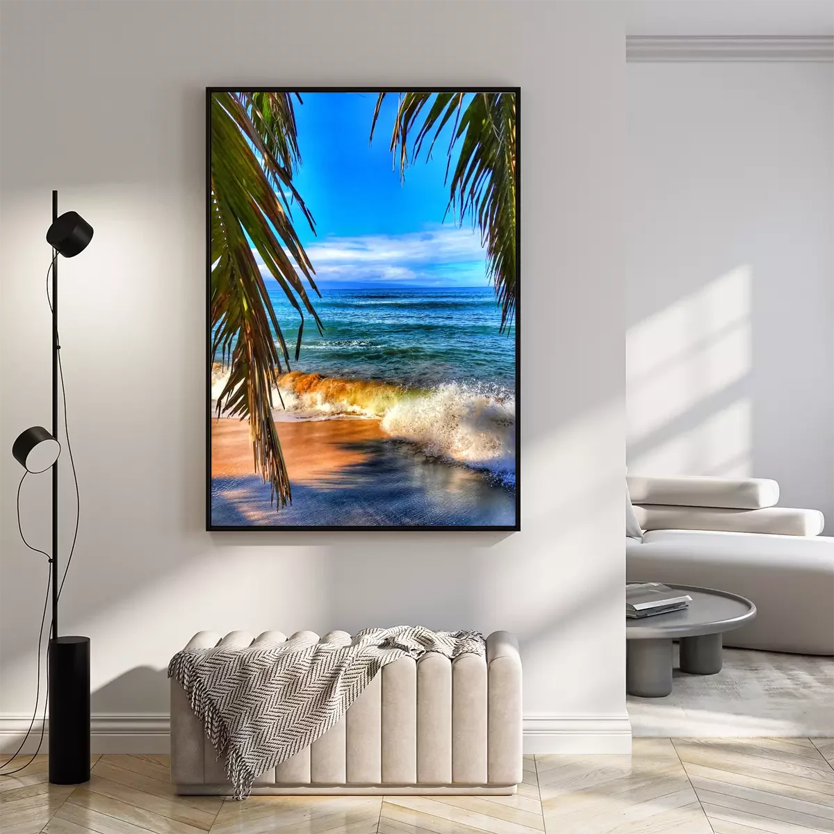 Poster: Blauwe lucht en strand