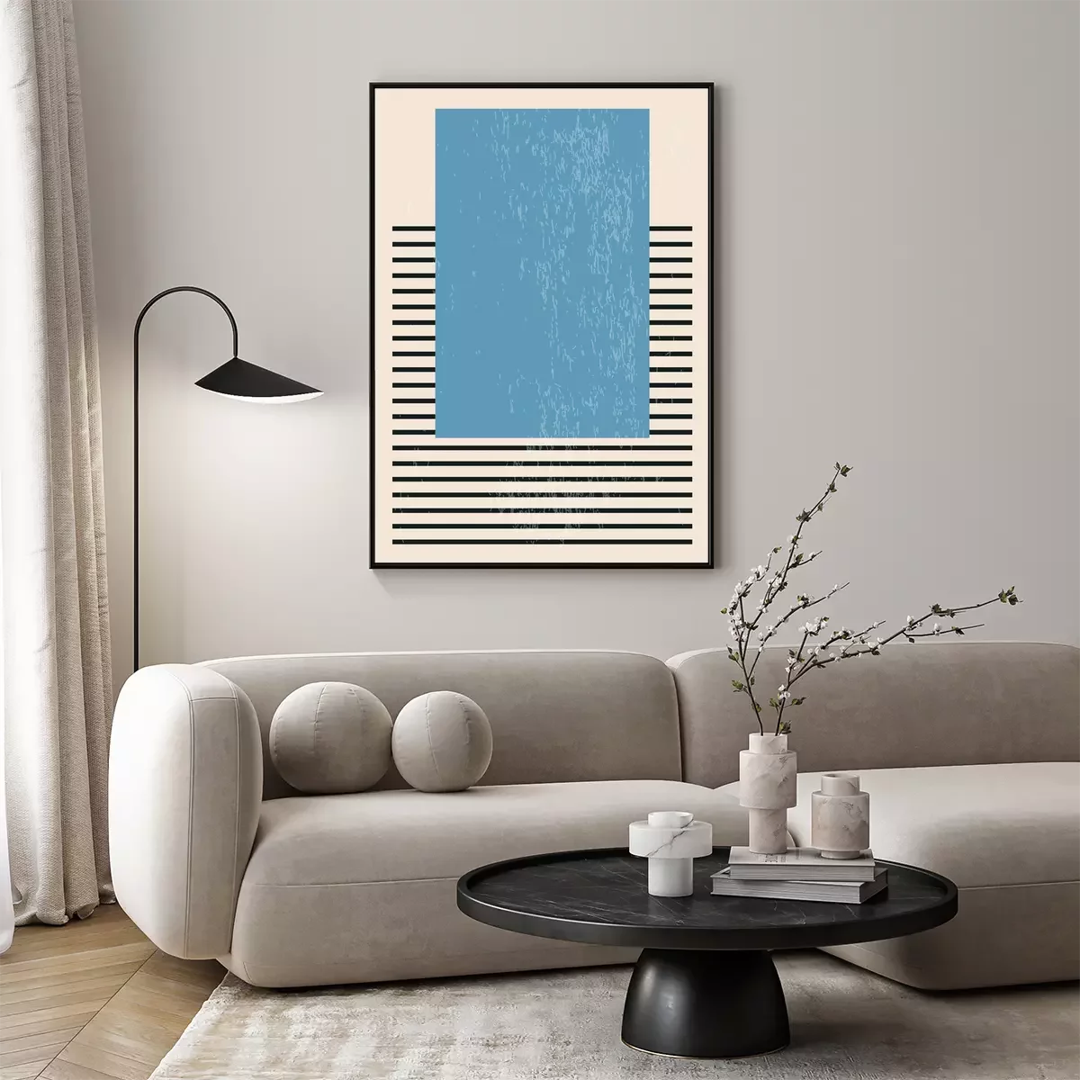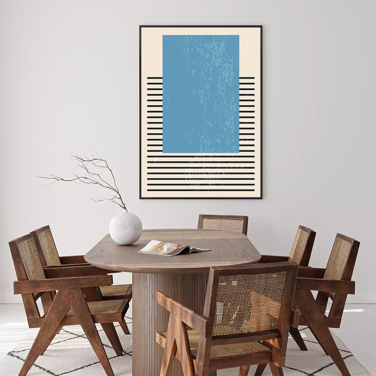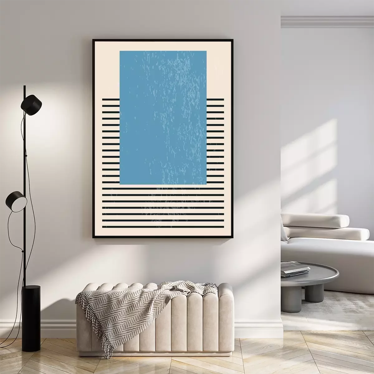 Poster: Blauwe rechthoek op strepen