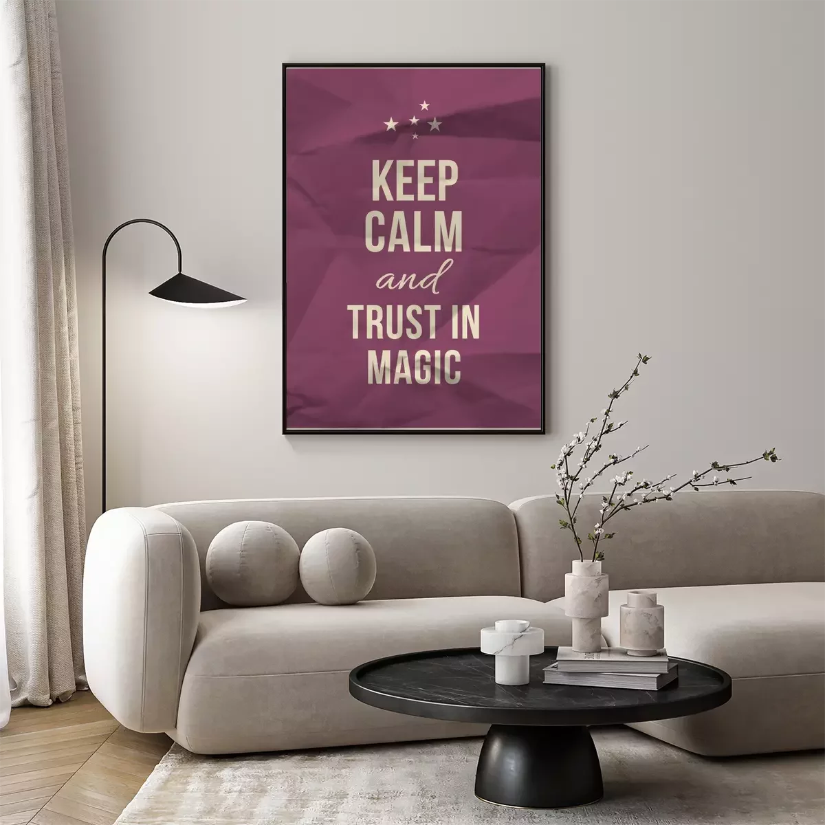 Blijf kalm en gebruik zwarte magie citaat op verfrommeld papier textuur