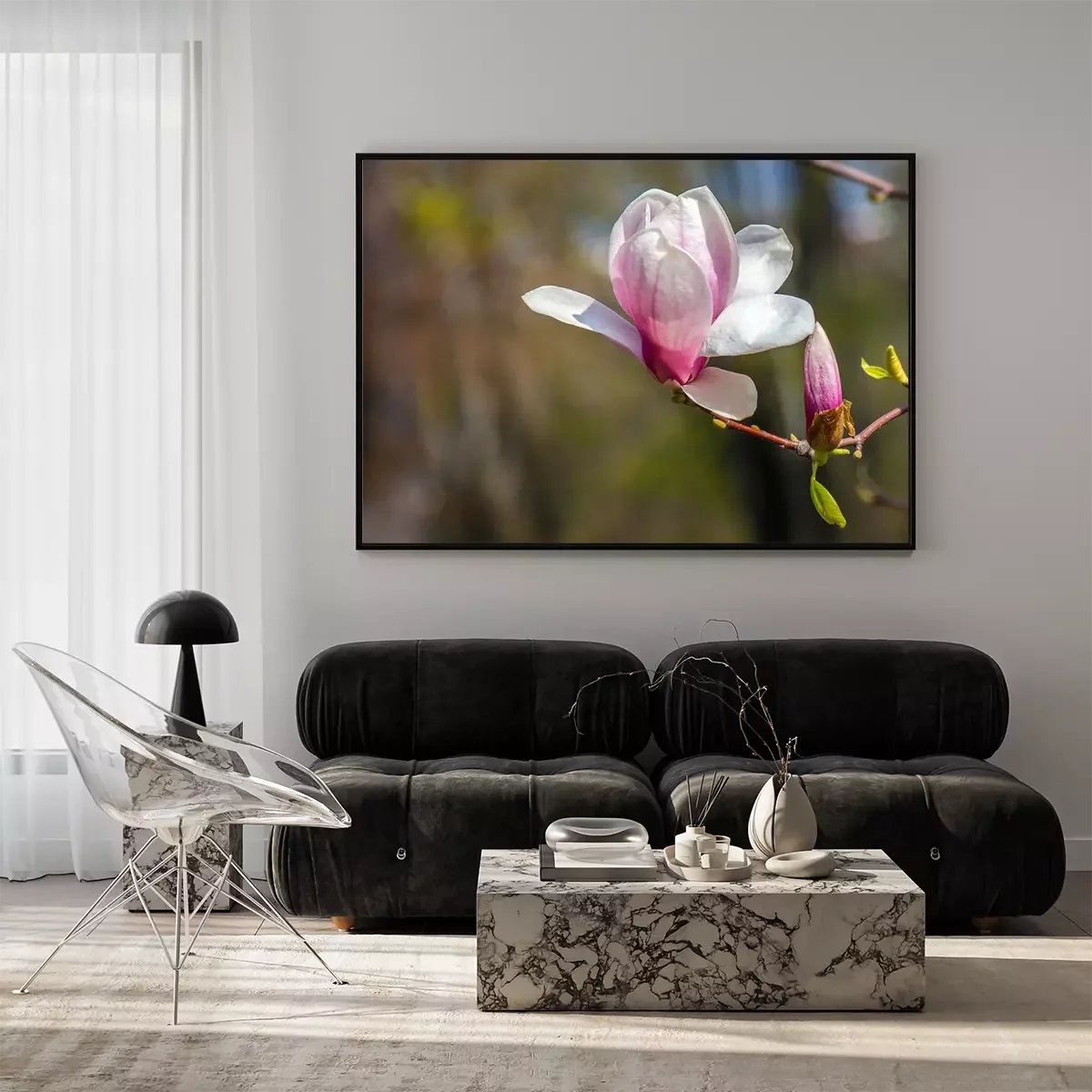 Poster Bloeiende bloemen op lentetakken