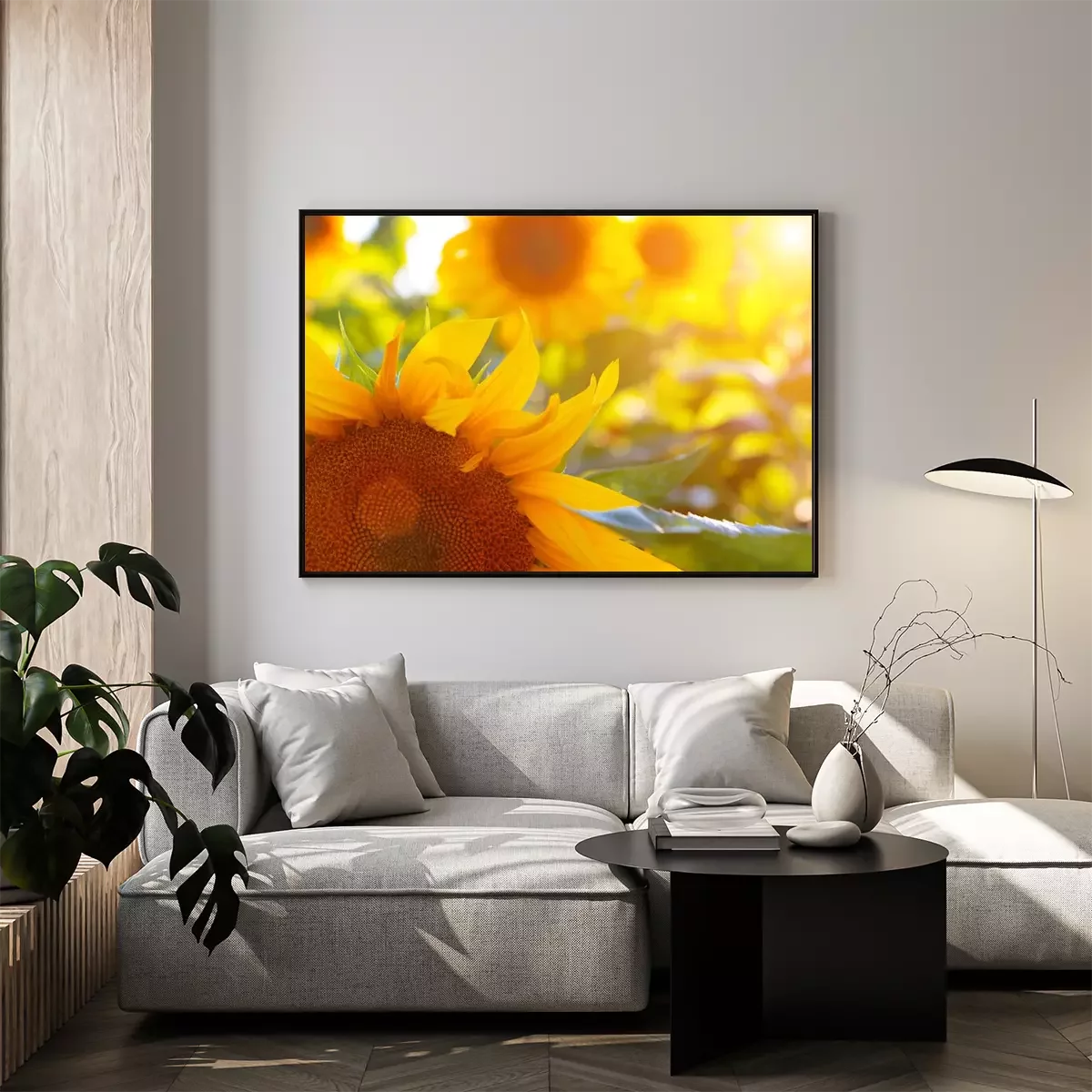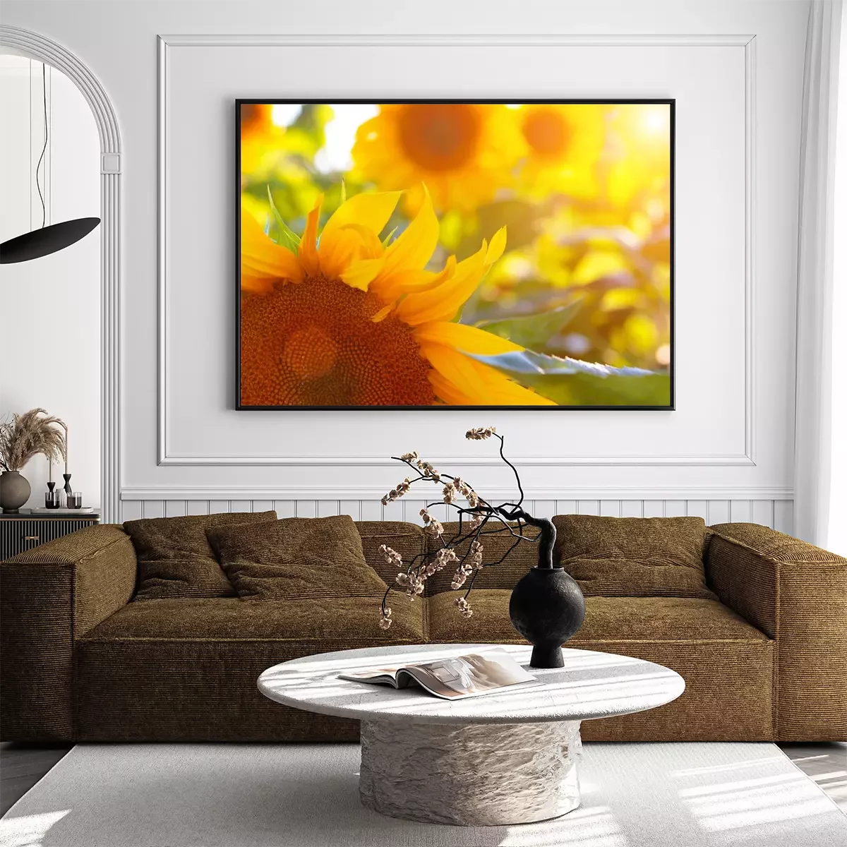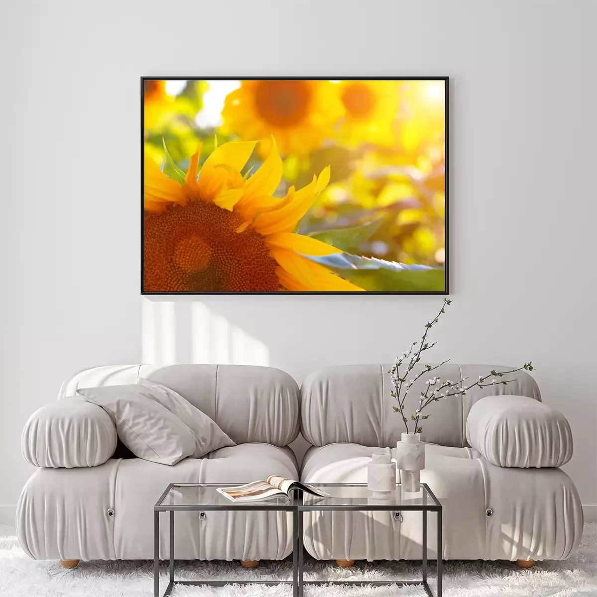 Poster Bloemen in de zon op de voorgrond en achtergrond