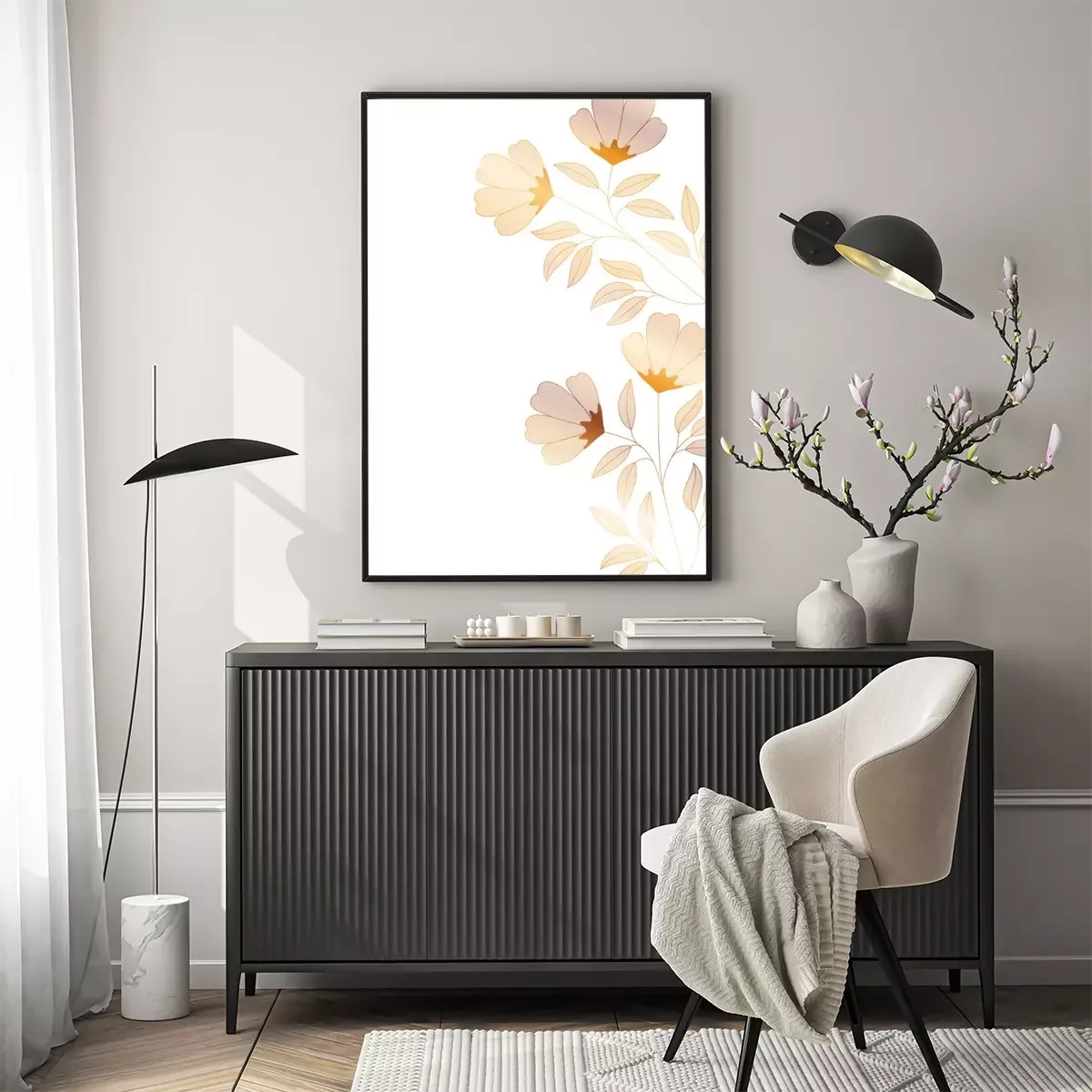 Poster: bloemen met takken en bladeren geïsoleerde pictogram