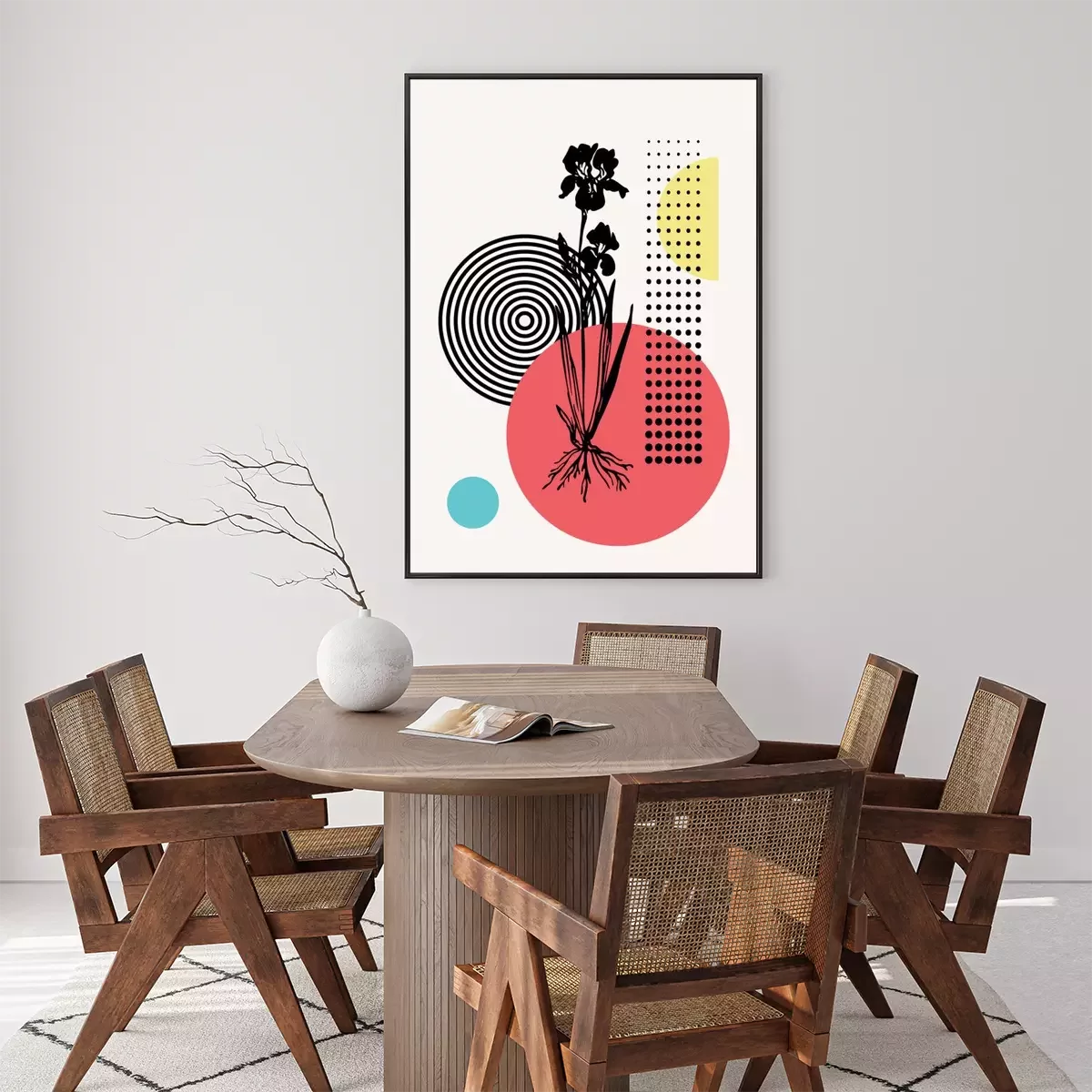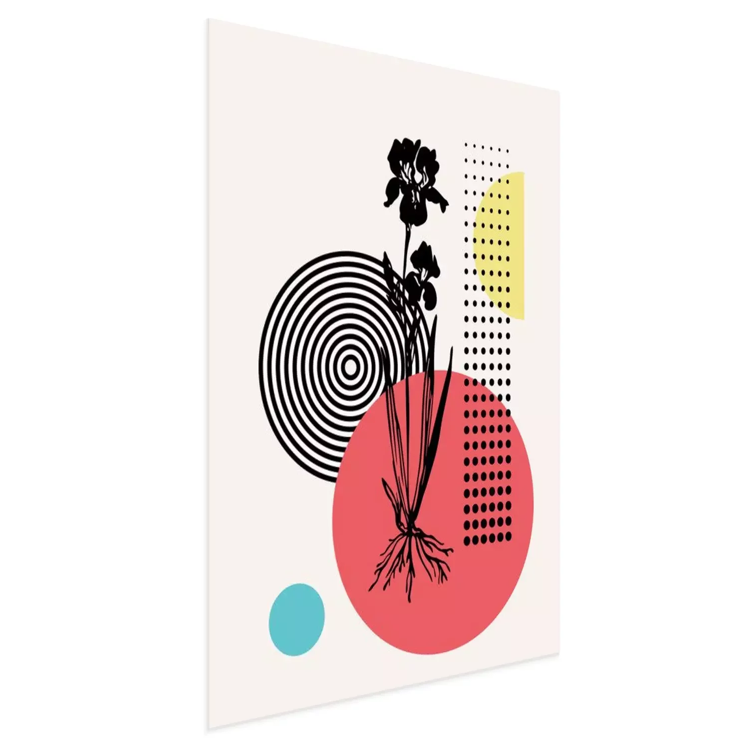 Poster Bloemen op een tak tegen een achtergrond van cirkelvormige patronen