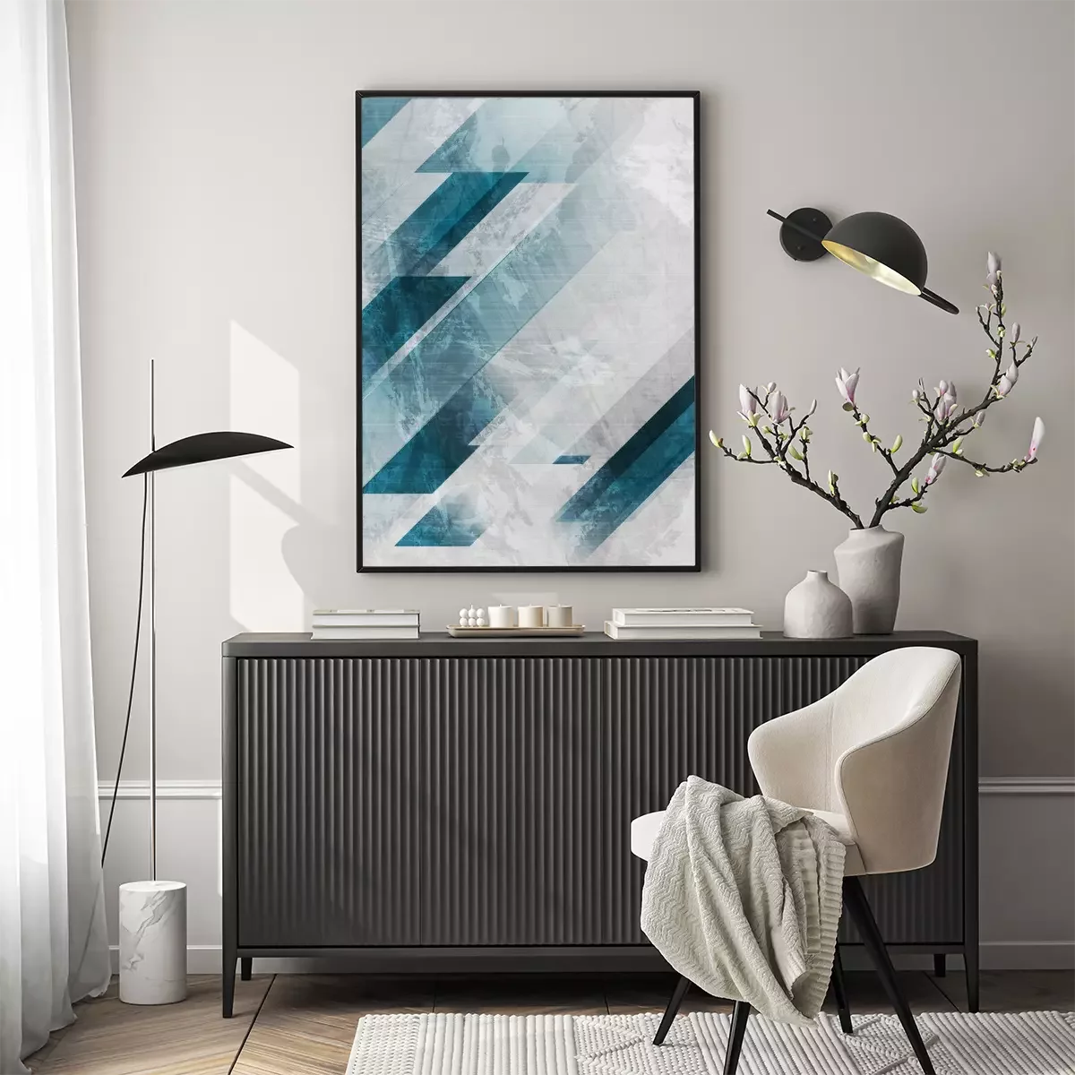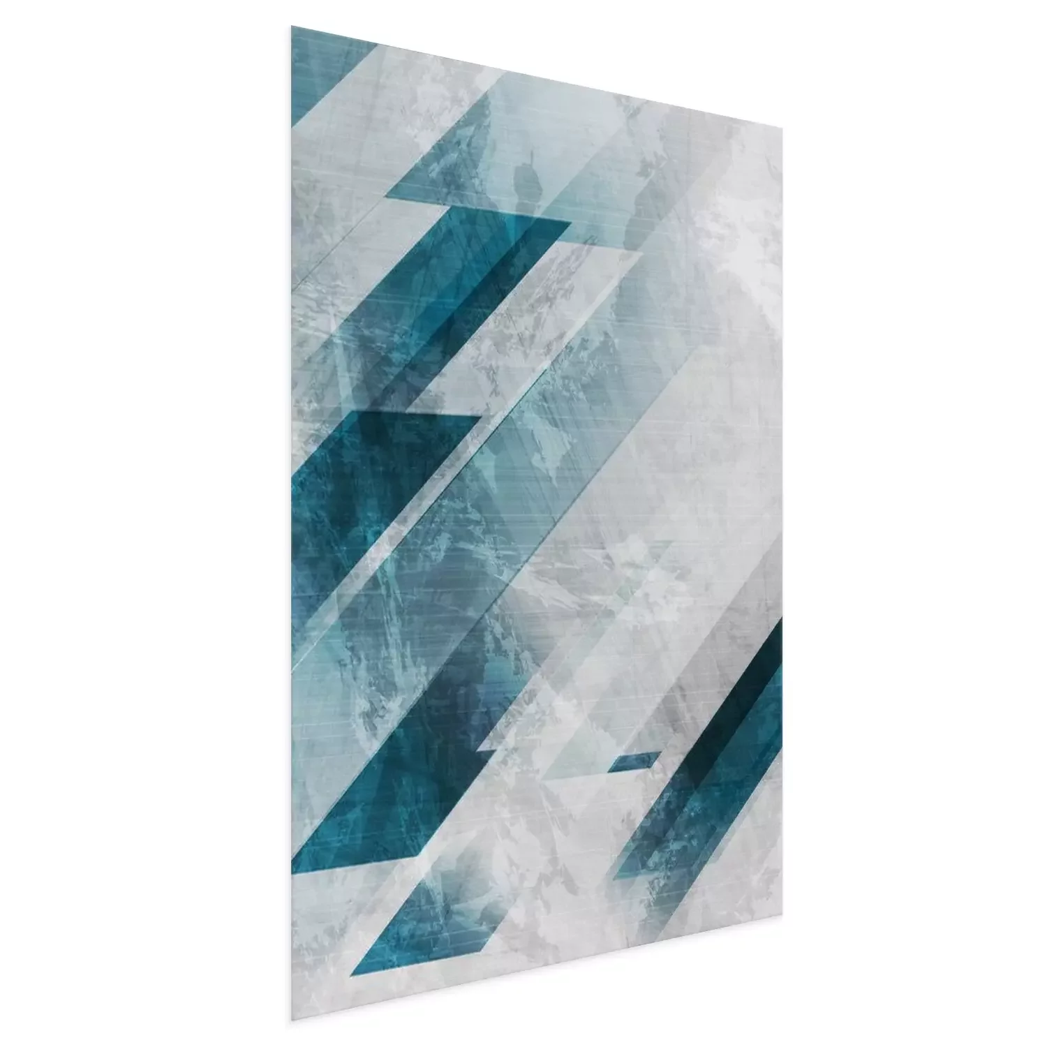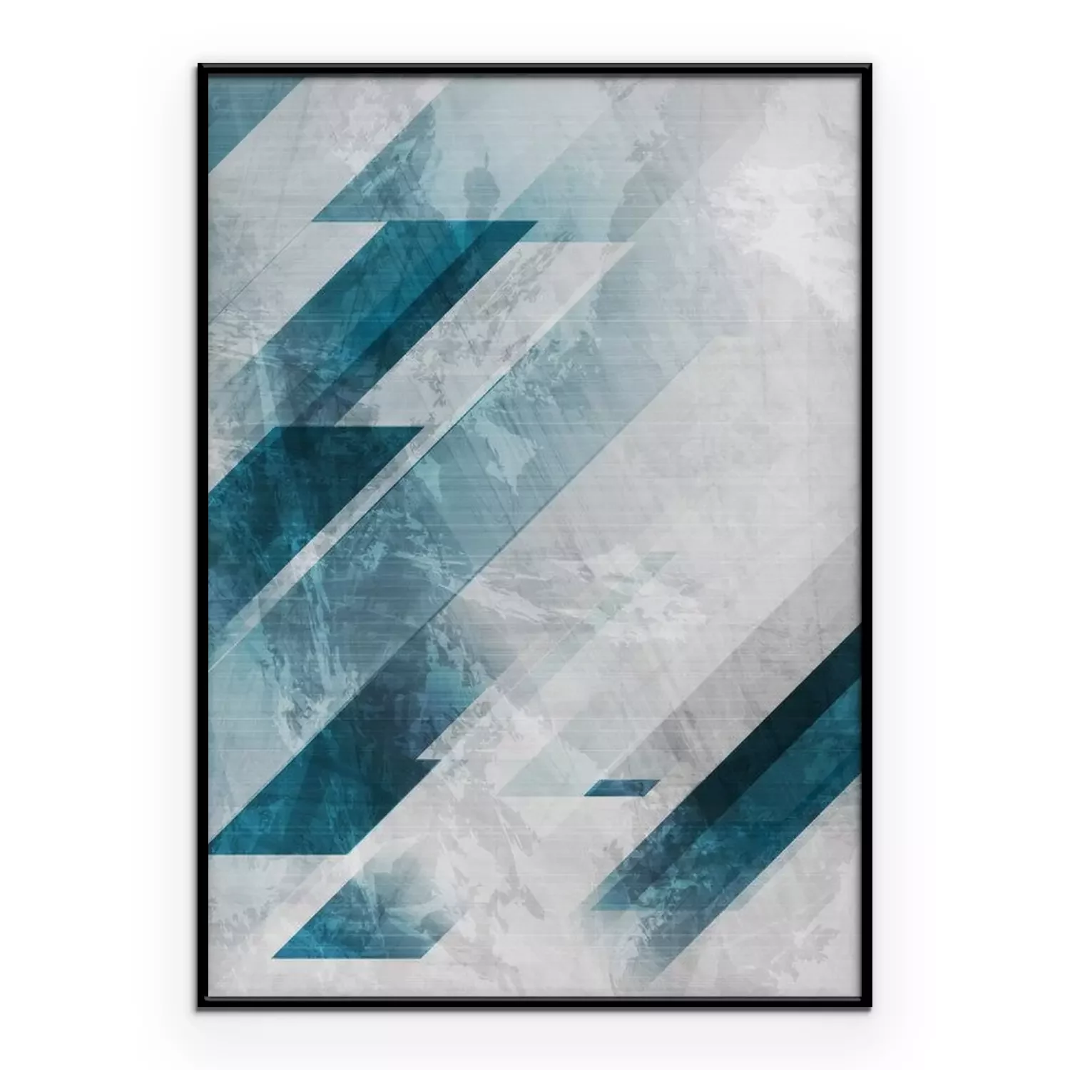 Poster: Blue and grey grunge stripes abstract flyer design. Geometric tech background. Vector illustration