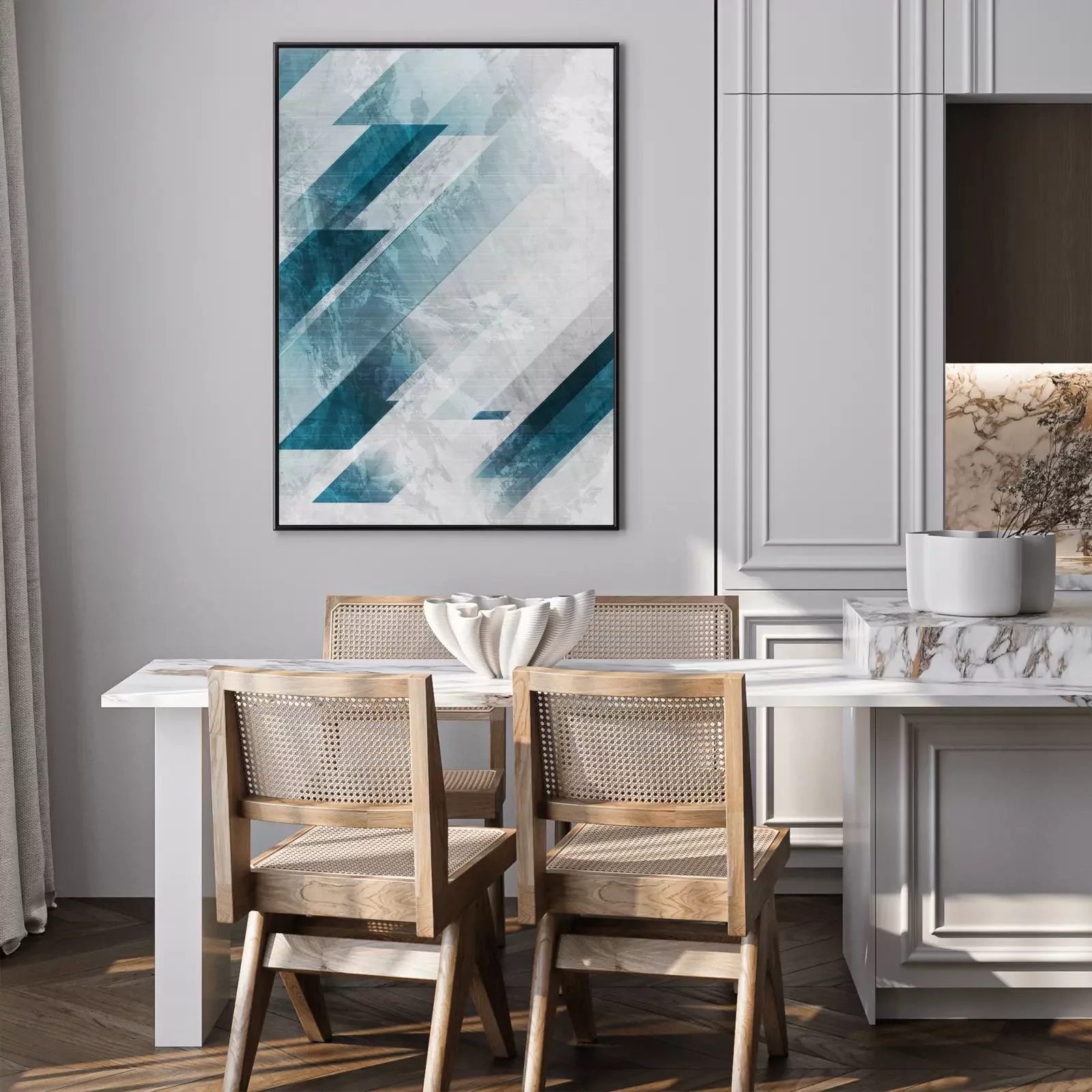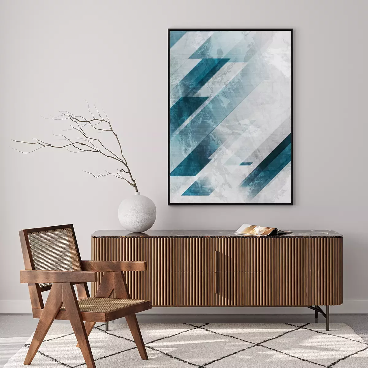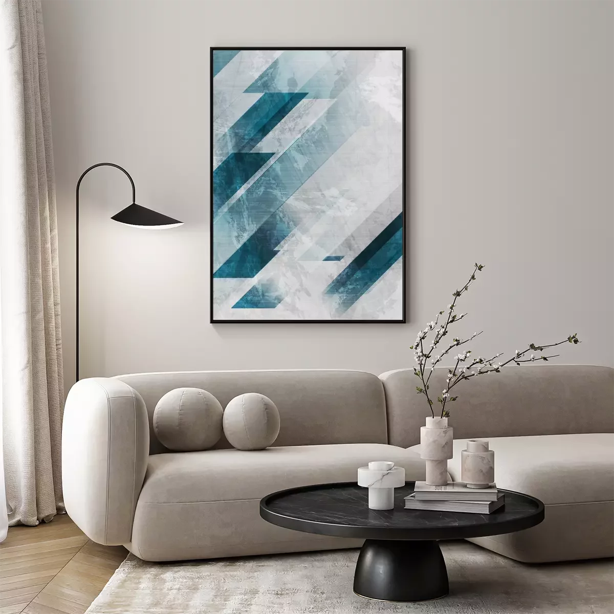 Poster: Blue and grey grunge stripes abstract flyer design. Geometric tech background. Vector illustration