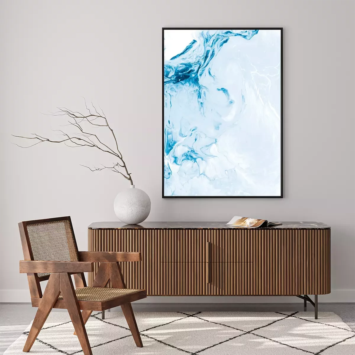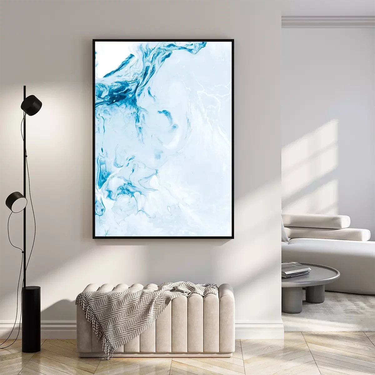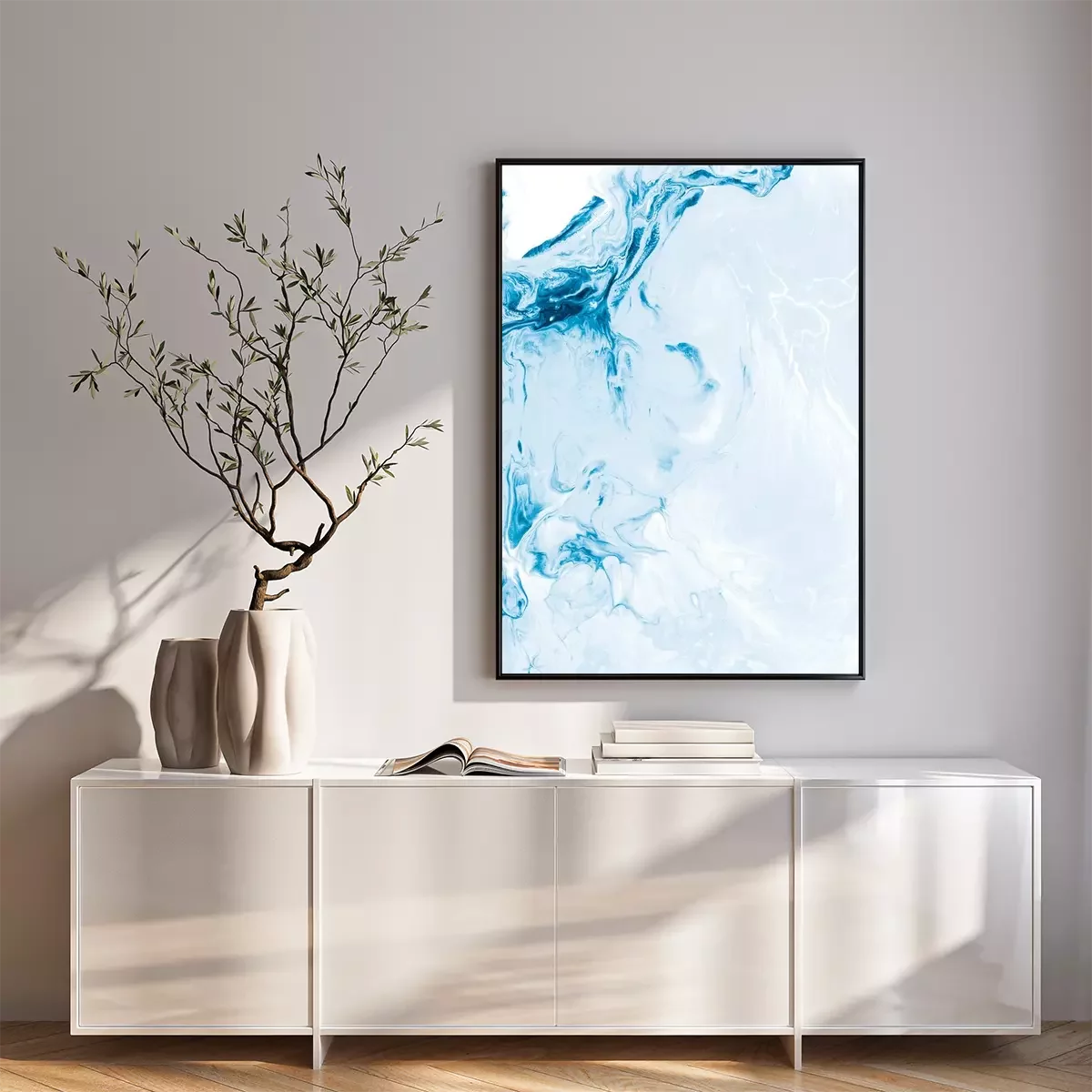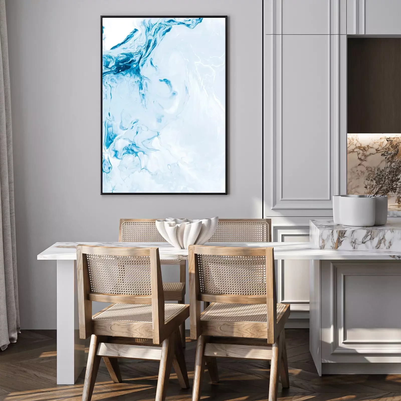 Poster: Blue creative abstract hand painted background, marble texture, abstract ocean