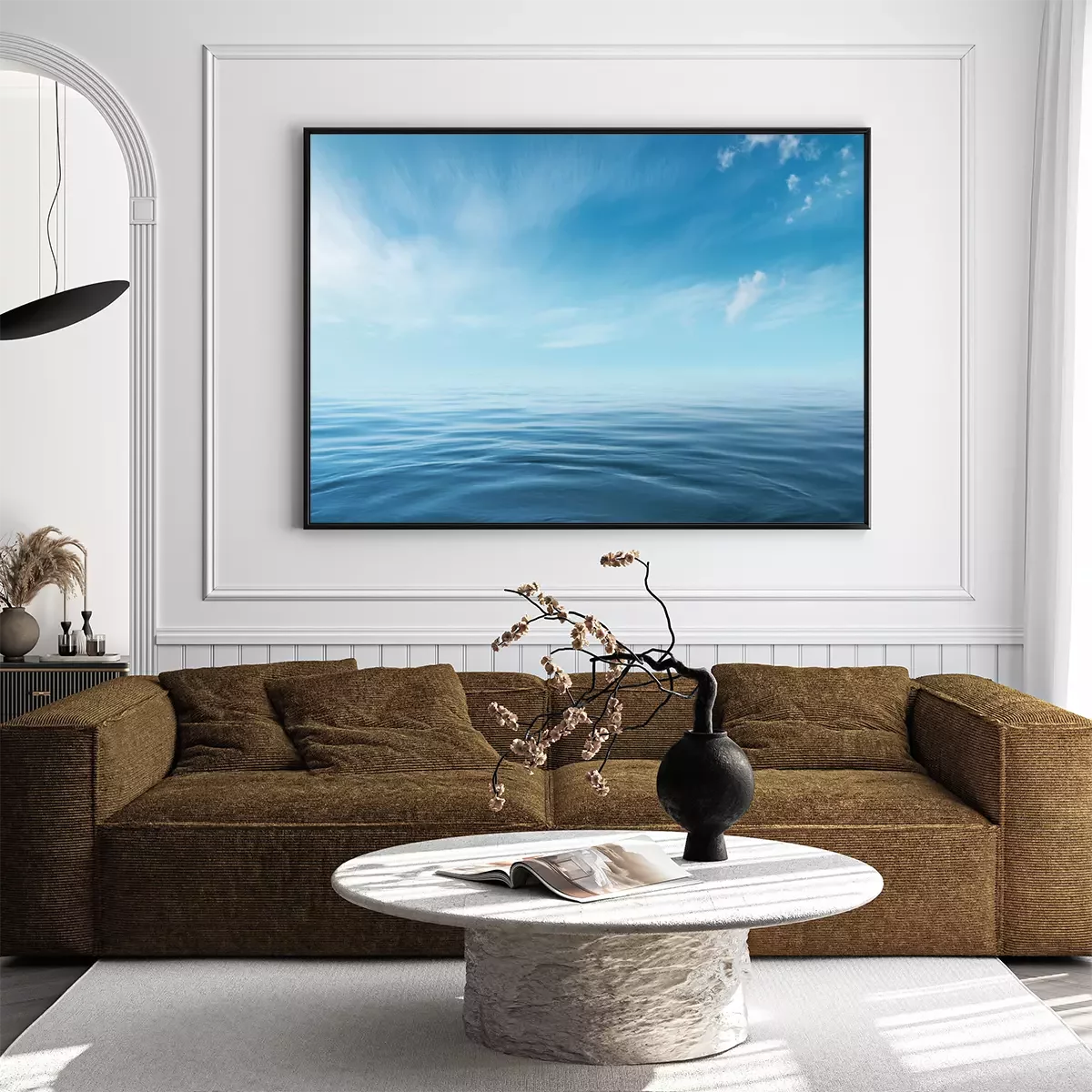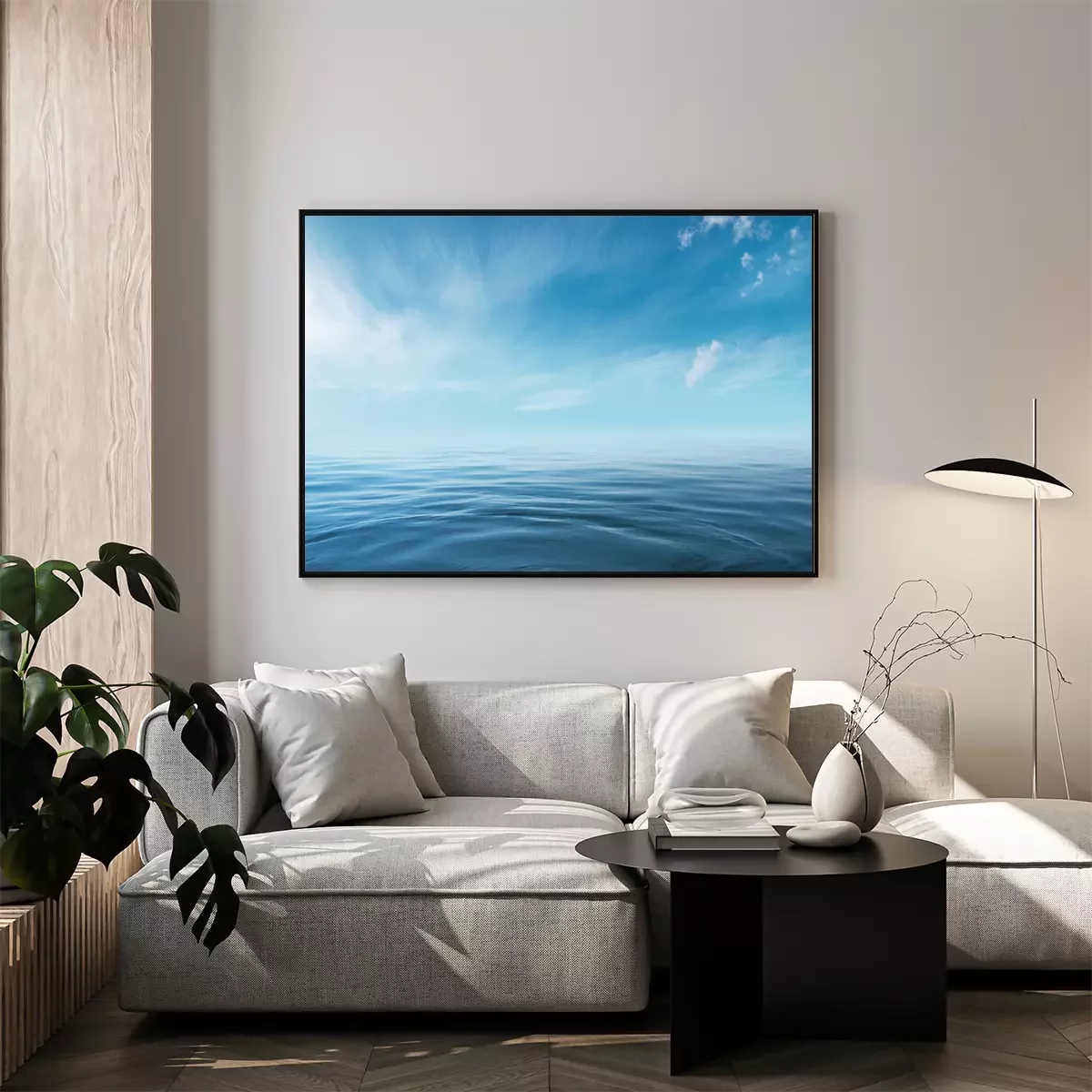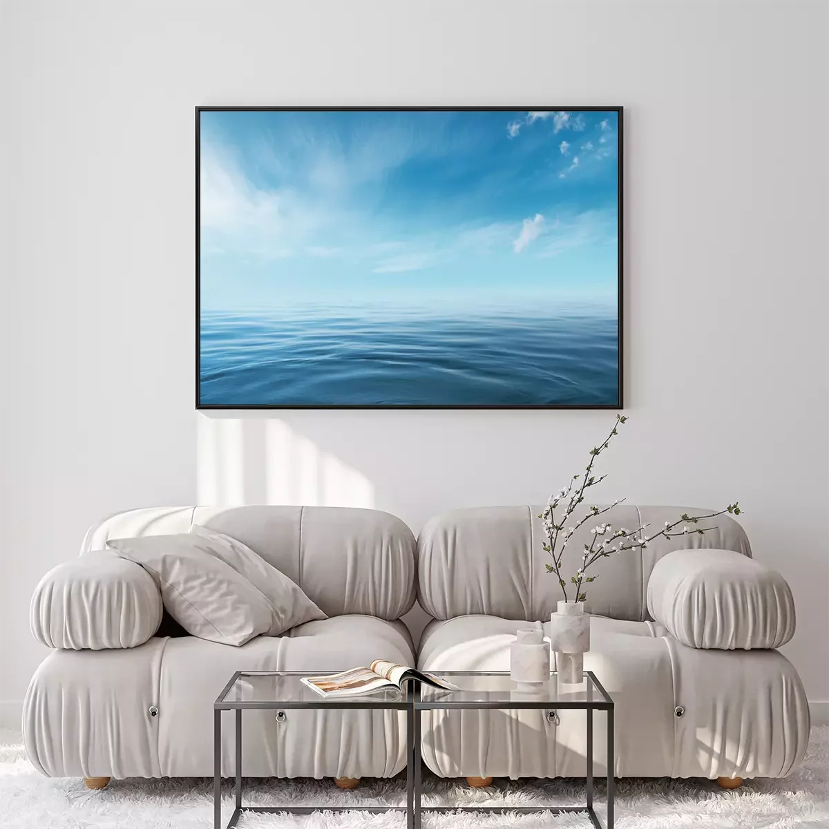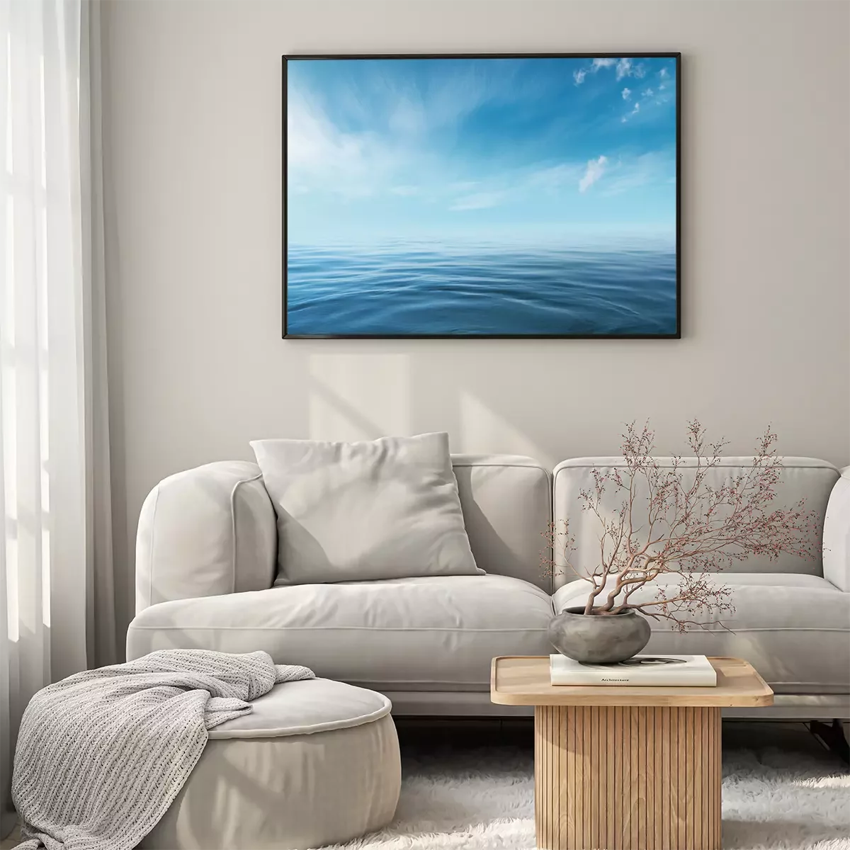 Poster: Blue sea or ocean with sunny and cloudy sky