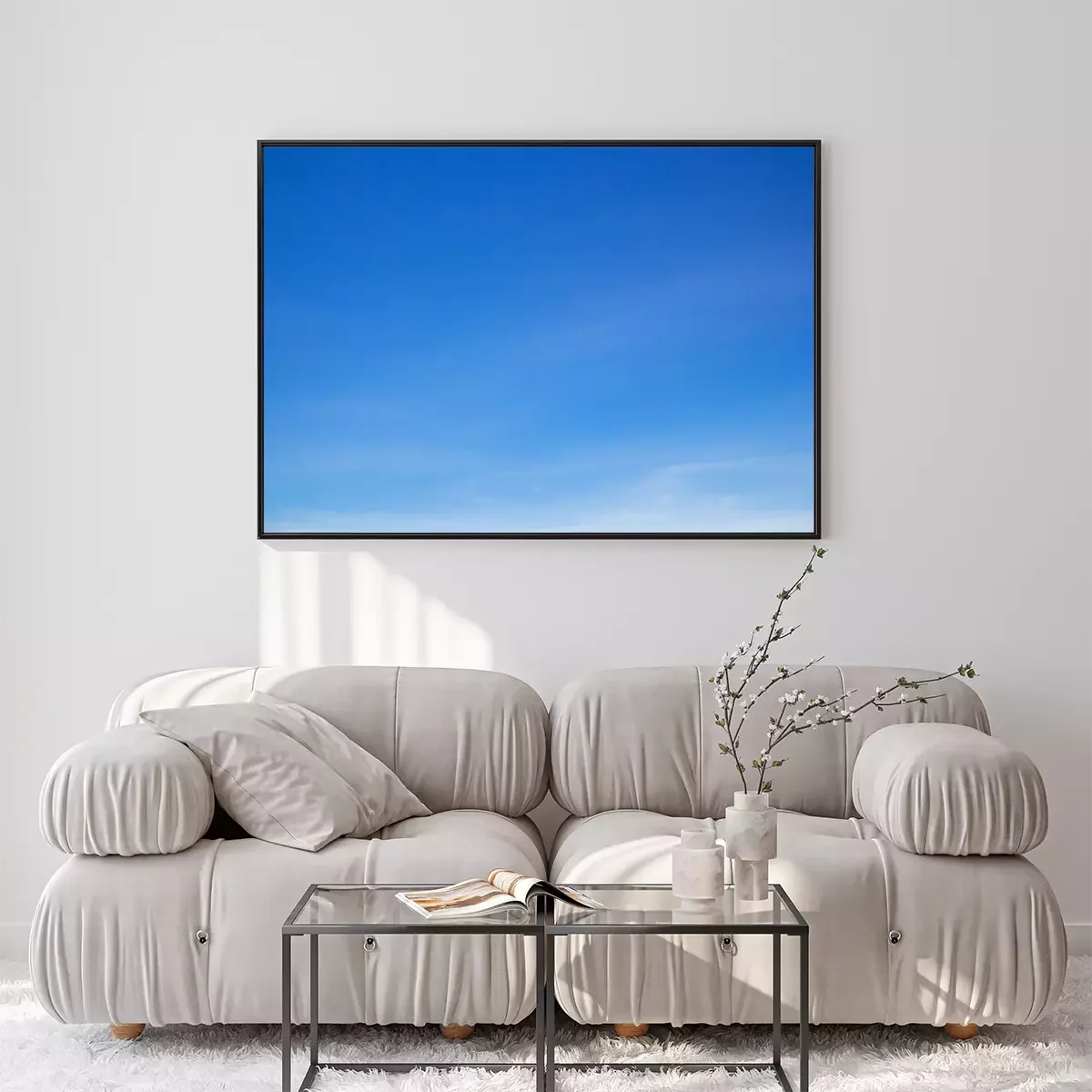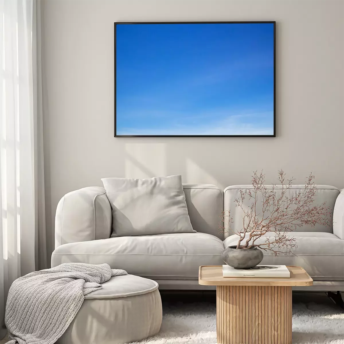 Poster: Blue sky background and white clouds soft focus, and copy space