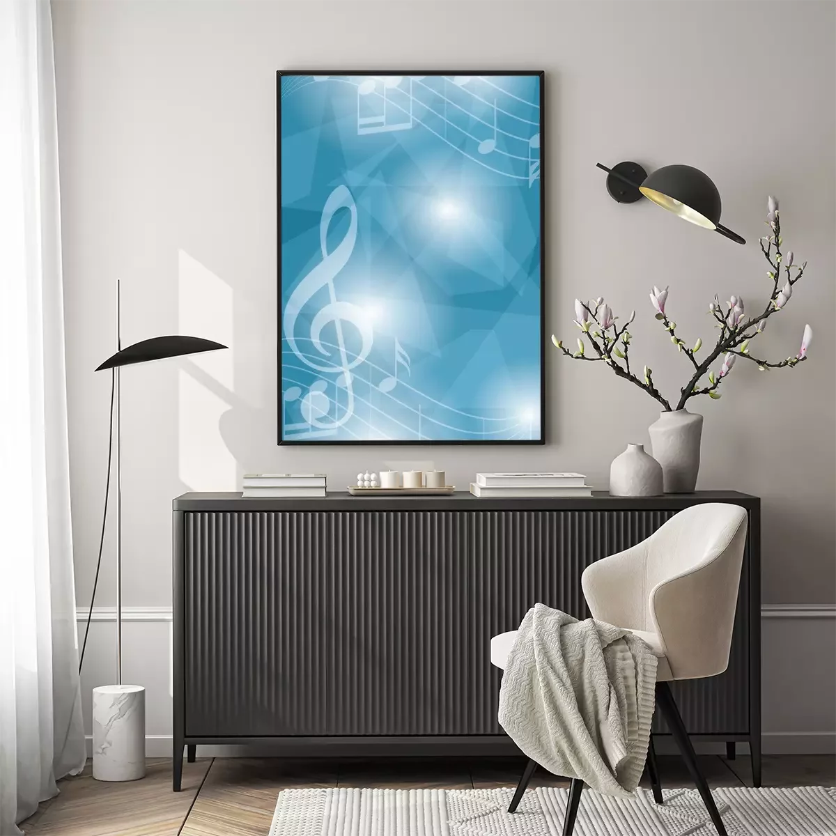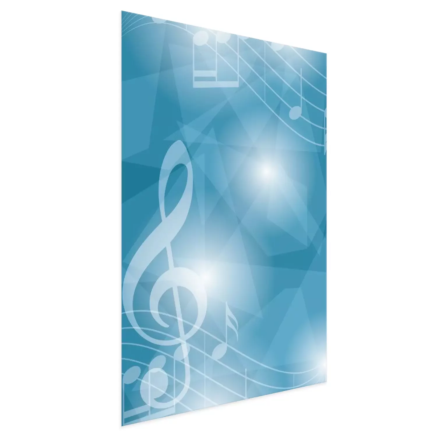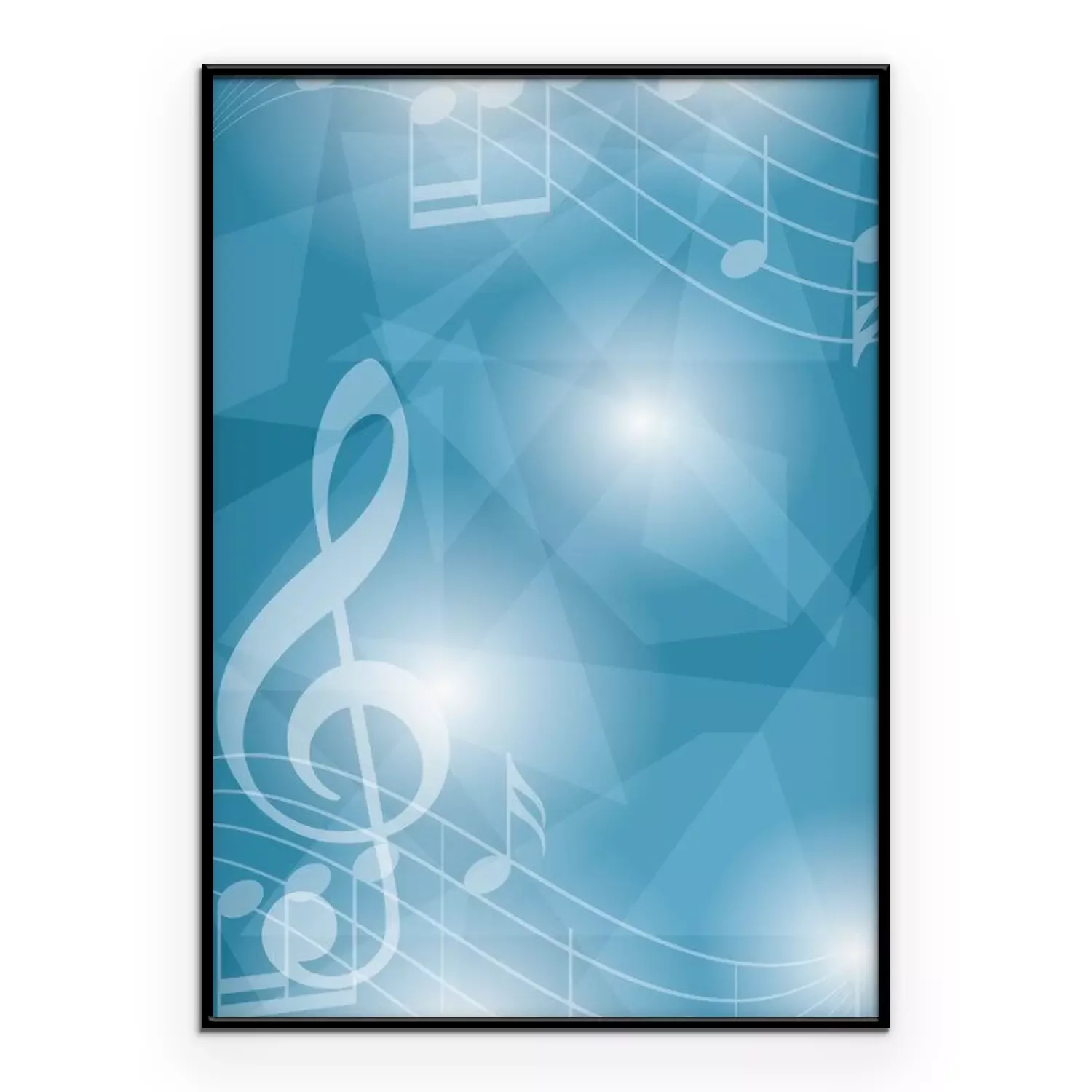 Poster blue vector flyer with music notes and geometric shapes - abstract background