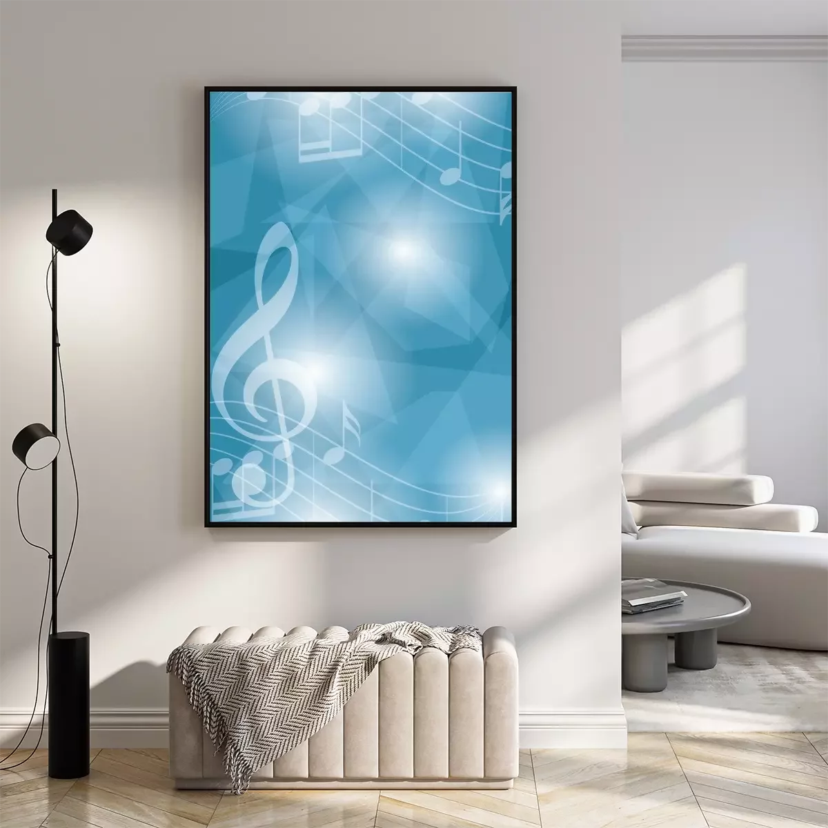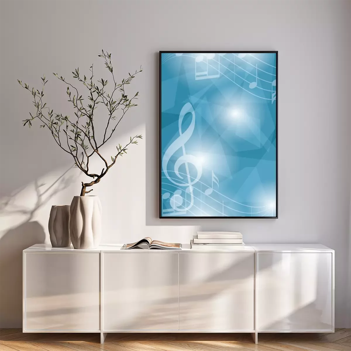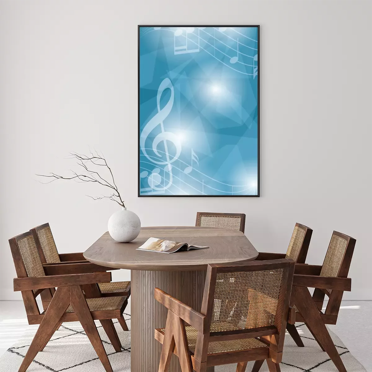 Poster blue vector flyer with music notes and geometric shapes - abstract background