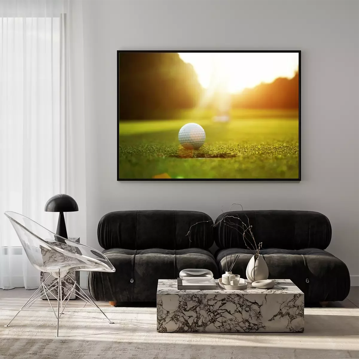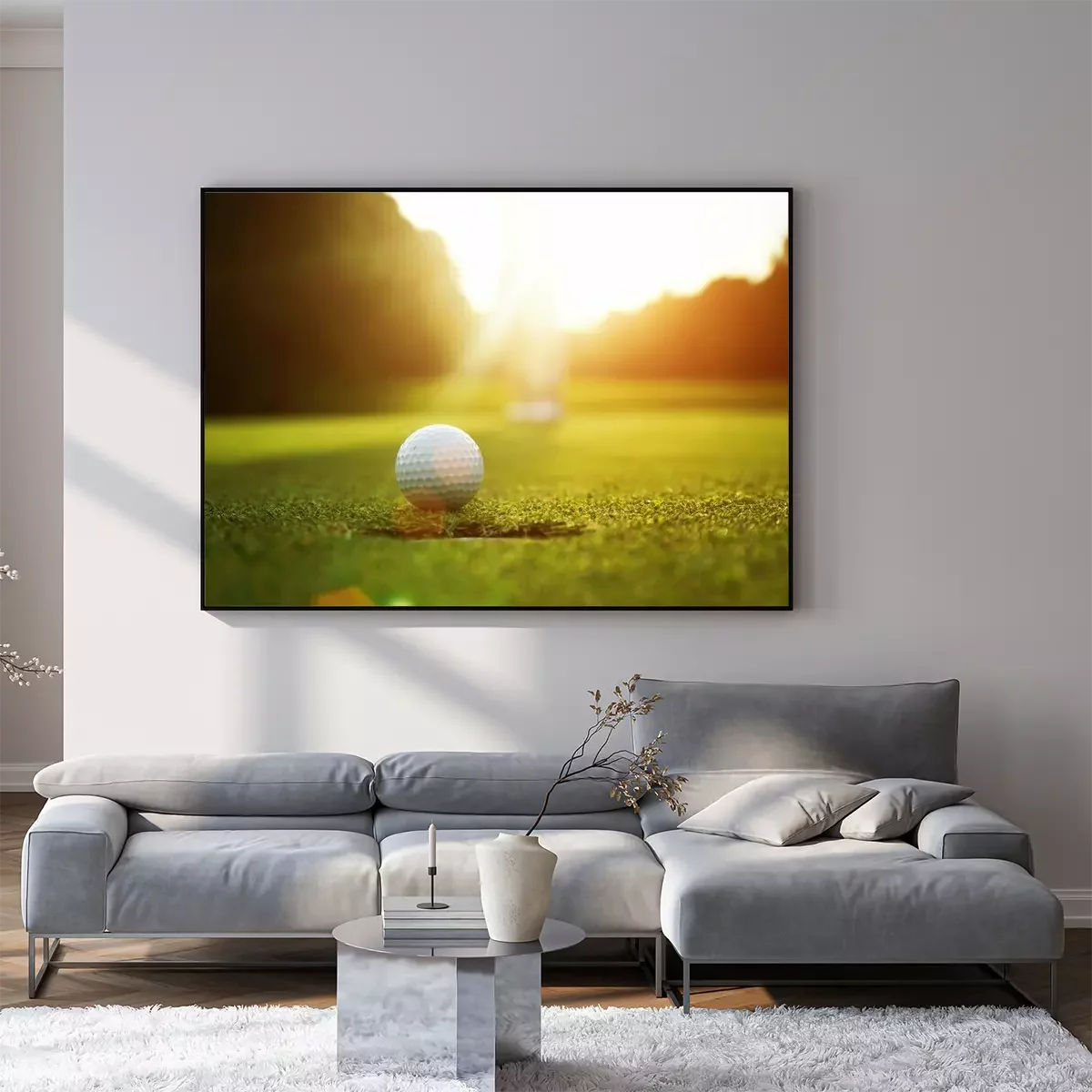 Poster: Blurred golfers are putting golf in the evening golf course golf backglound in Thailand