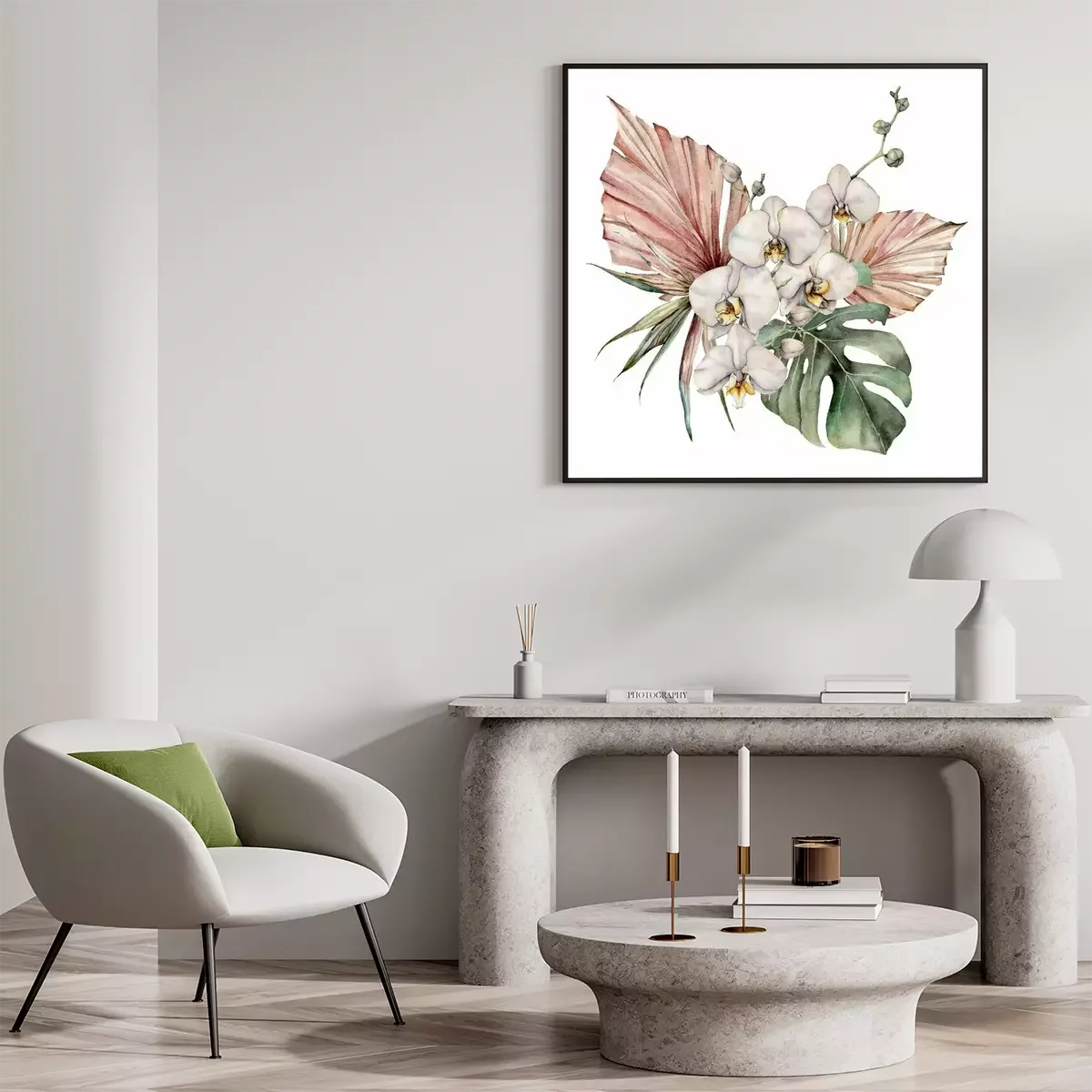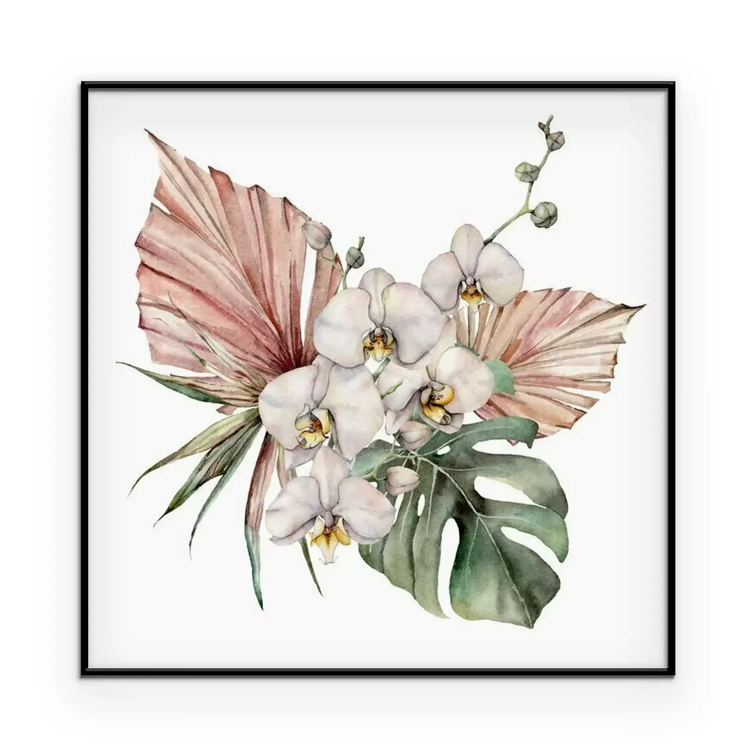Poster: Boeket van orchideeën en kleurrijke bladeren