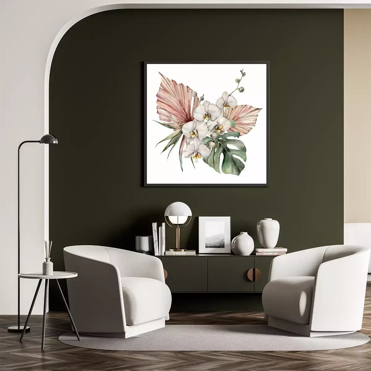 Poster Boeket van orchideeën en kleurrijke bladeren