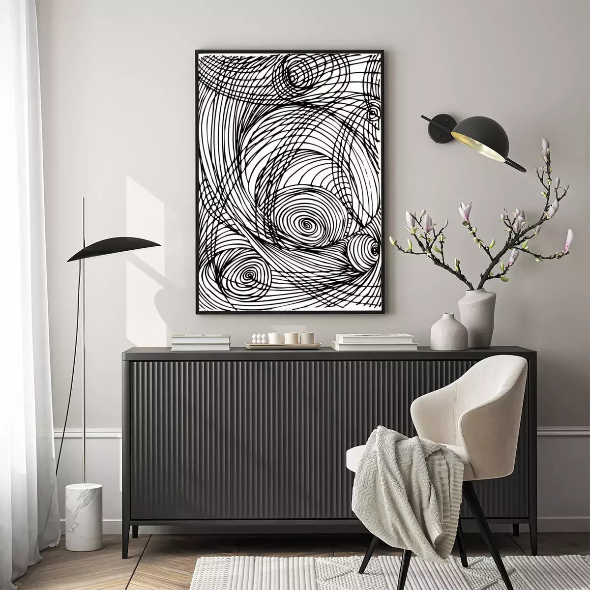 Poster: Bogen die een ruimtelijk motief vormen