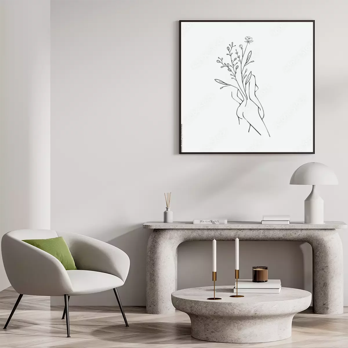 Poster: Boho minimalisme vrouw silhouet met bloemen